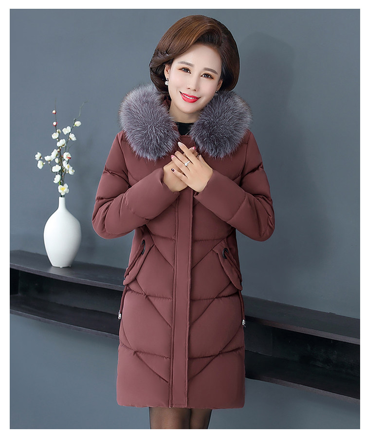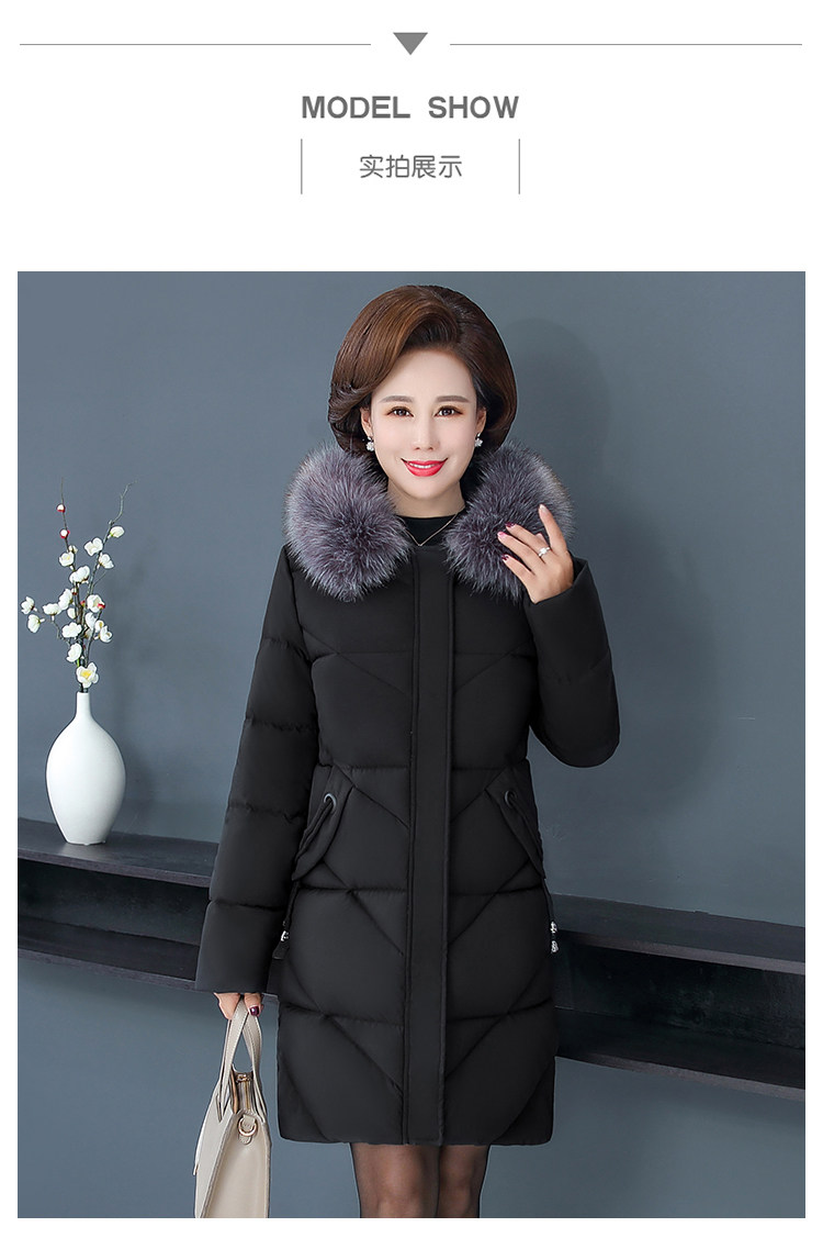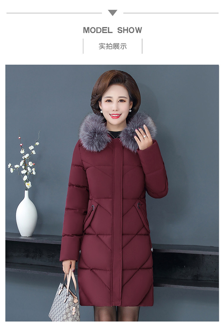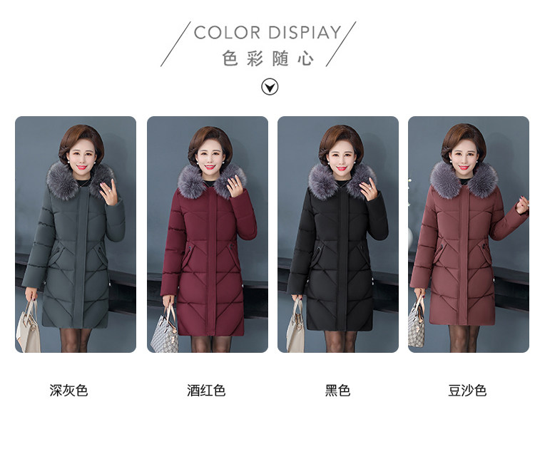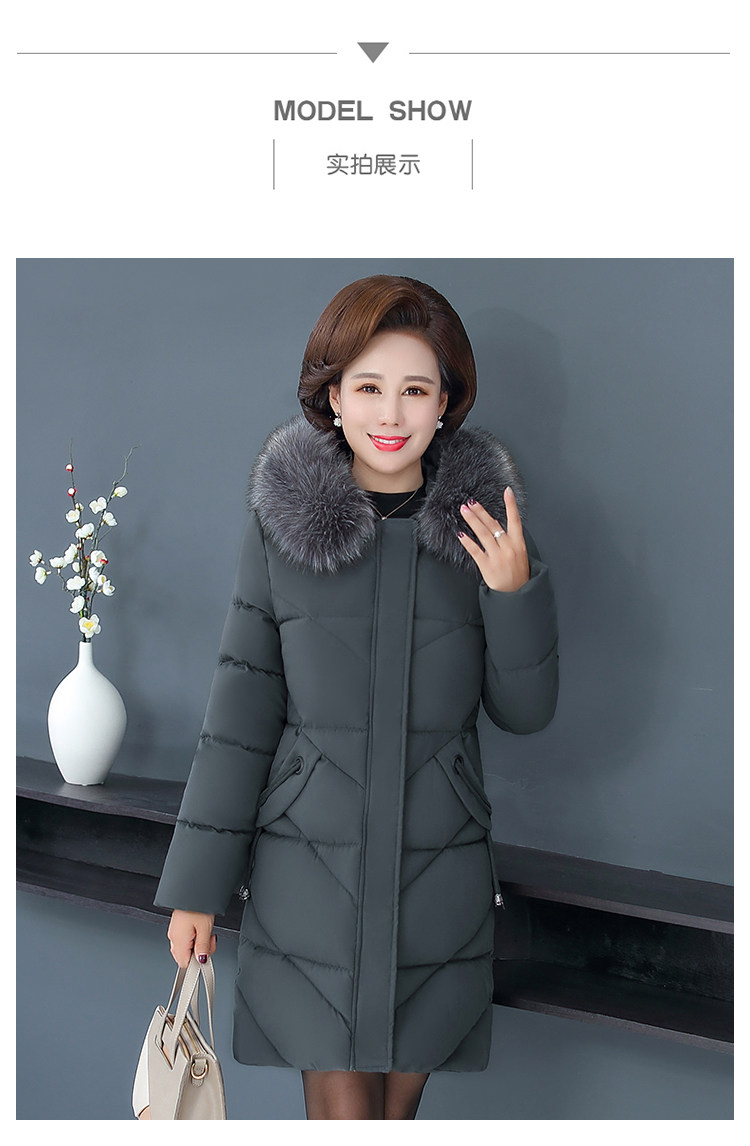 秋冬新款大码棉衣女中长款外套棉袄加厚修身毛领棉服中老年妈妈装