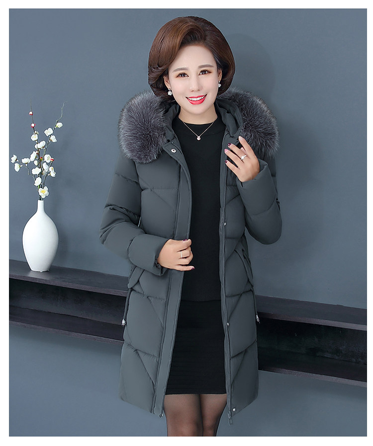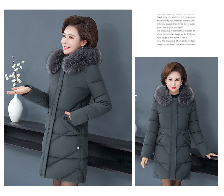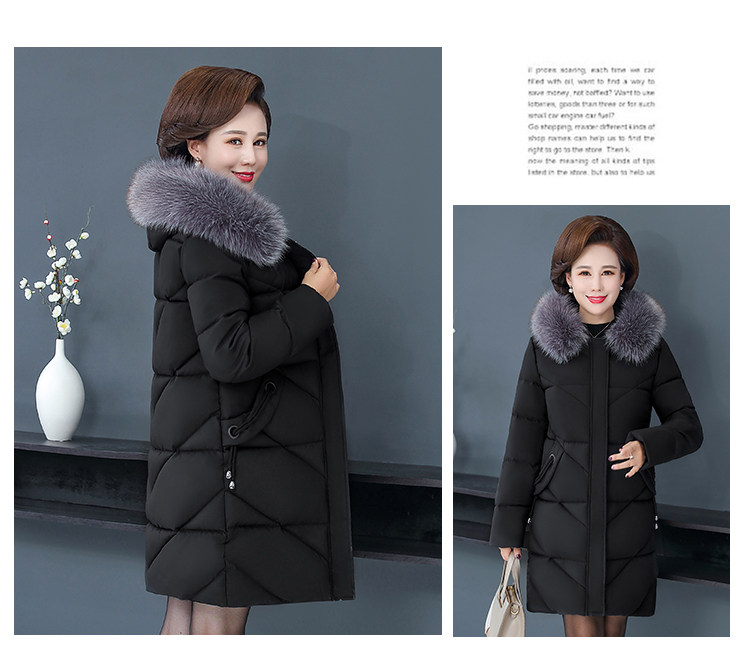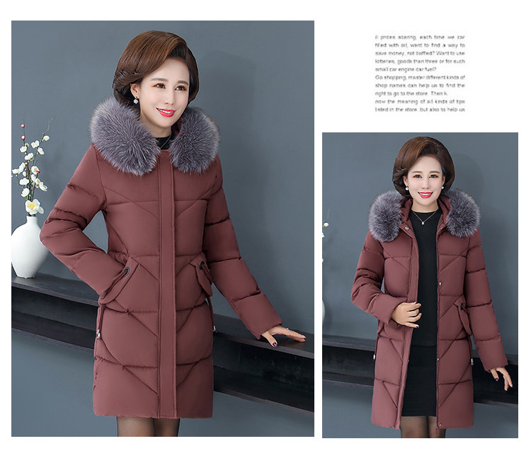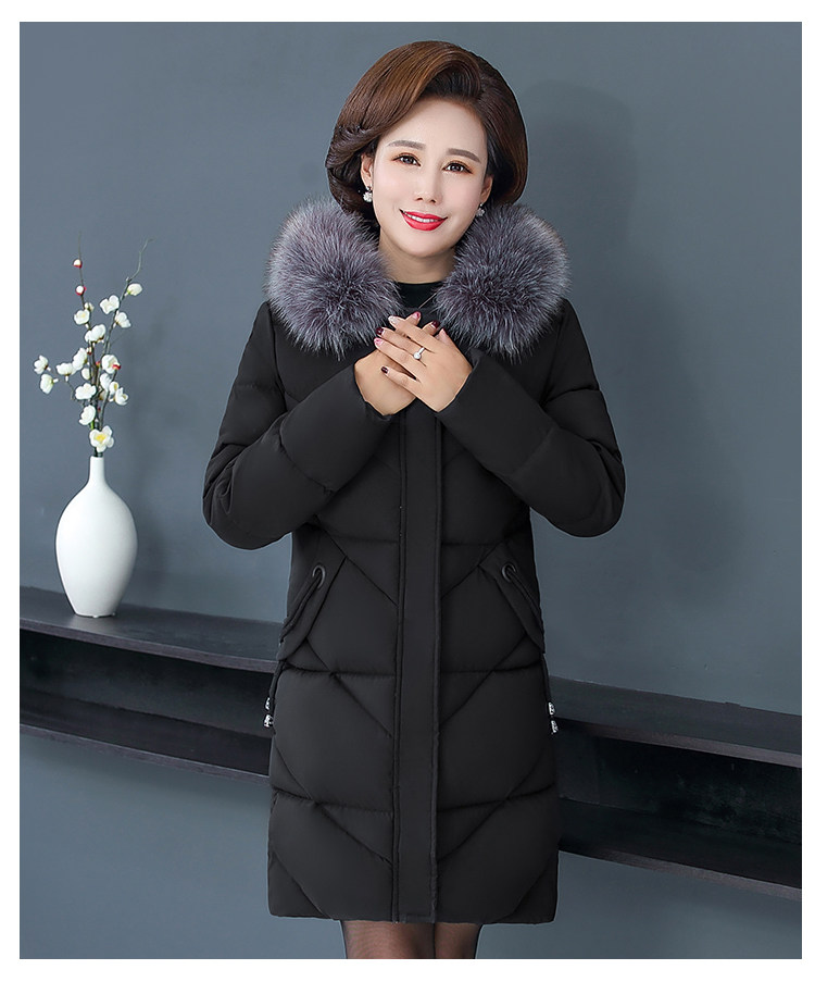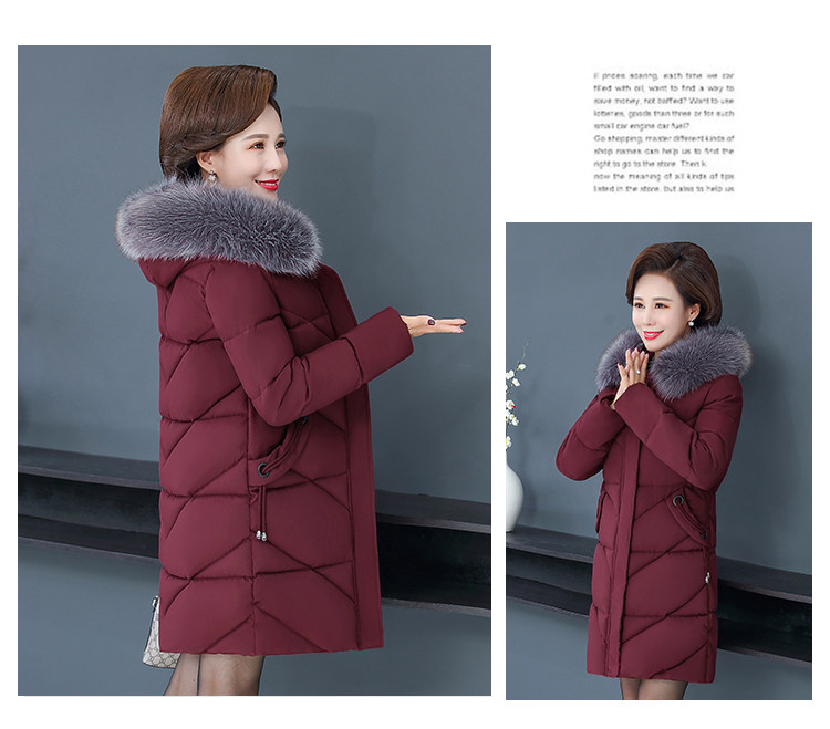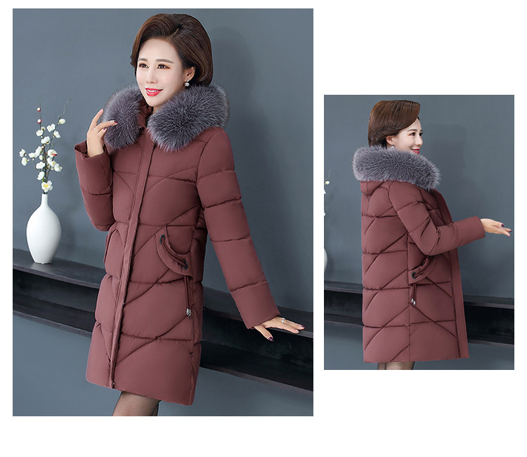 秋冬新款大码棉衣女中长款外套棉袄加厚修身毛领棉服中老年妈妈装