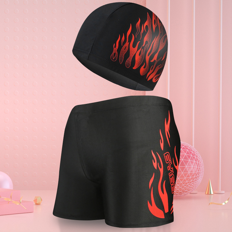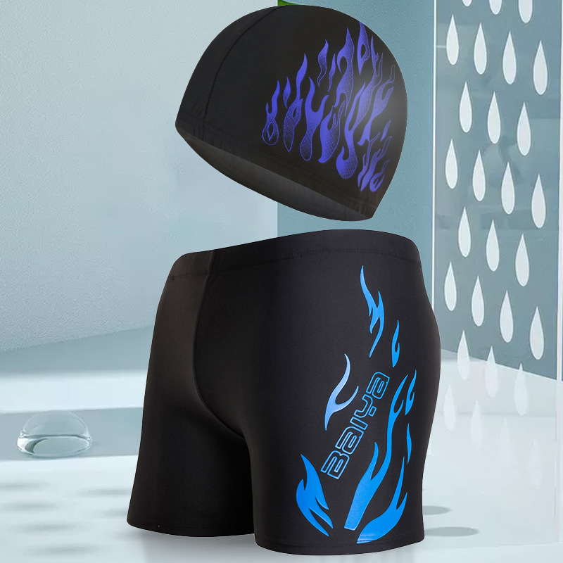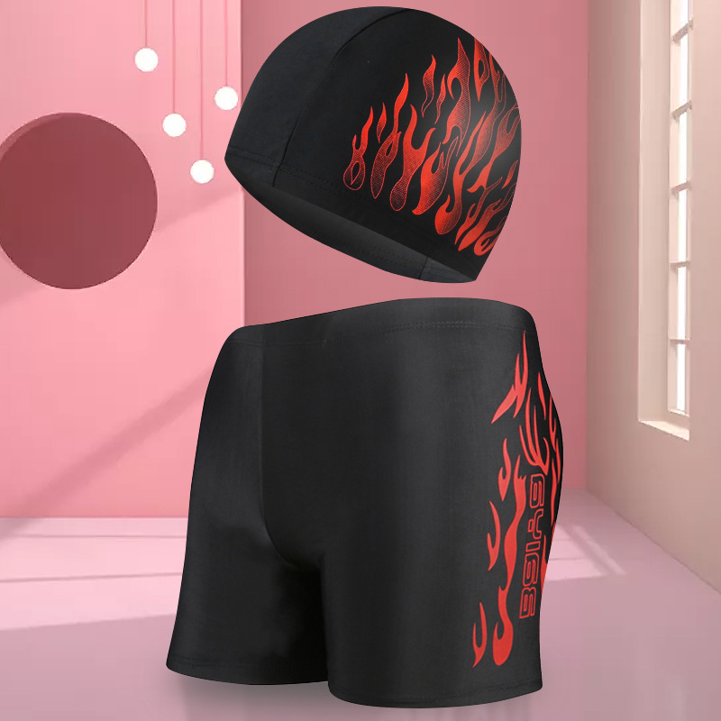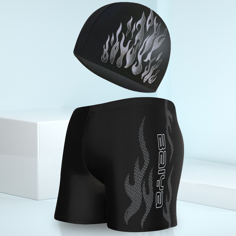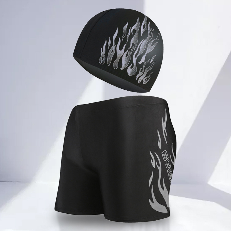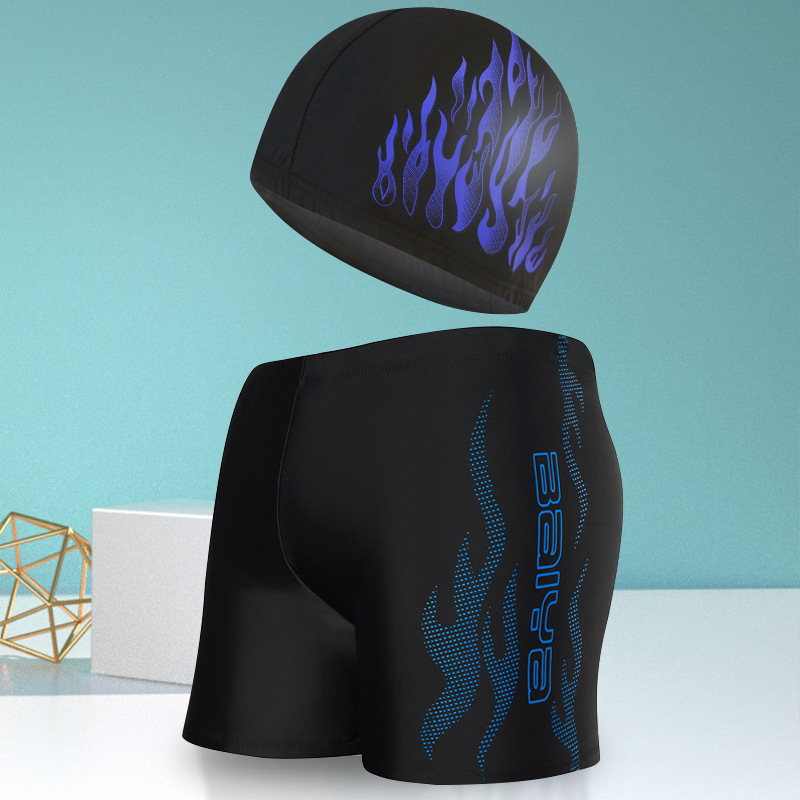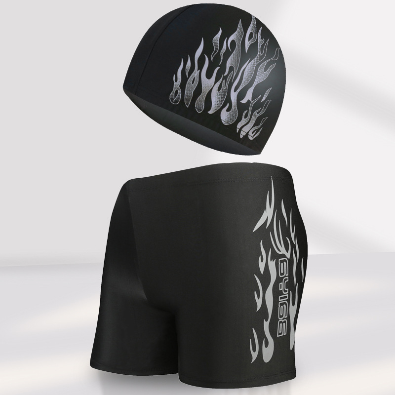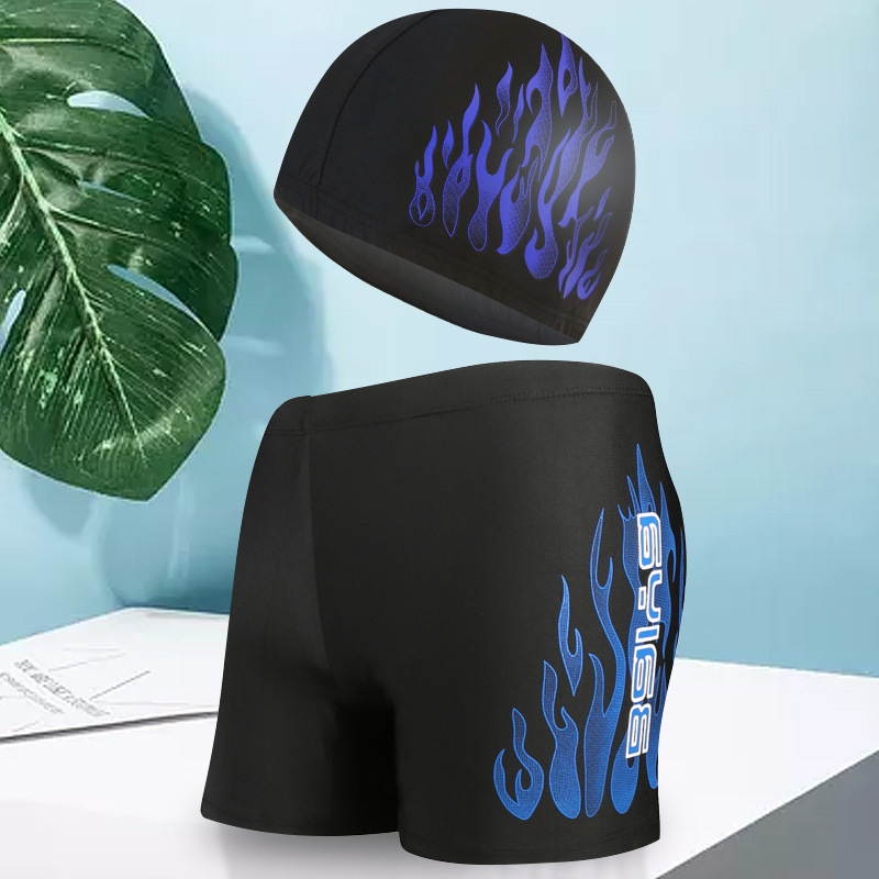 骐浪泳裤男平角成人泳裤泳帽套装锦纶宽松大码男士印花游泳裤批发