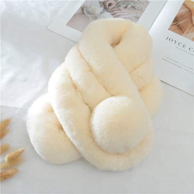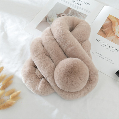 批发 皮草围巾獭兔毛三管球可爱女生围脖秋冬季女士保暖围巾