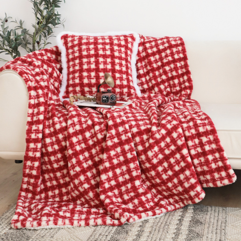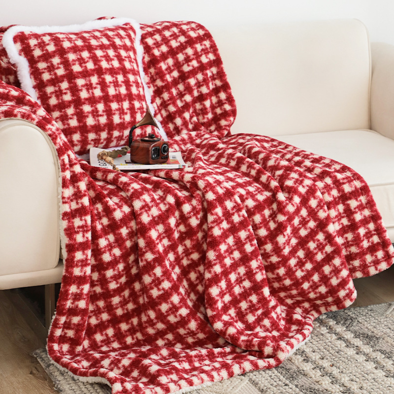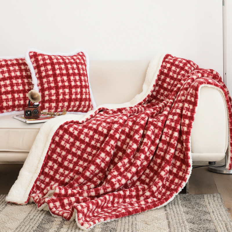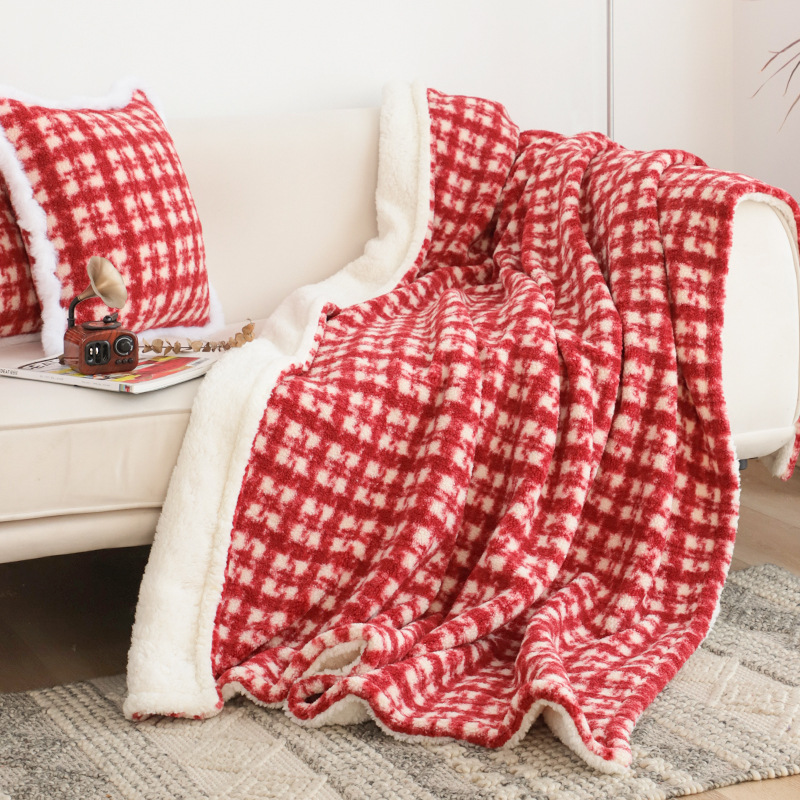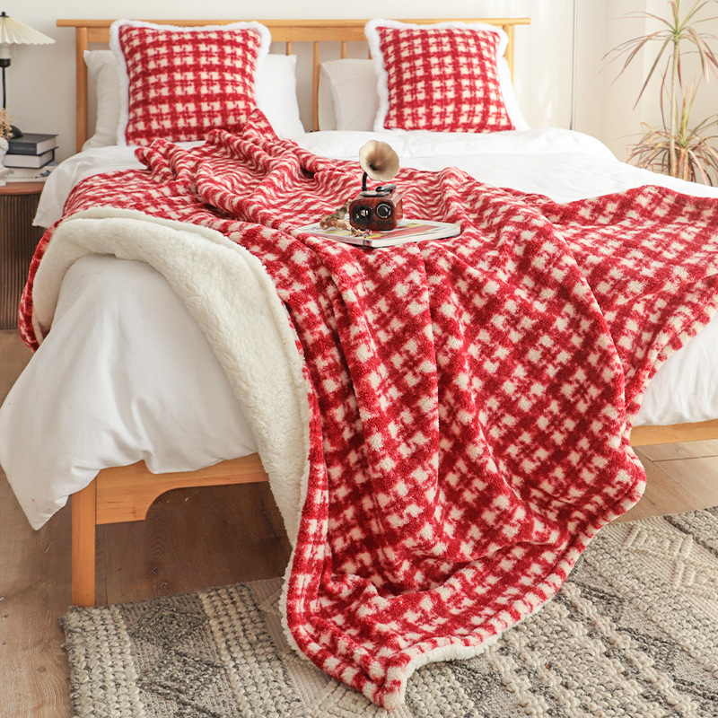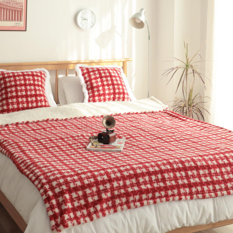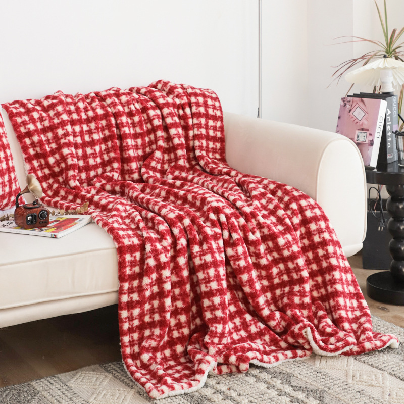 秋冬圣诞盖毯红格加绒加厚盖毯客厅沙发毯红色毯子