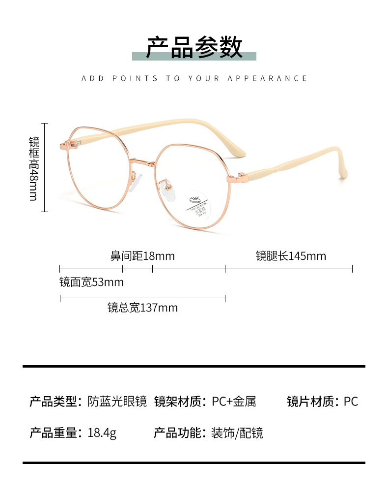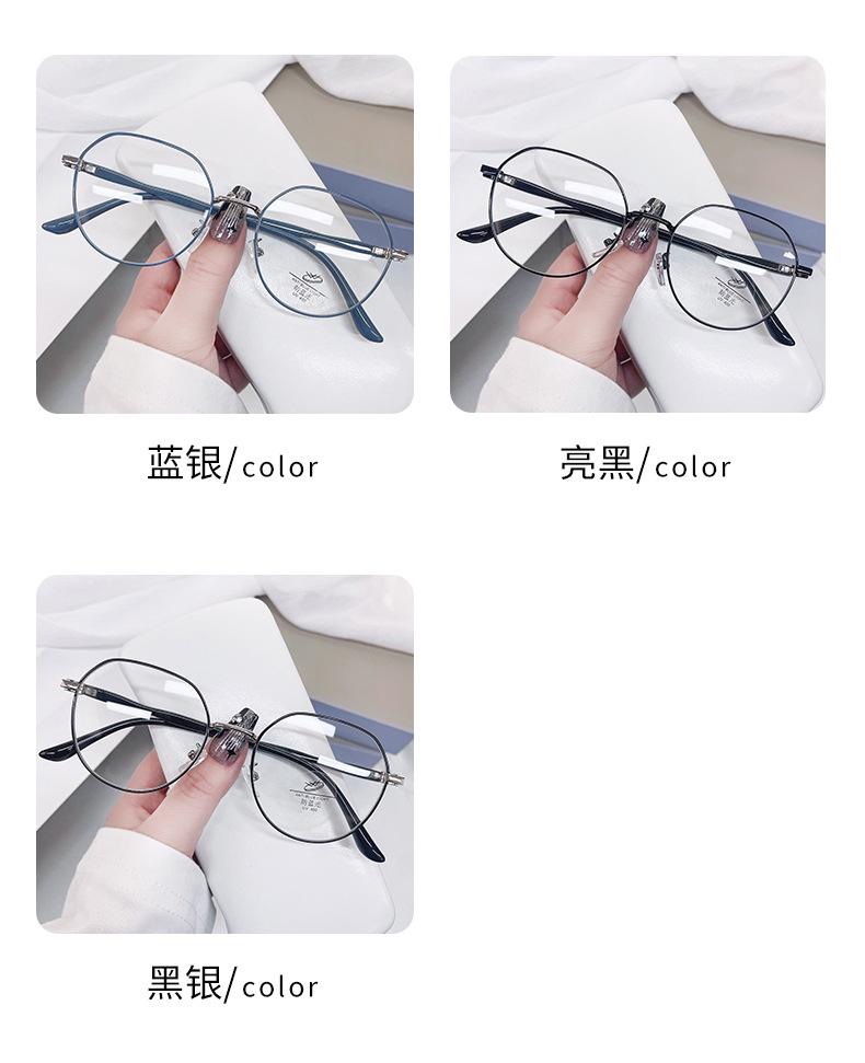 新款金属防蓝光近视眼镜时尚复古圆形眼镜框女ins简约轻盈平光镜