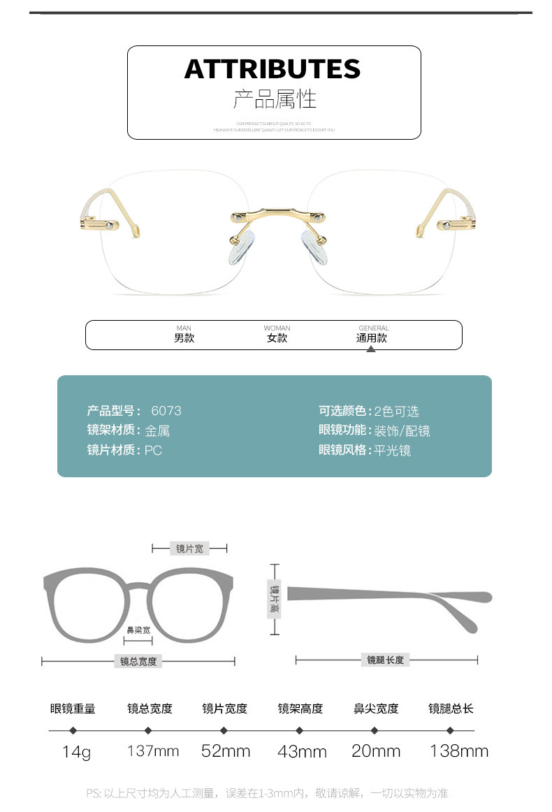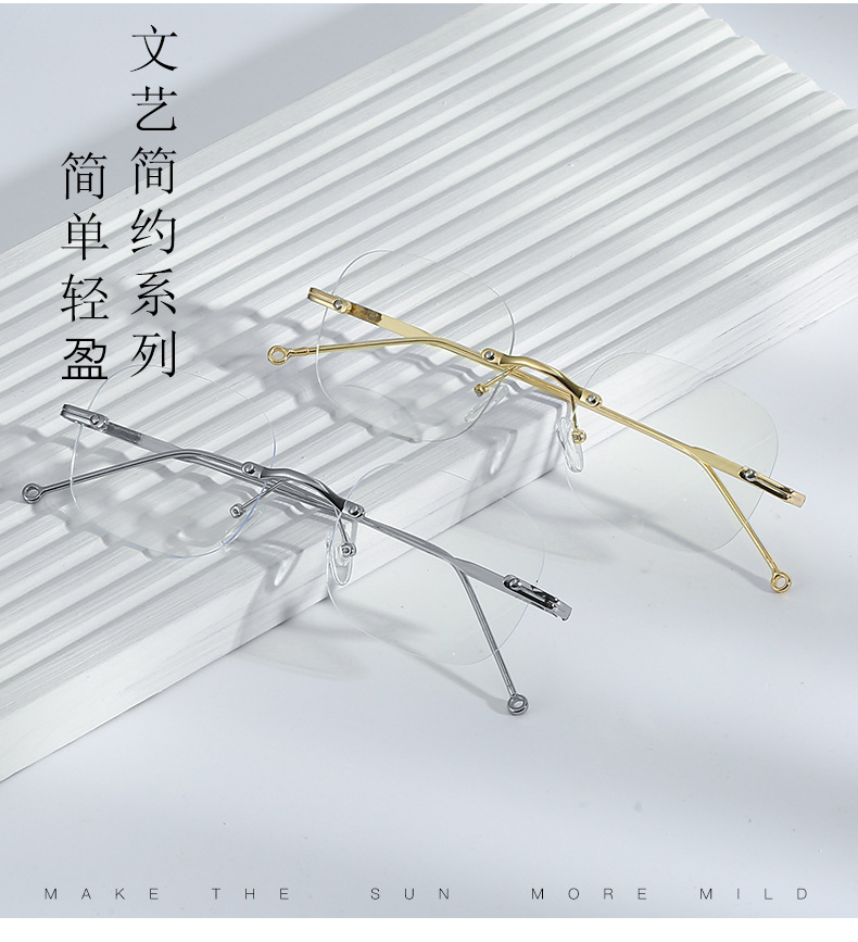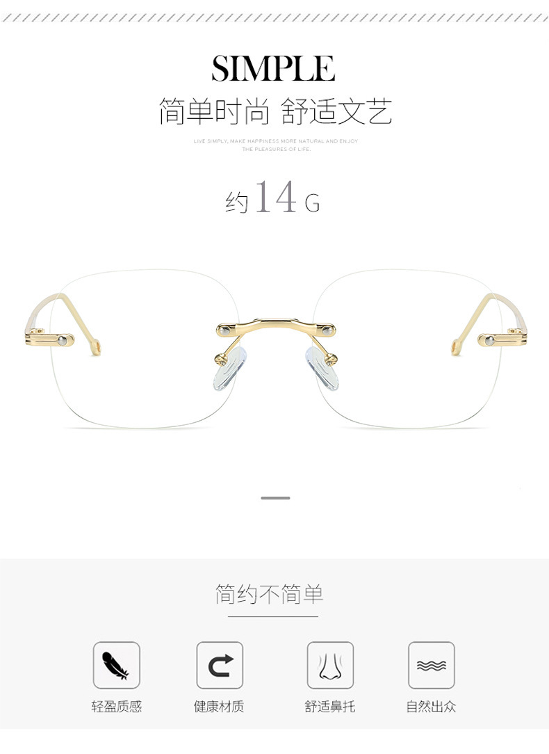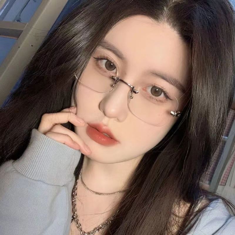 新款无边框近视眼镜成品防蓝光男女时尚同款韩国素颜女气质款批发