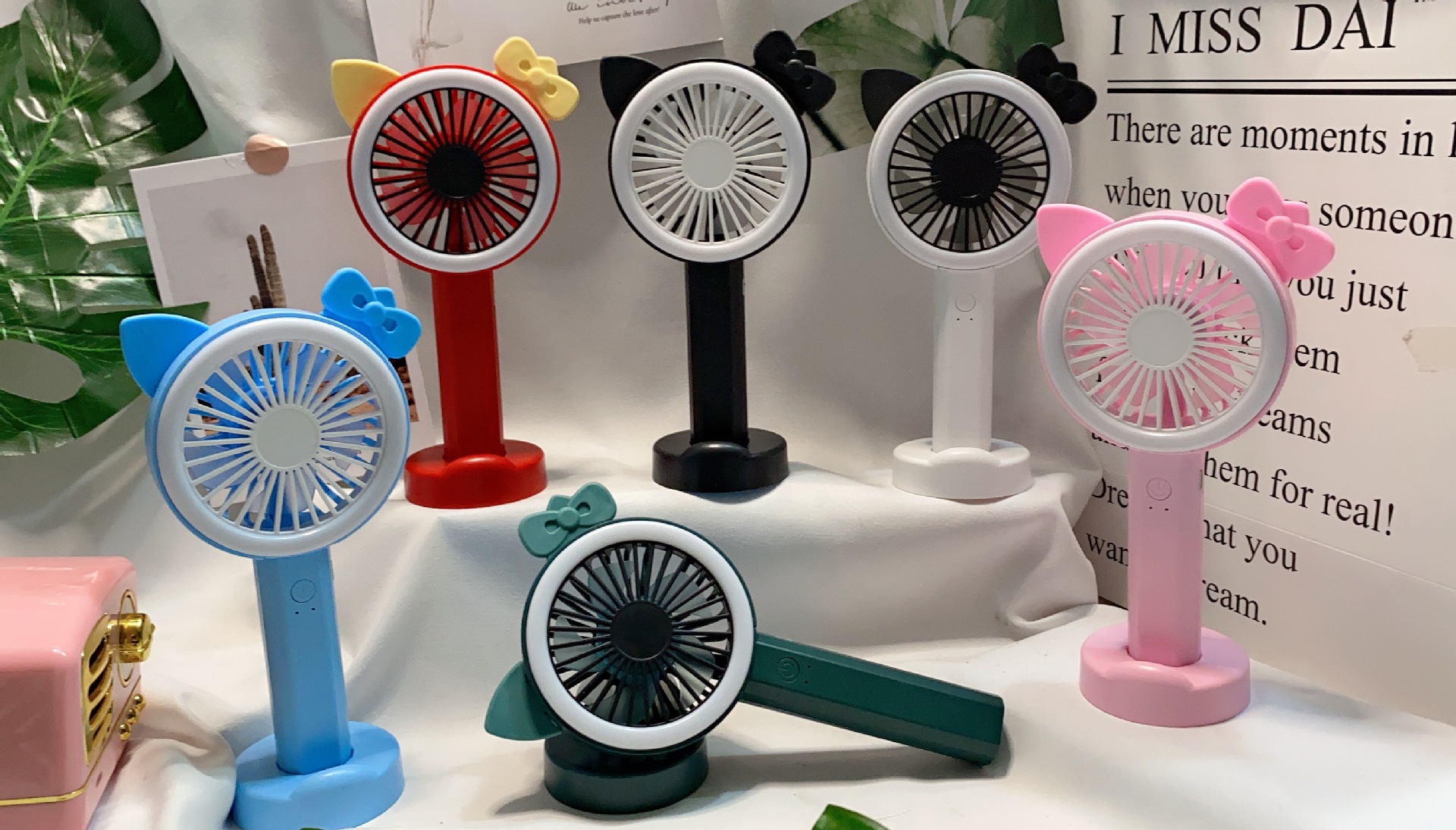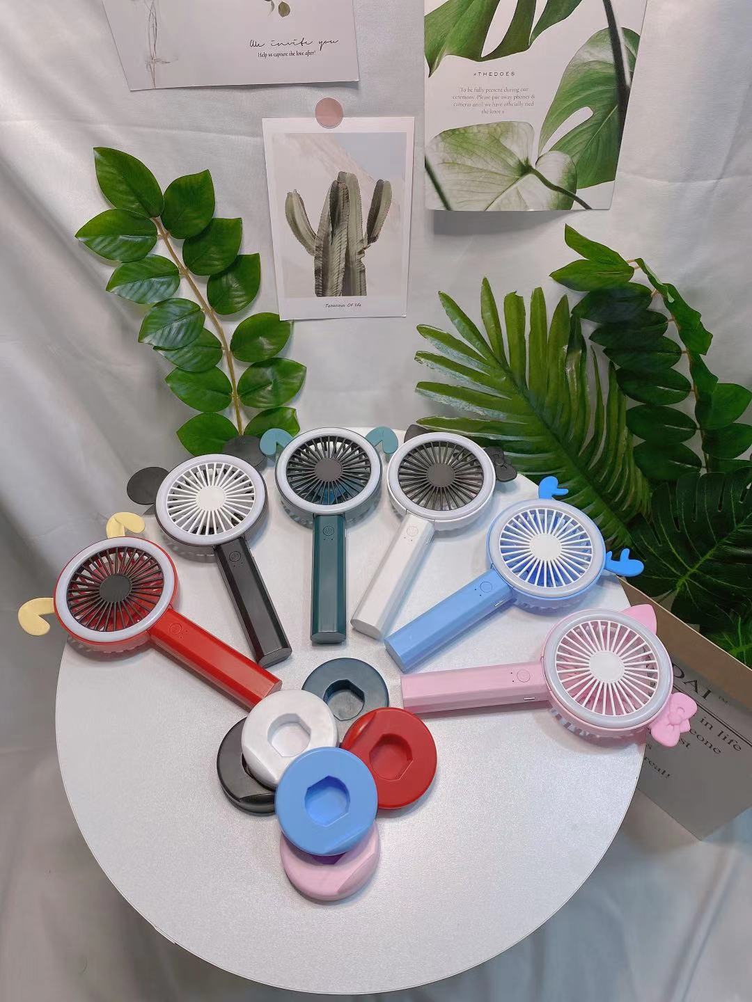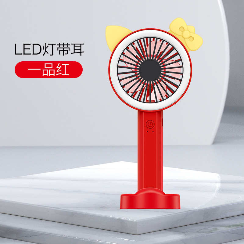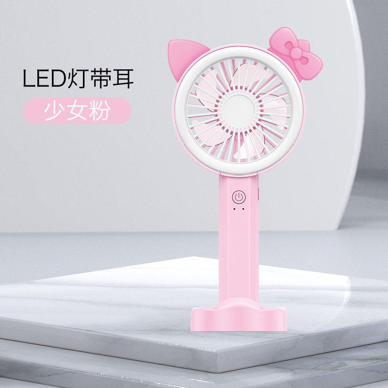 手持台立分离组合手机底座卡通角带美颜灯学生usb充电便携式风扇