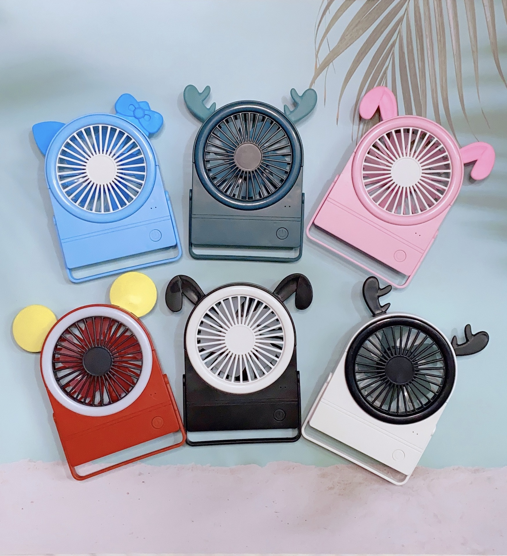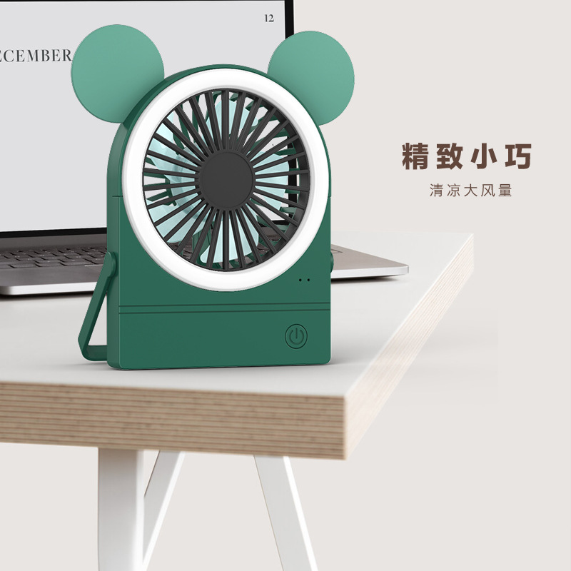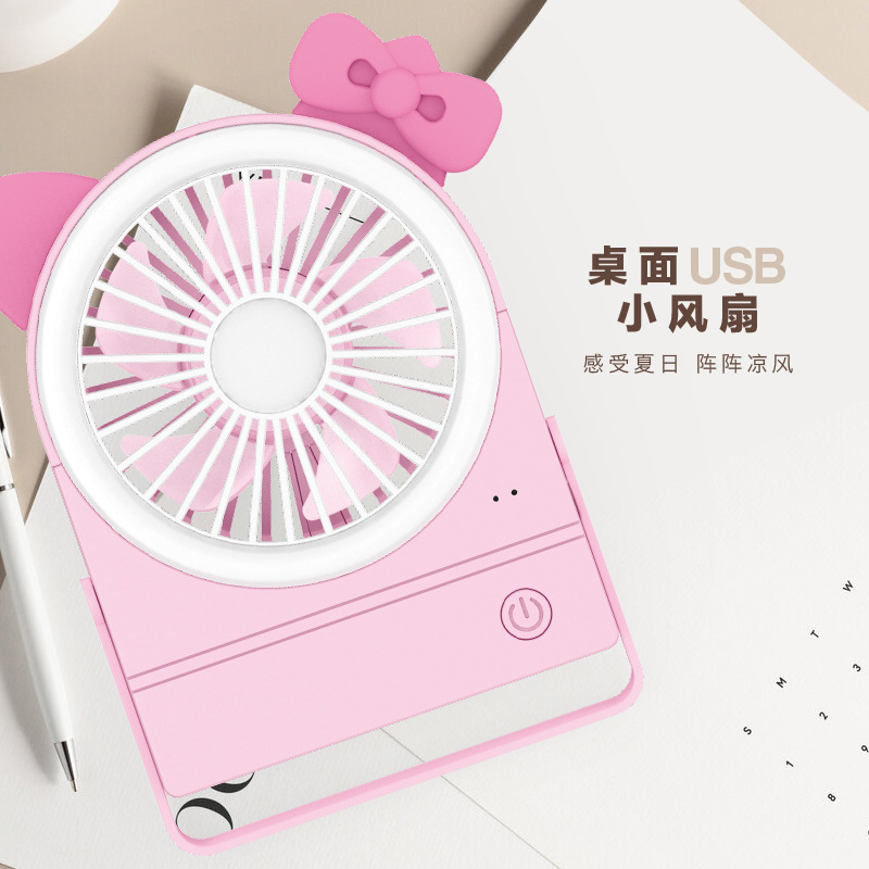 学生手持桌面可调节支架usb卡通角带美颜灯便携式三档小风扇