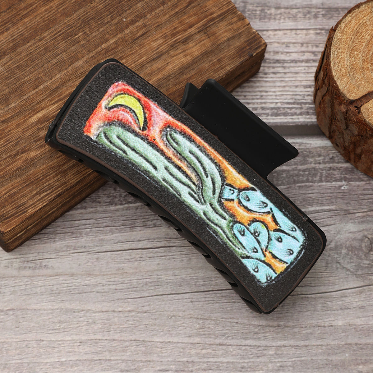 跨境西部风仙人掌皮革发夹向日葵抓夹女士鲨鱼夹速卖通亚马逊