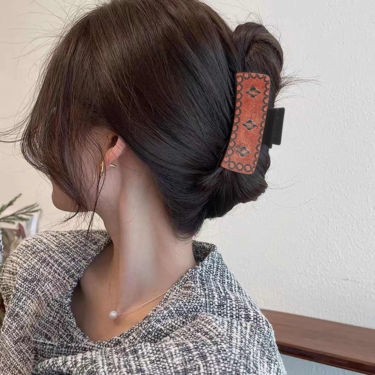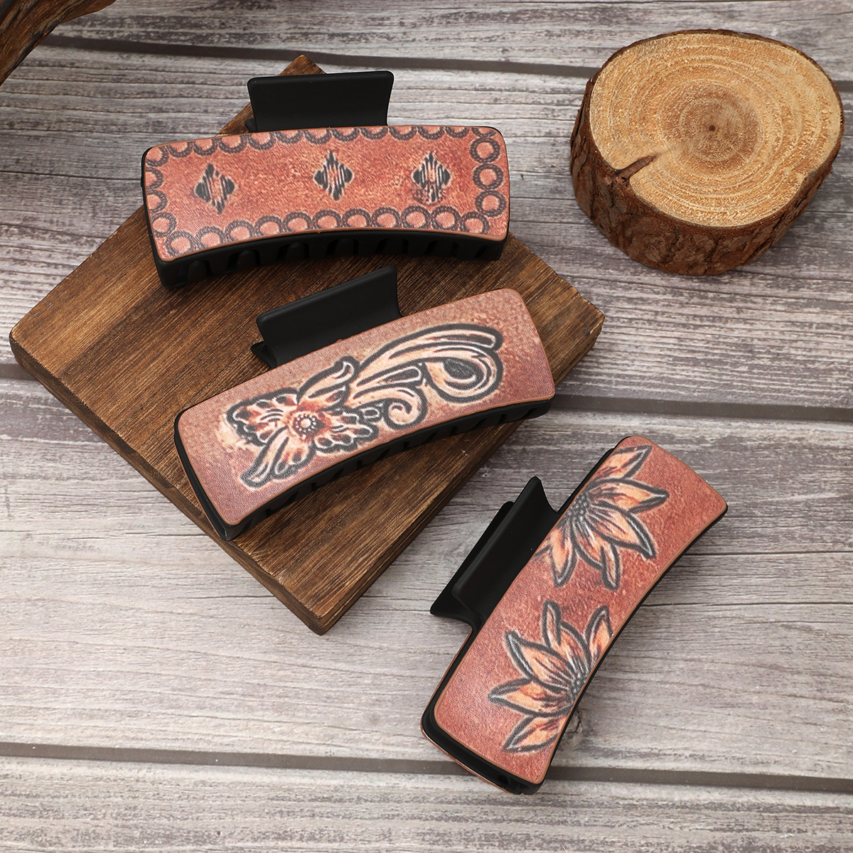 跨境西部风向日葵花朵皮革发夹鲨鱼夹女士抓夹速卖通亚马逊