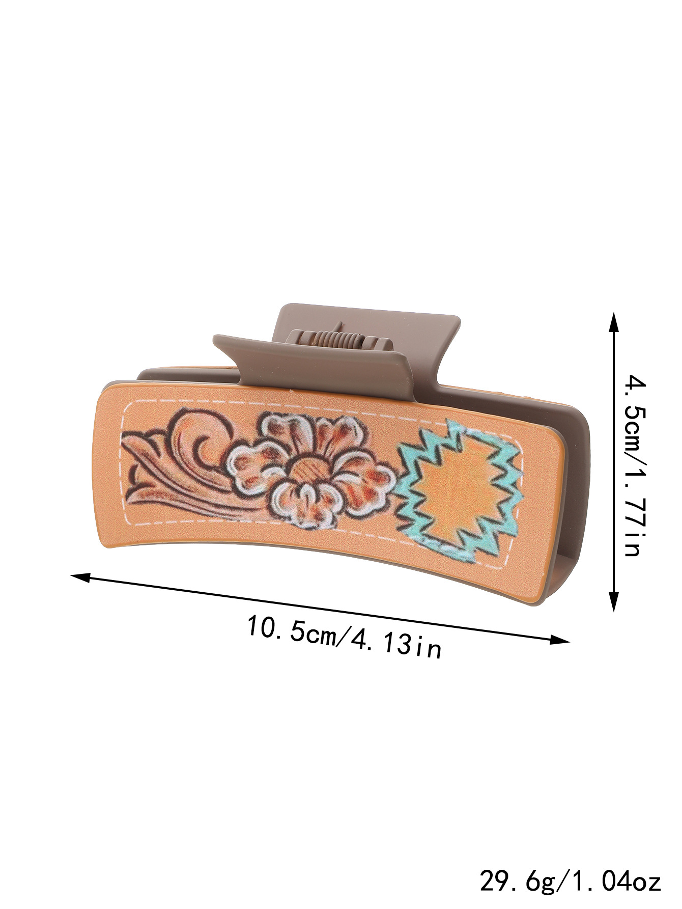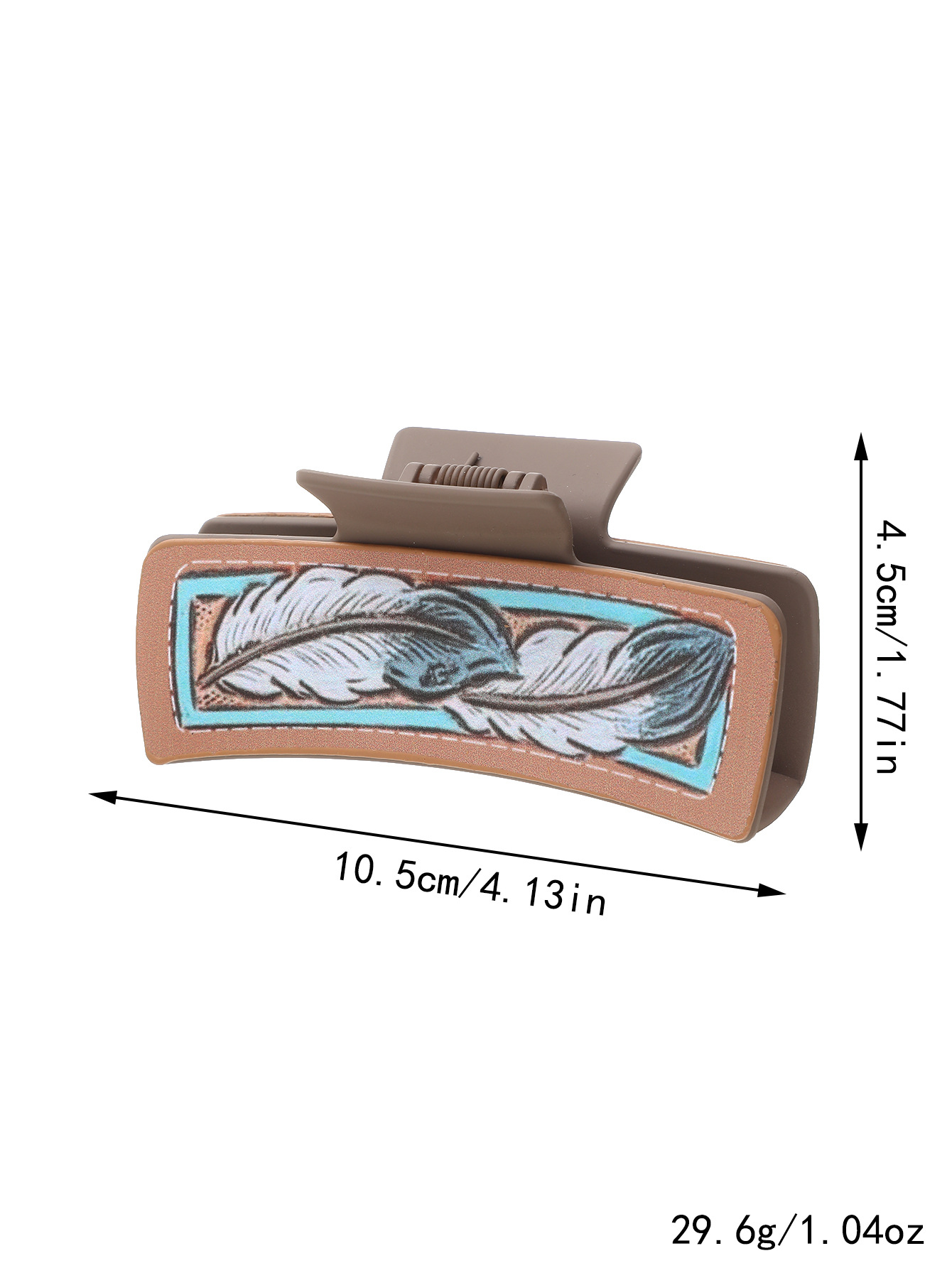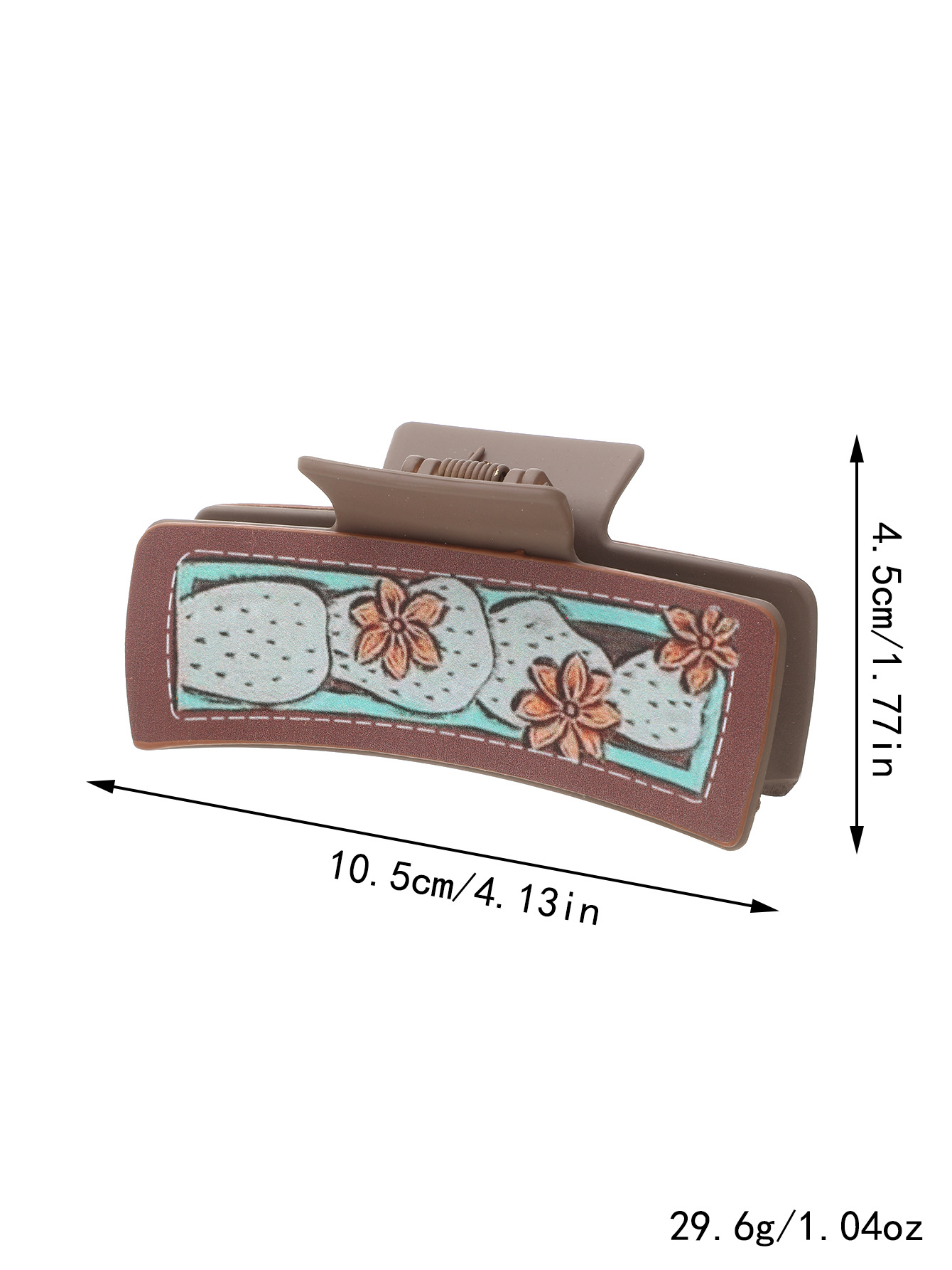 跨境西部风仙人掌羽毛花朵图案印刷鲨鱼夹发夹女士抓夹速卖通亚马