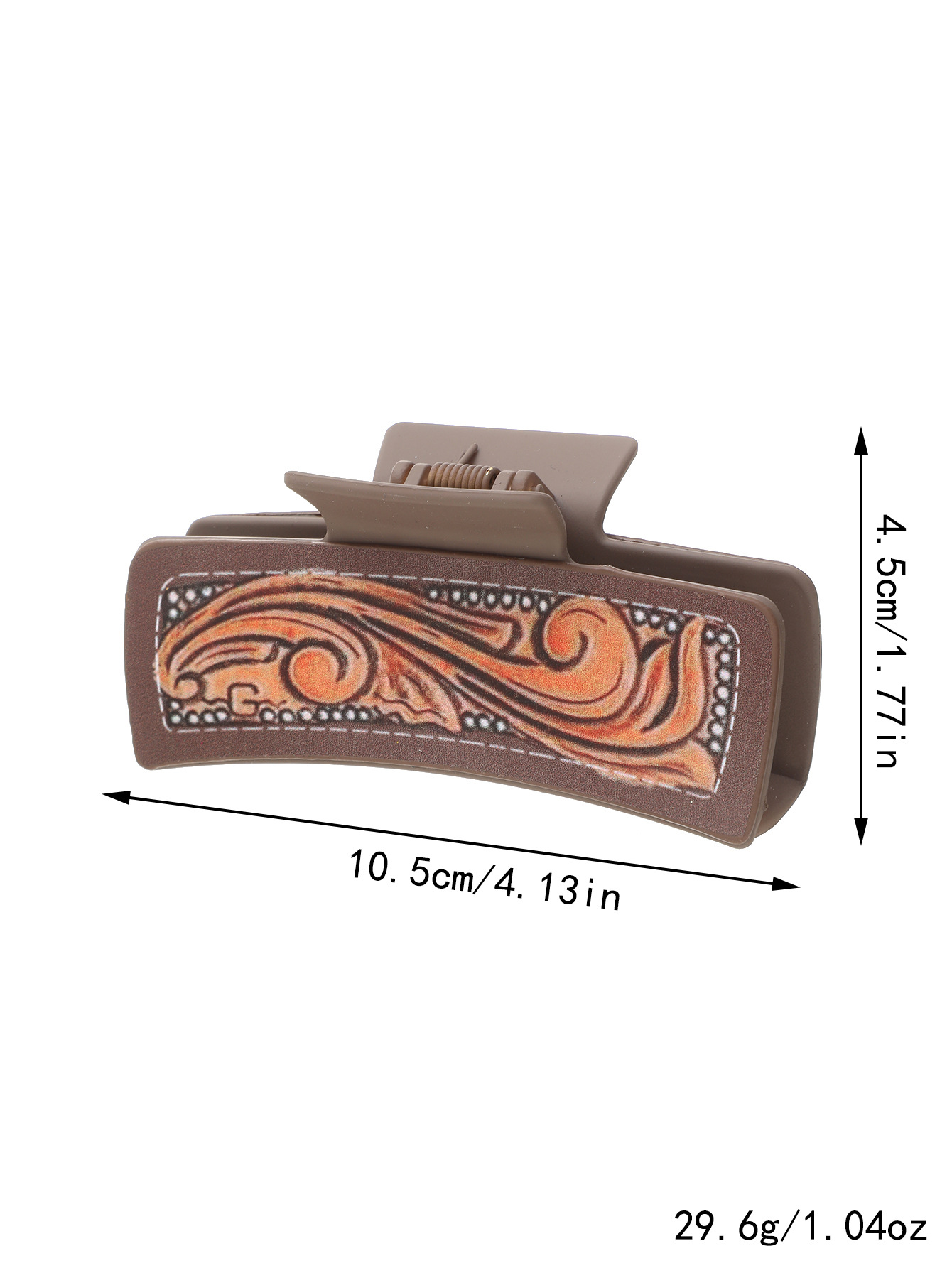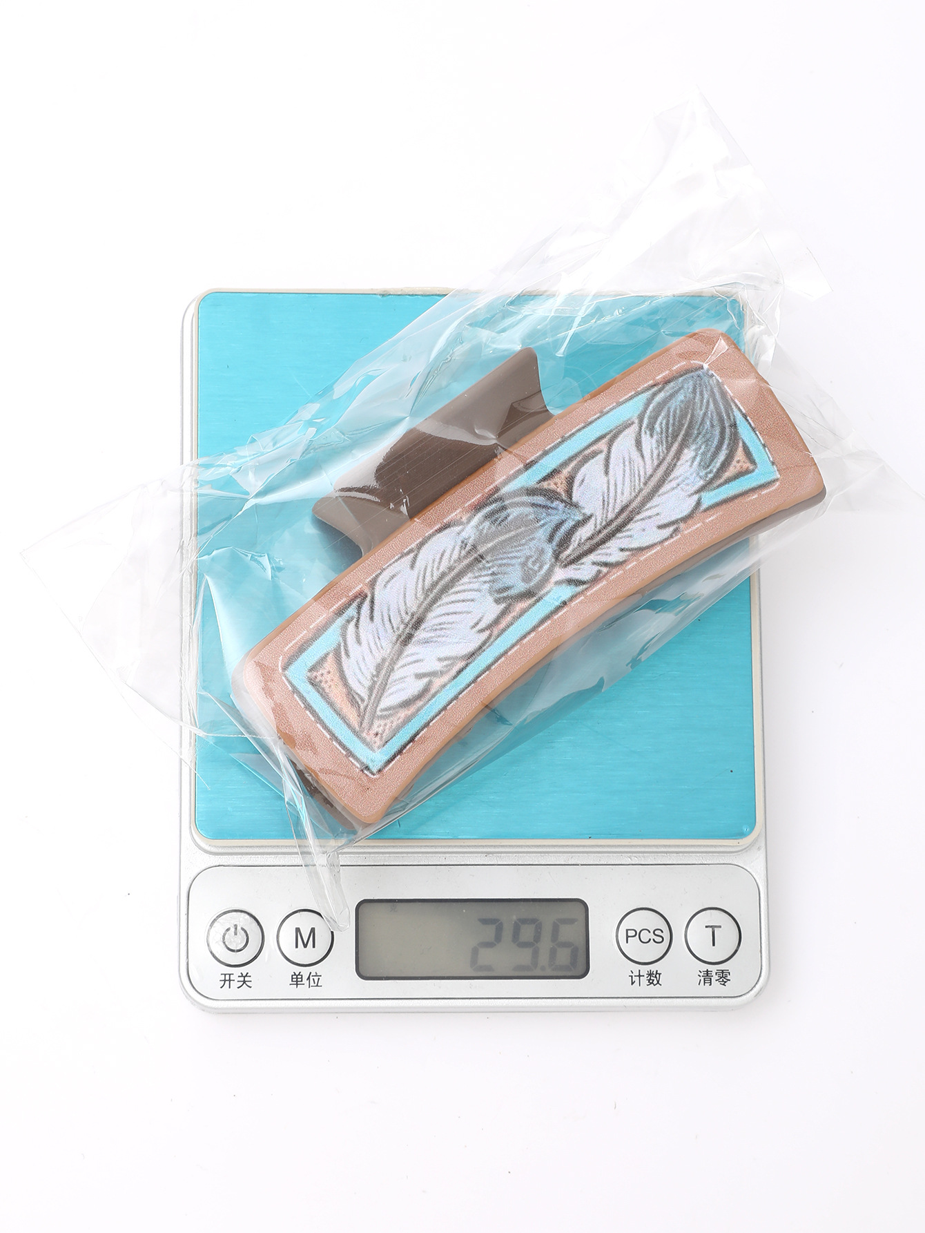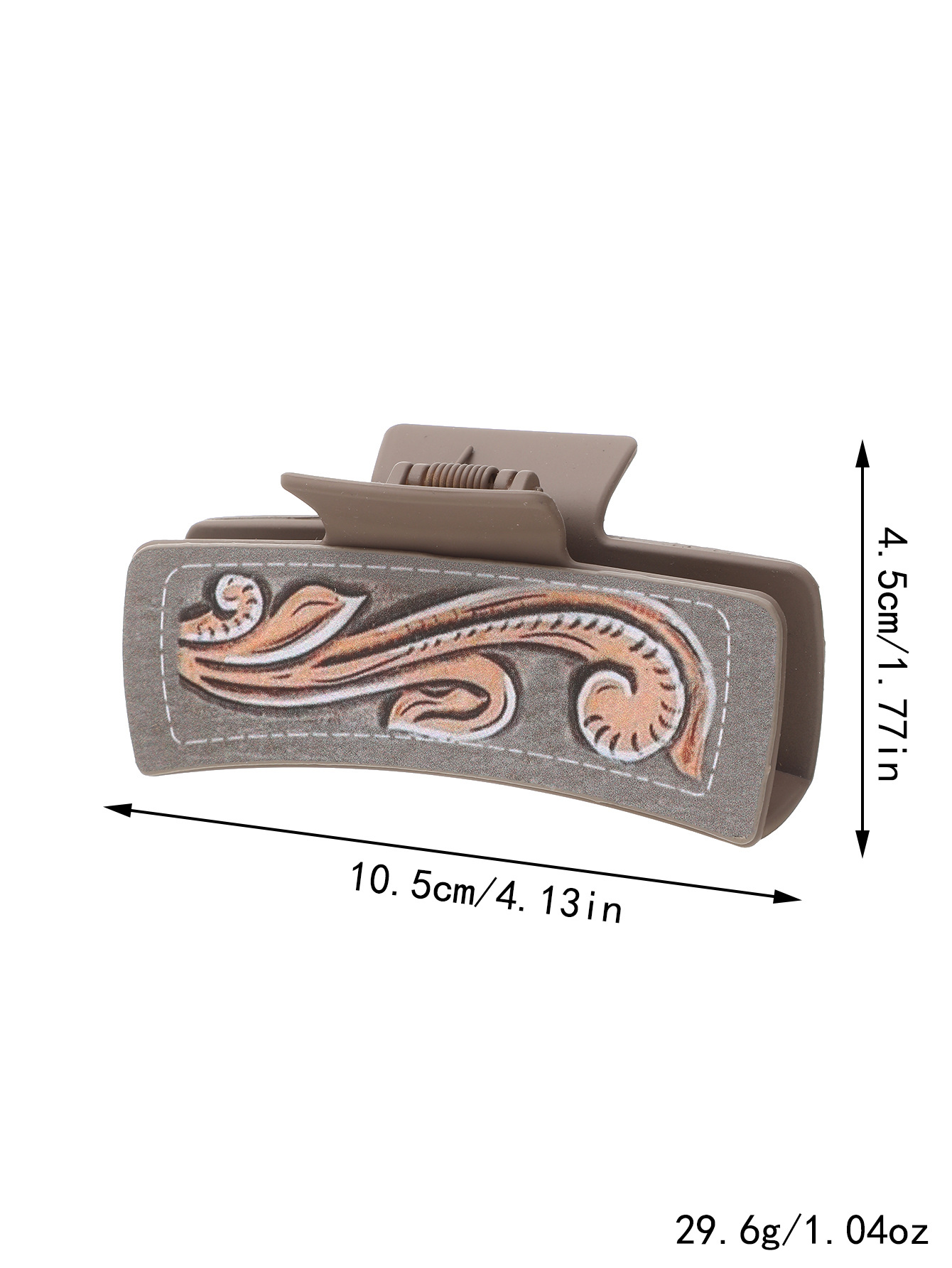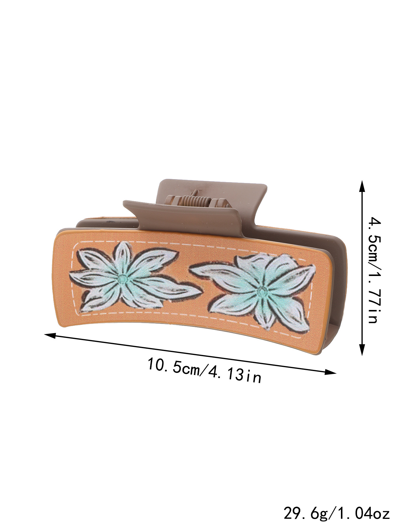跨境西部风仙人掌羽毛花朵图案印刷鲨鱼夹发夹女士抓夹速卖通亚马