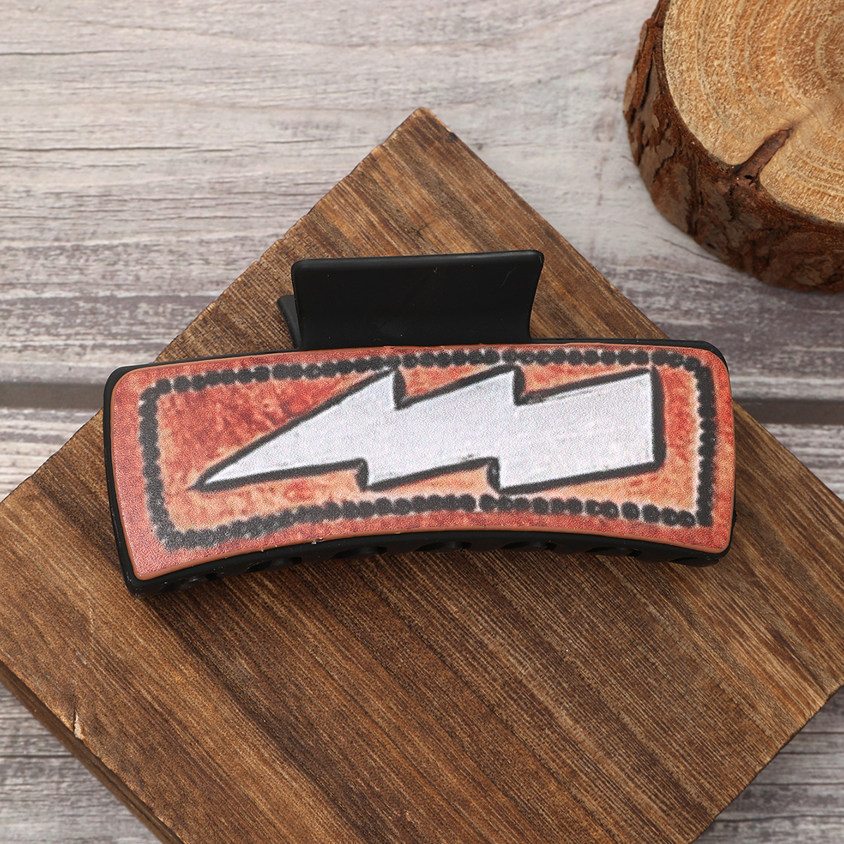 跨境西部风闪电图案皮革发夹组合套装鲨鱼夹女士抓夹速卖通