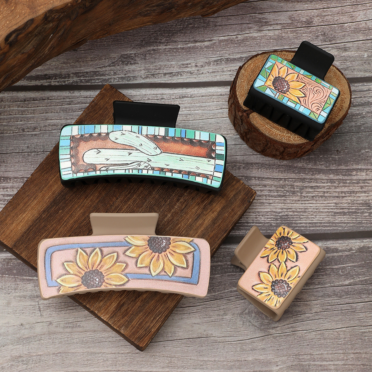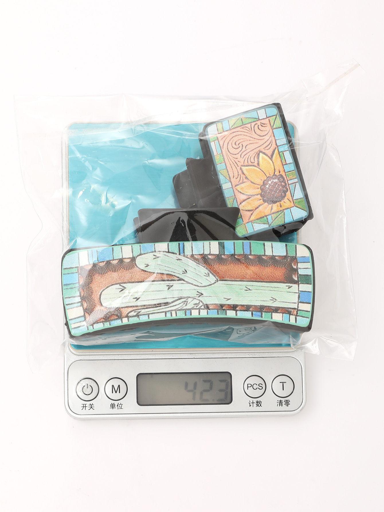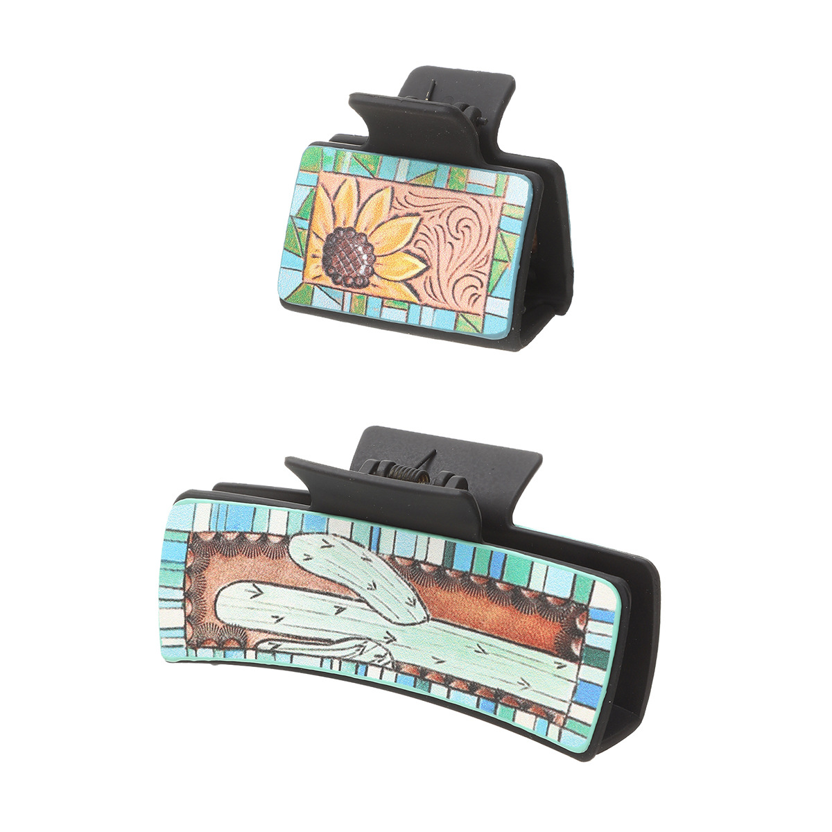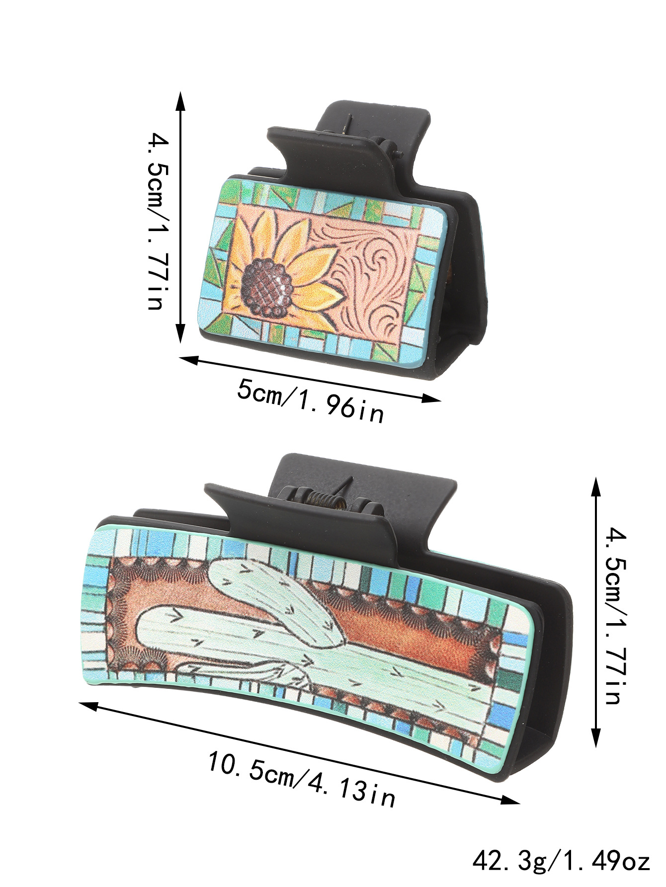 跨境西部风向日葵仙人掌皮革发夹组合套装鲨鱼夹女士抓夹速卖通