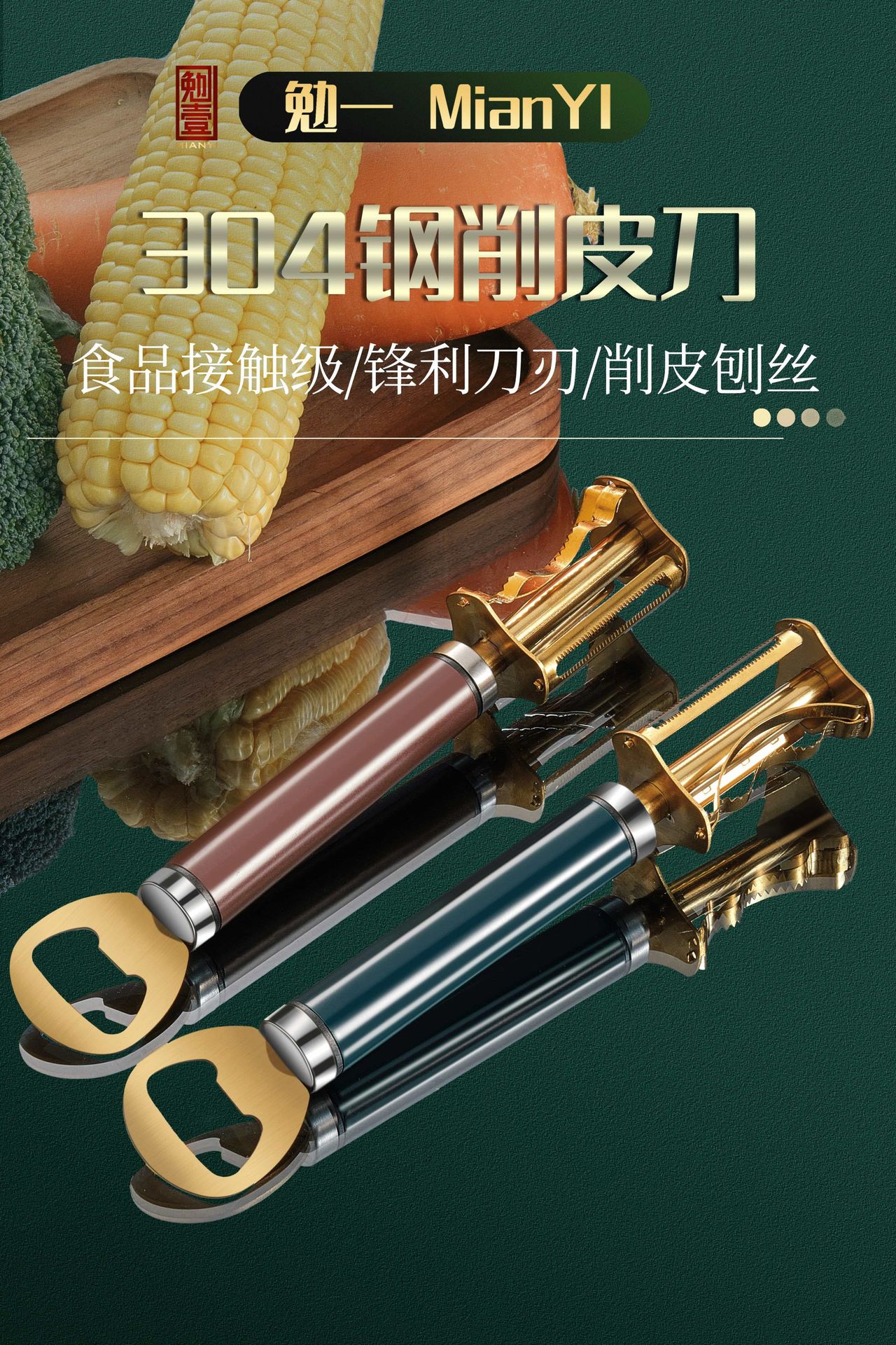 304不锈钢削皮刀刮皮刀4合1多功能土豆削皮神器开瓶器去皮刀瓜刨
