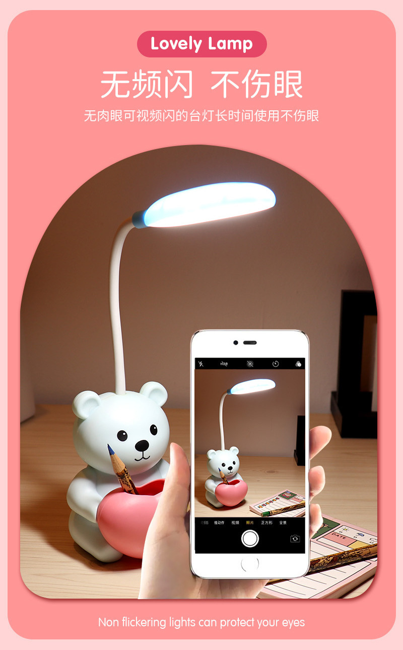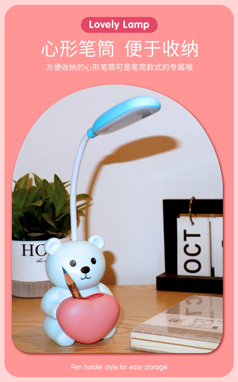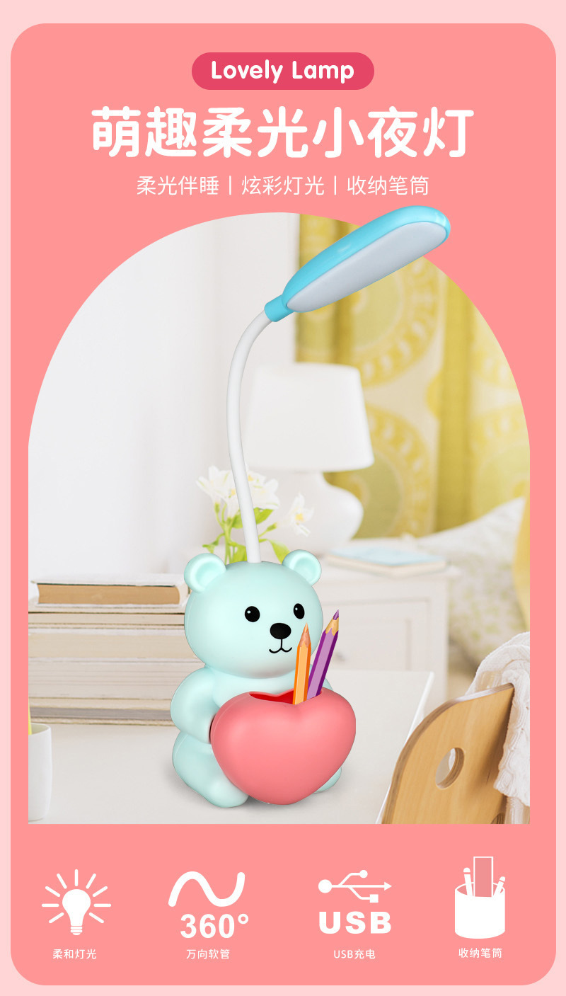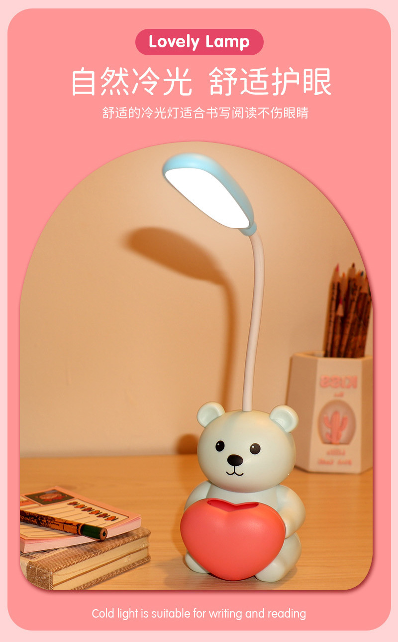 新款可爱卡通小熊笔筒LED护眼小夜灯摆件学生夜晚床头桌面阅读灯