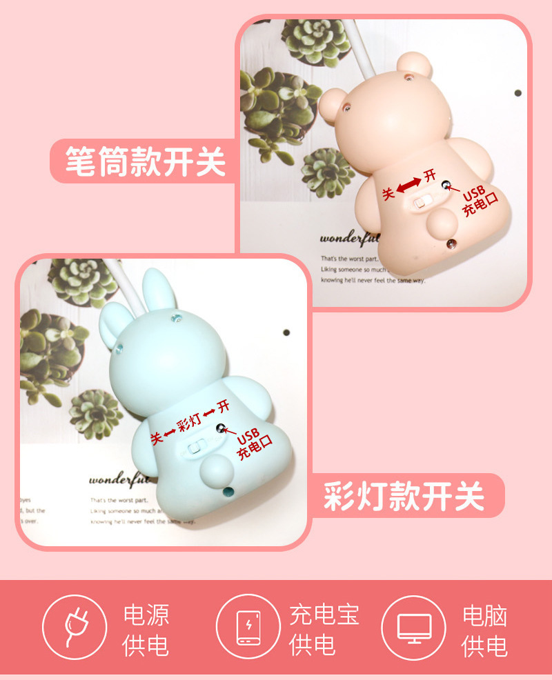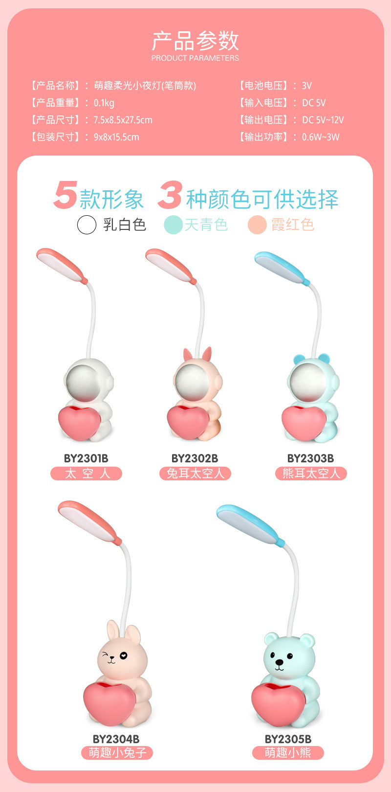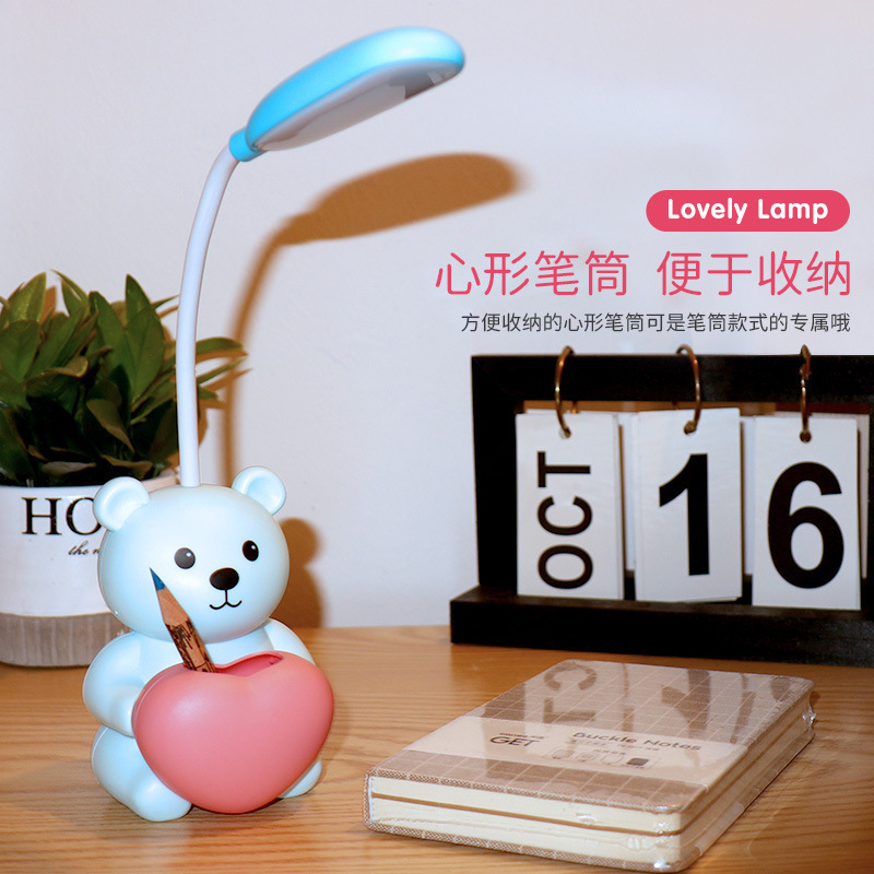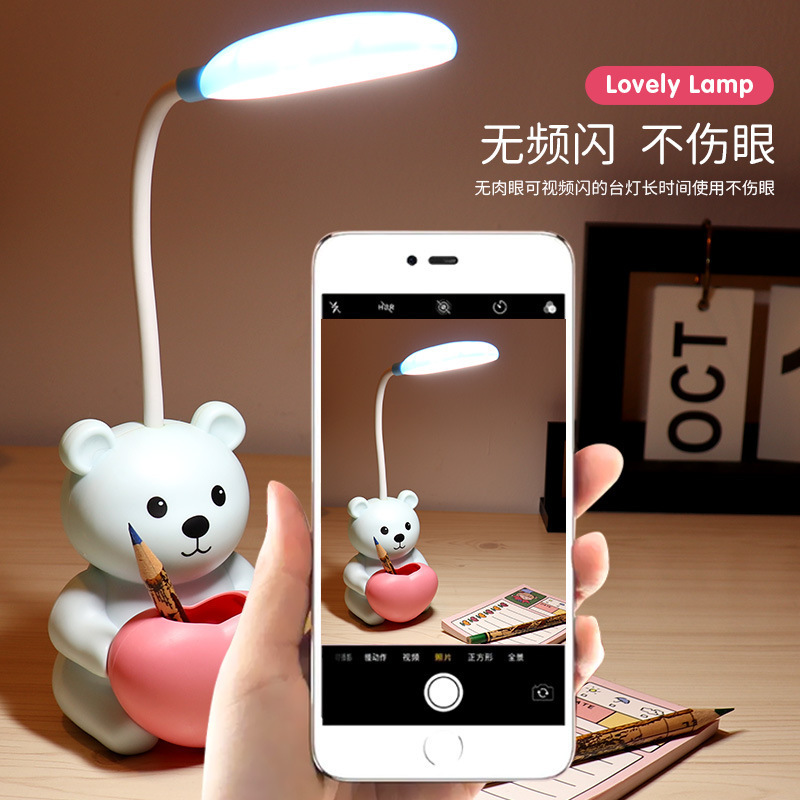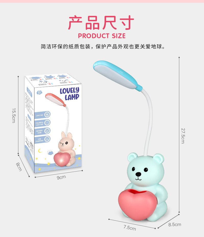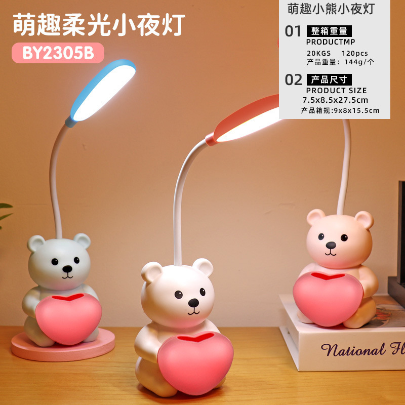 新款可爱卡通小熊笔筒LED护眼小夜灯摆件学生夜晚床头桌面阅读灯