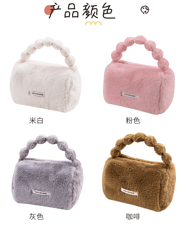 蓓恋可爱毛绒化妆包旅行护肤品收纳袋出行化妆品手提收纳包批发