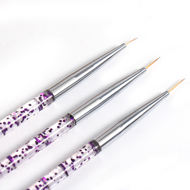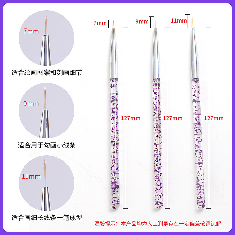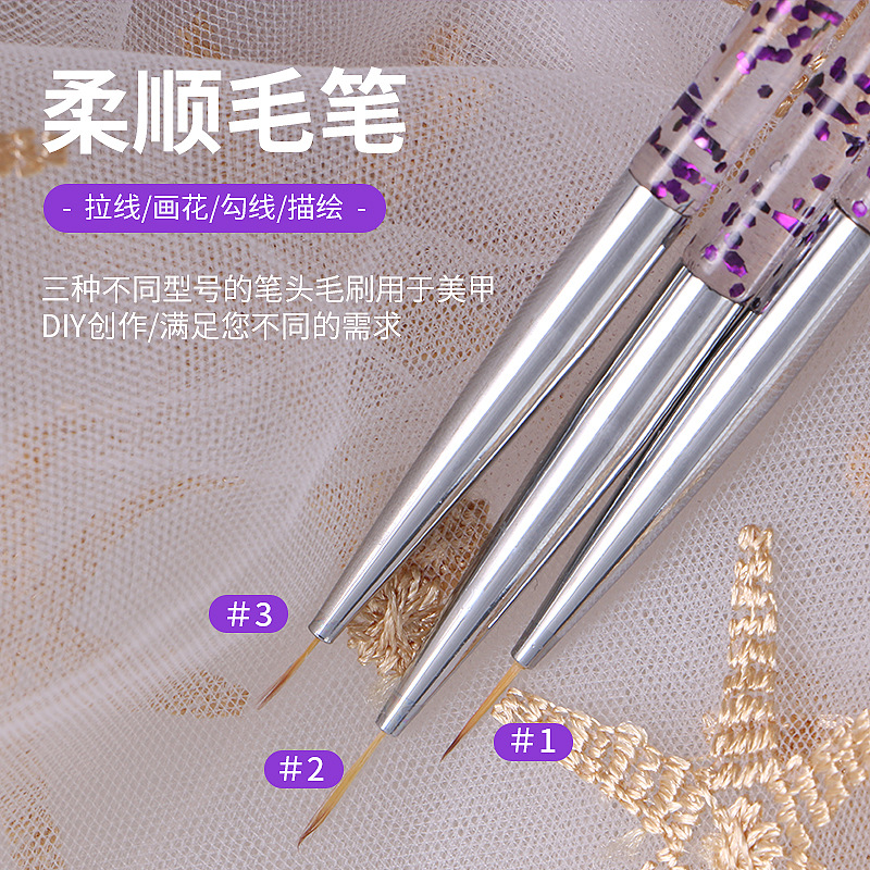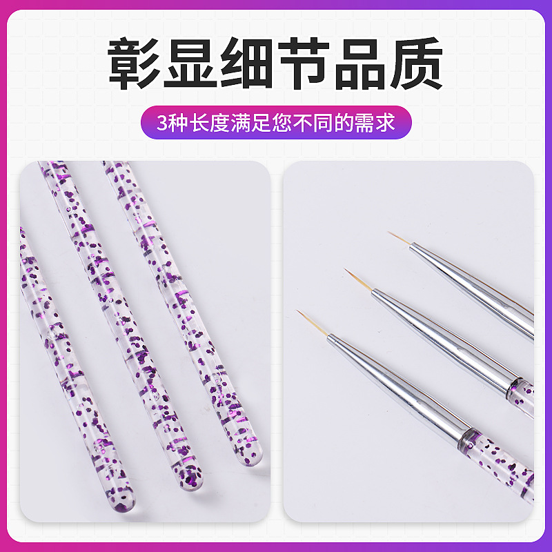 129透明紫色三只拉线笔彩绘勾线笔亮片杆画花美甲工具