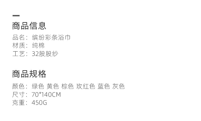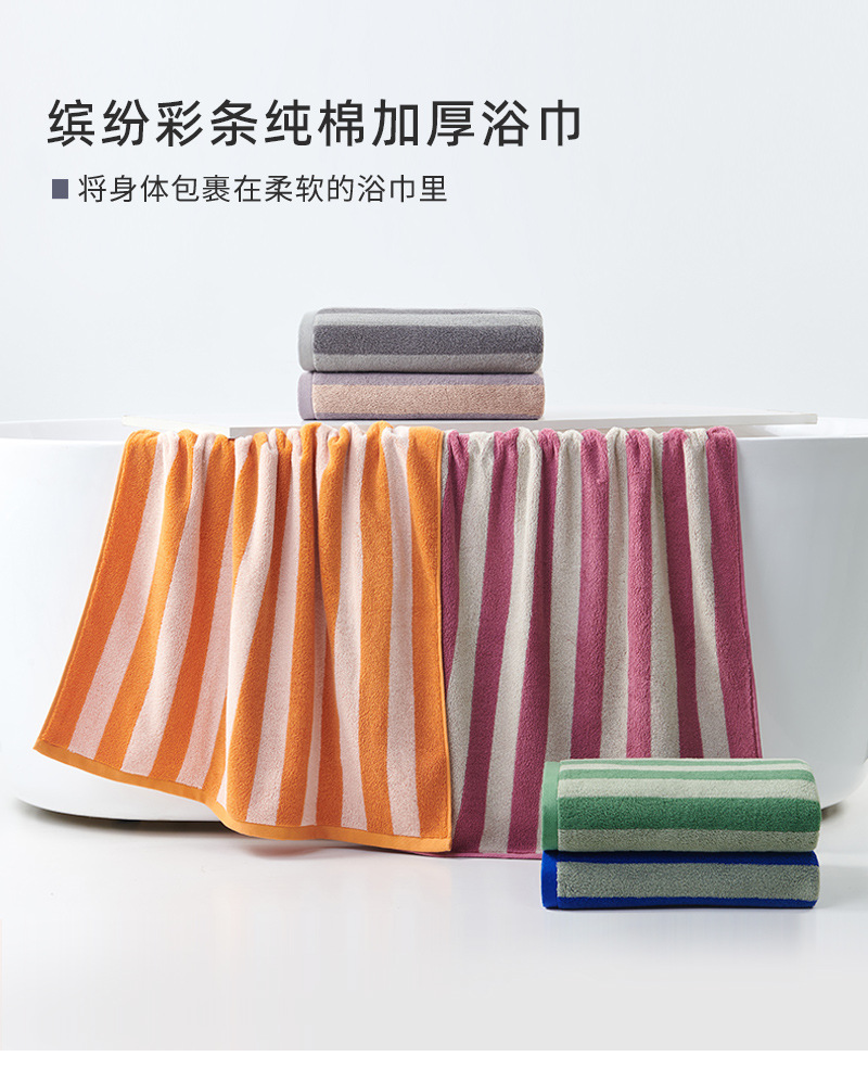 纯棉色织条纹浴巾70*140CM彩条浴巾450克洗澡浴巾亲肤柔软大毛巾