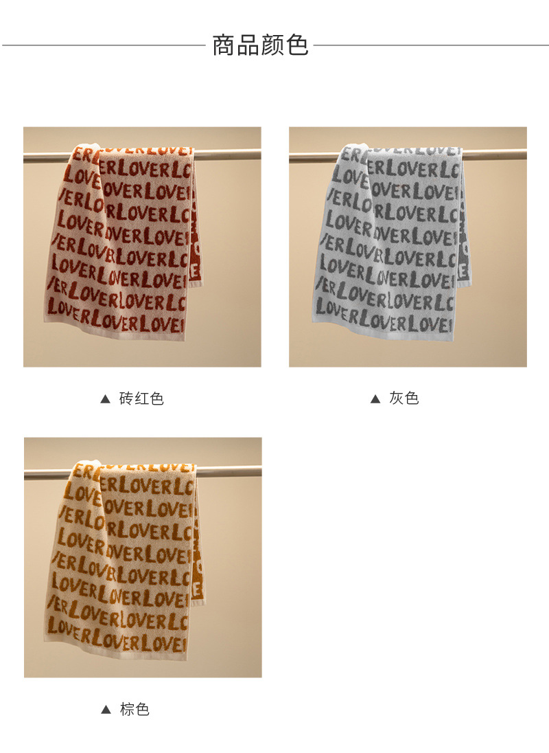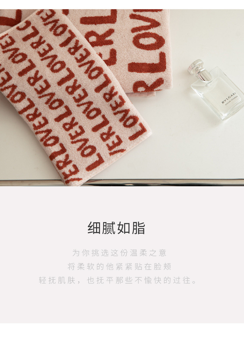 毛巾LOVE提花毛巾成人34*72cm90克纯棉男士女士擦脸巾易干不掉毛