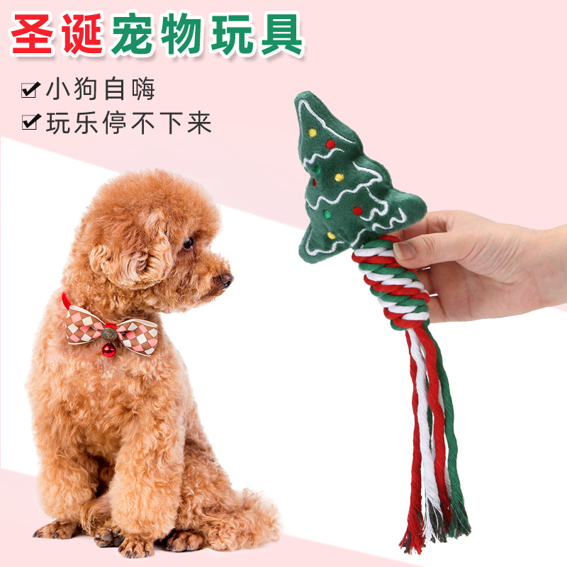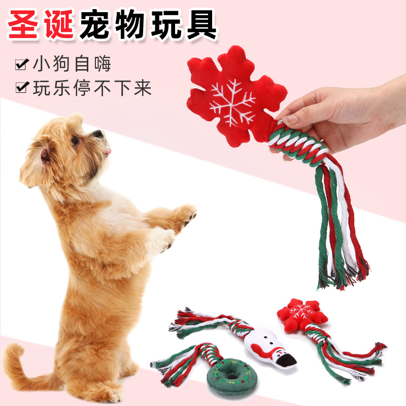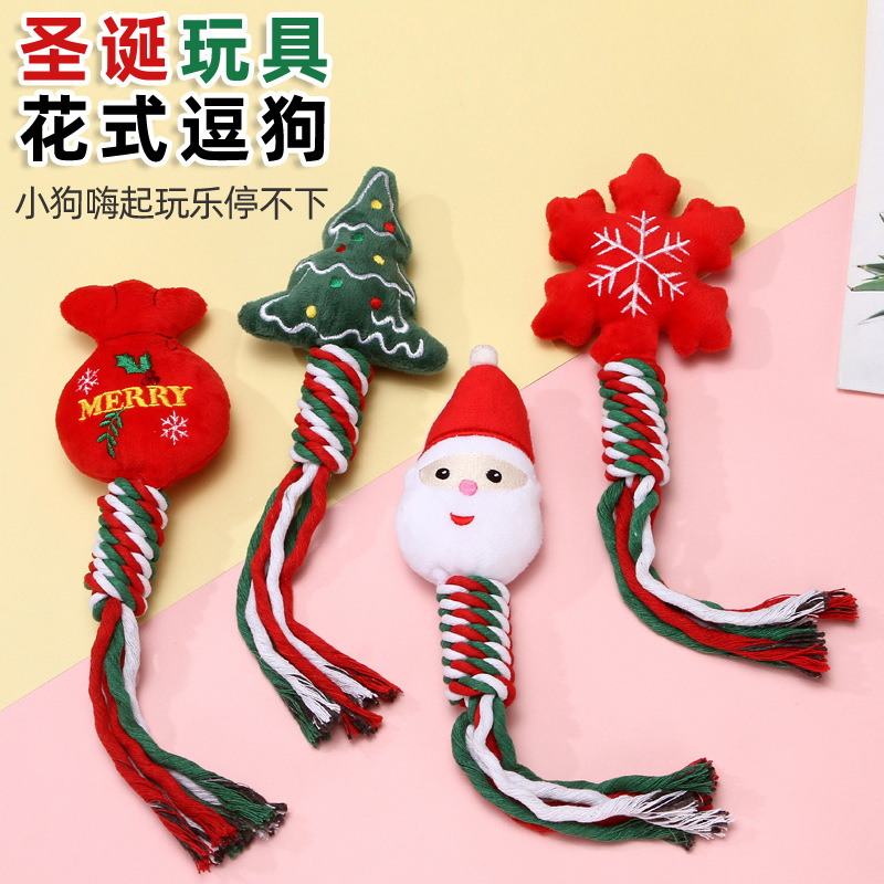 新款跨境宠物用品狗狗训练啃咬磨牙洁齿棉绳结圣诞系列毛绒玩具