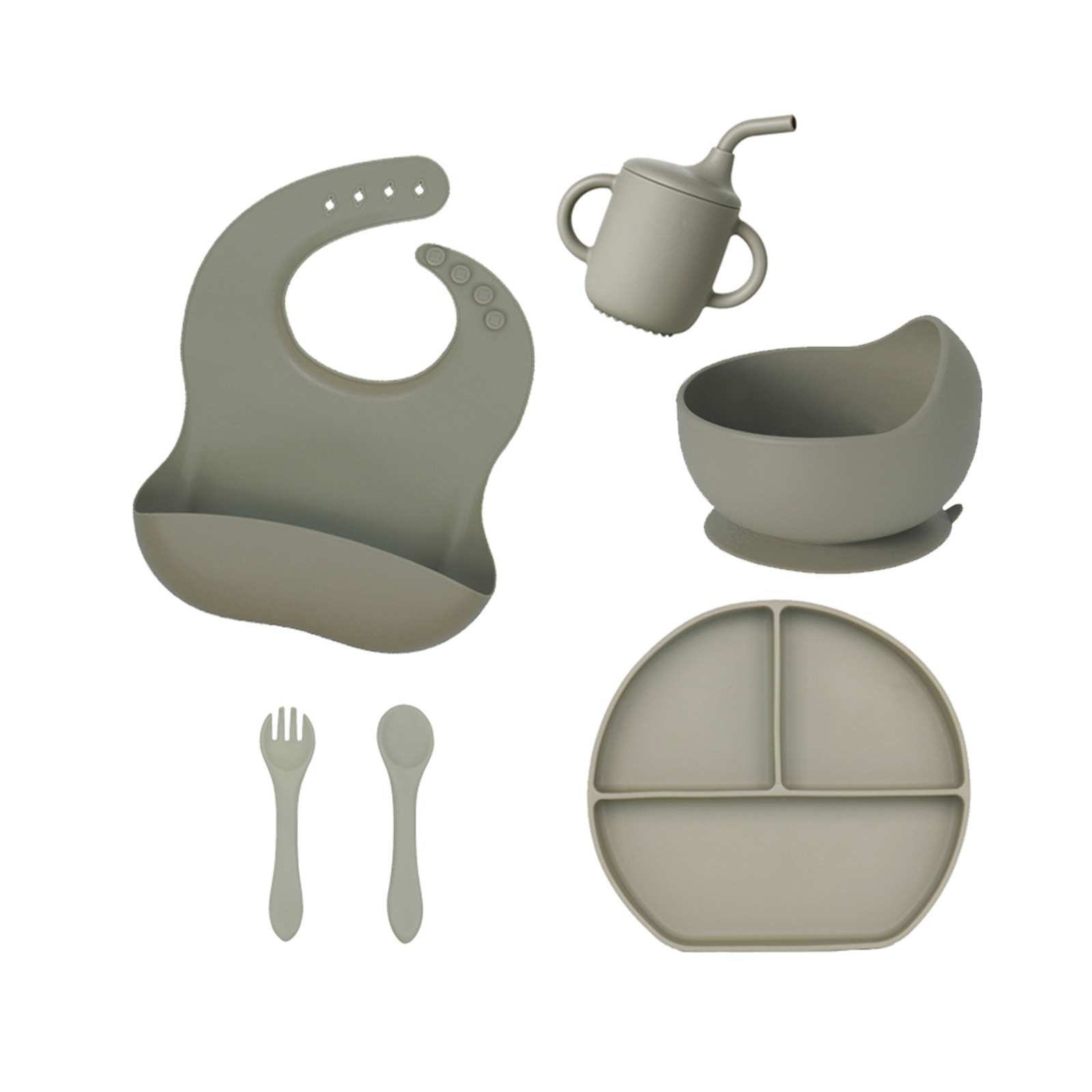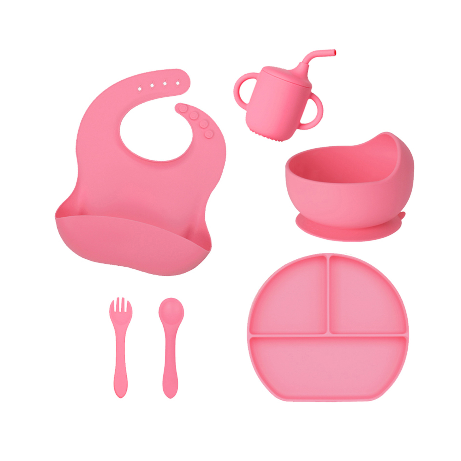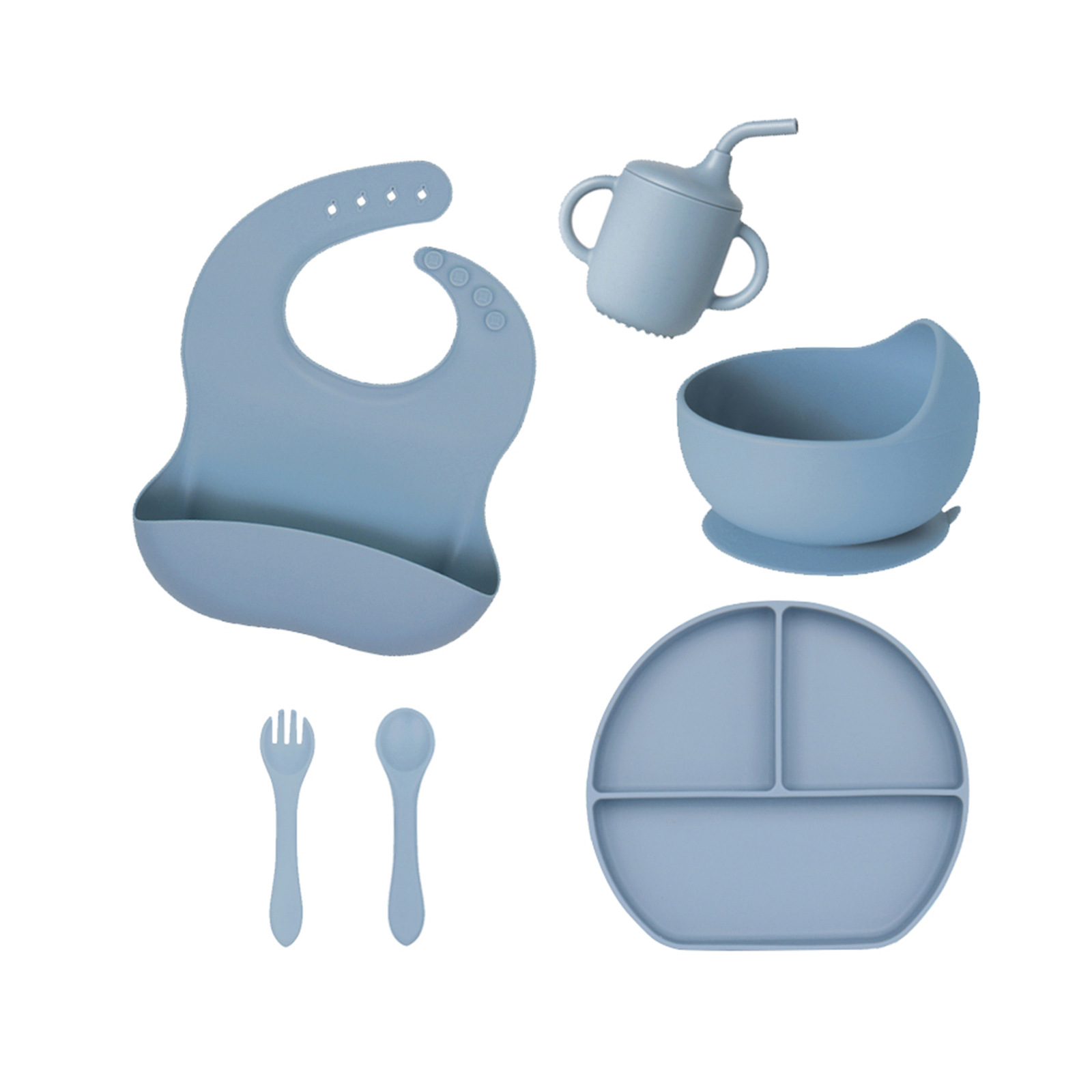 硅胶餐具套装宝宝吸管杯硅胶餐盘碗围兜吃饭勺叉儿童餐具母婴用品
