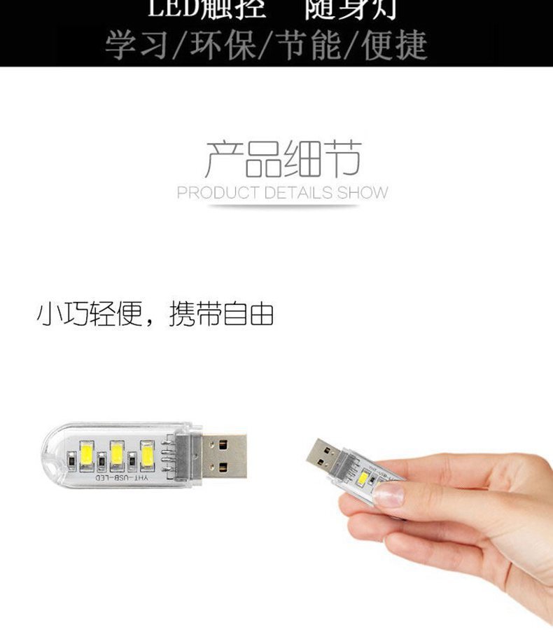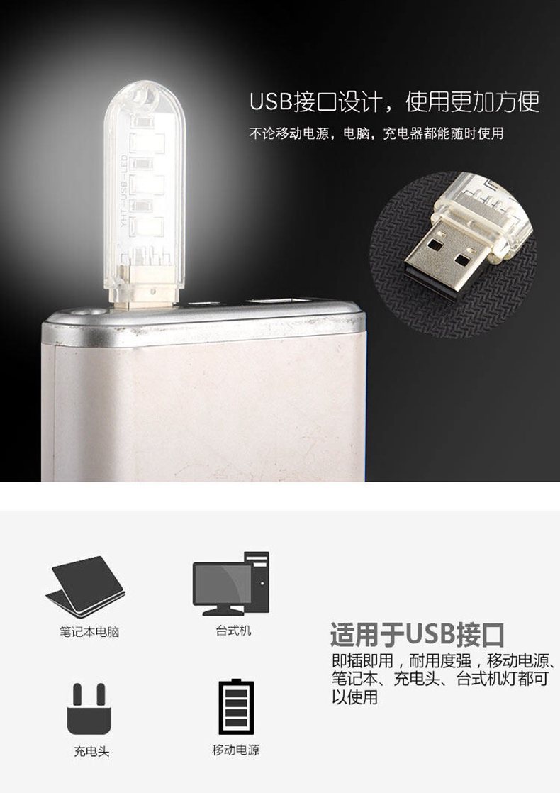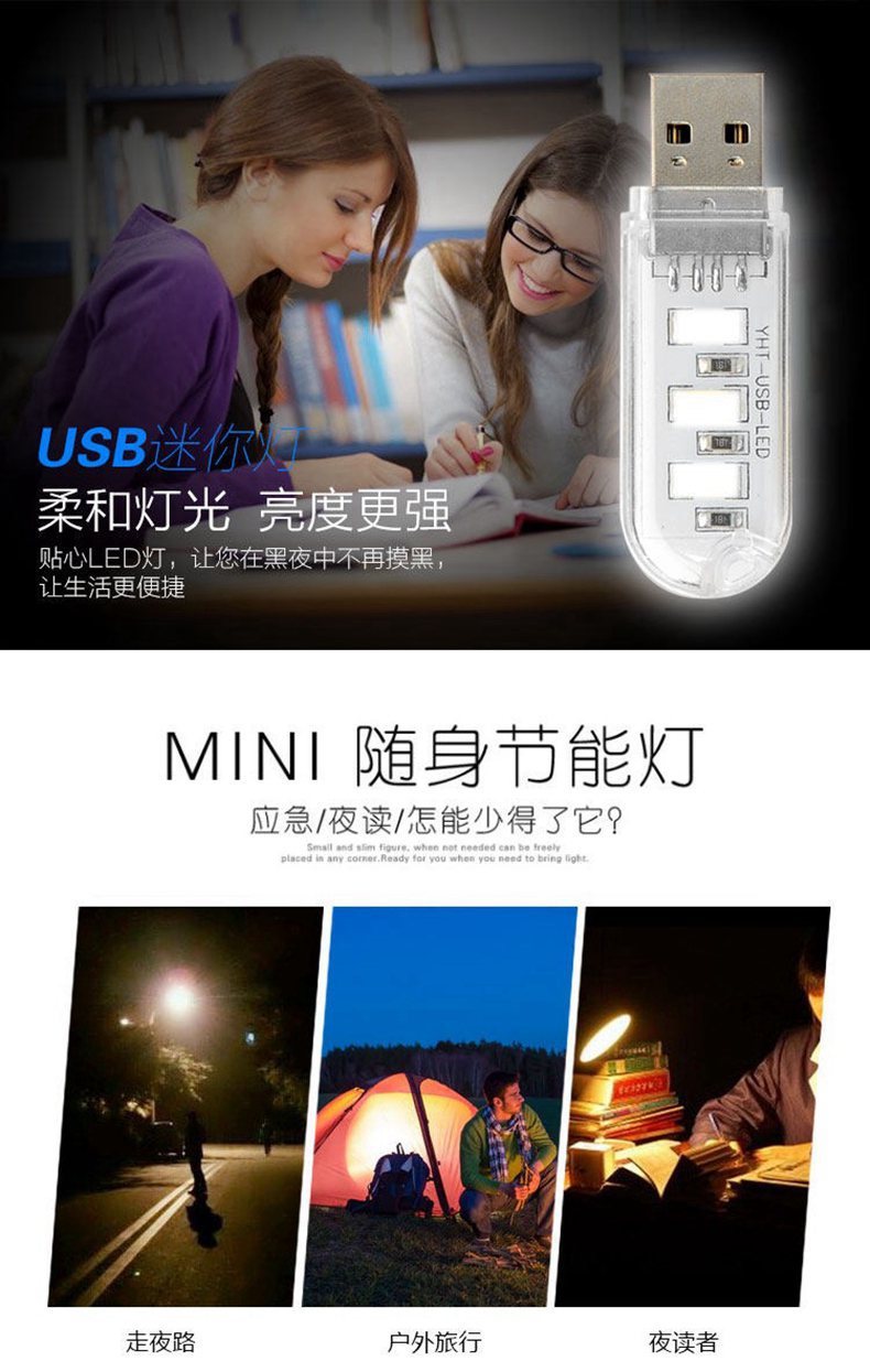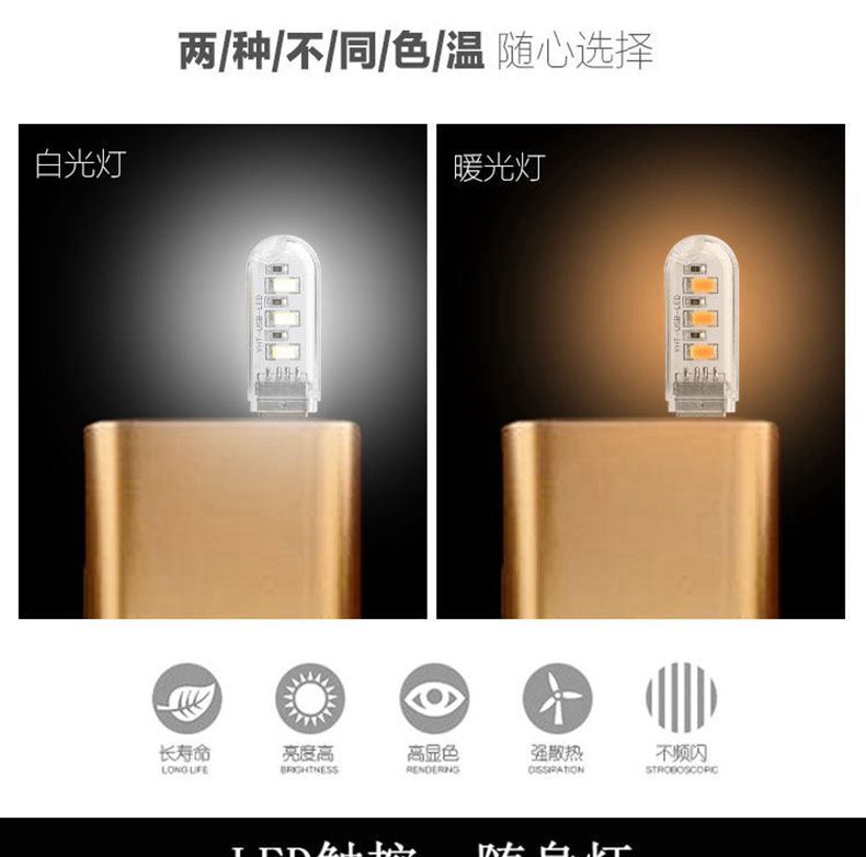 外贸专供USBLED灯移动电源灯学生灯野营迷你随身灯充电宝护眼灯