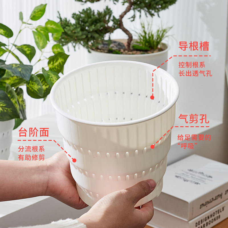 boxin large diameter 25cm round thickened root-controlling basin four seasons balcony household green plant flower porous breathable flower pot