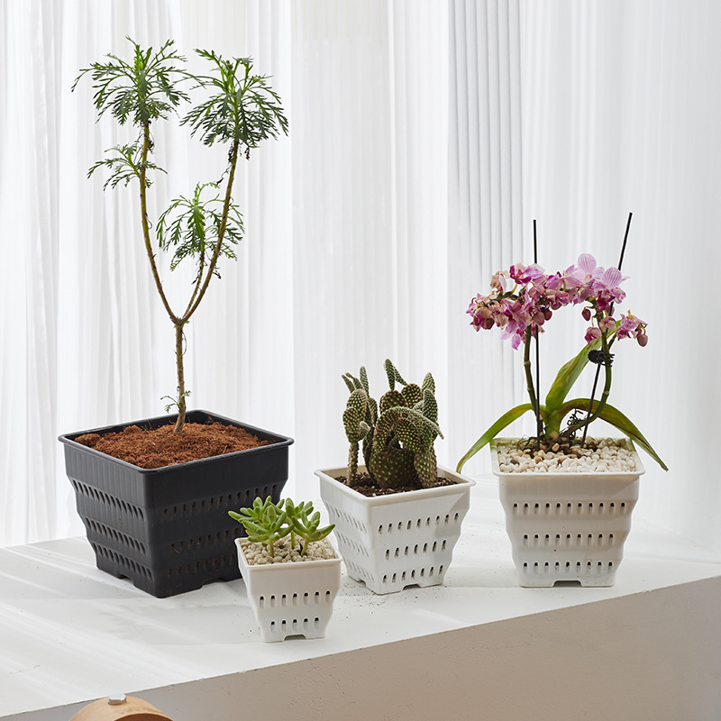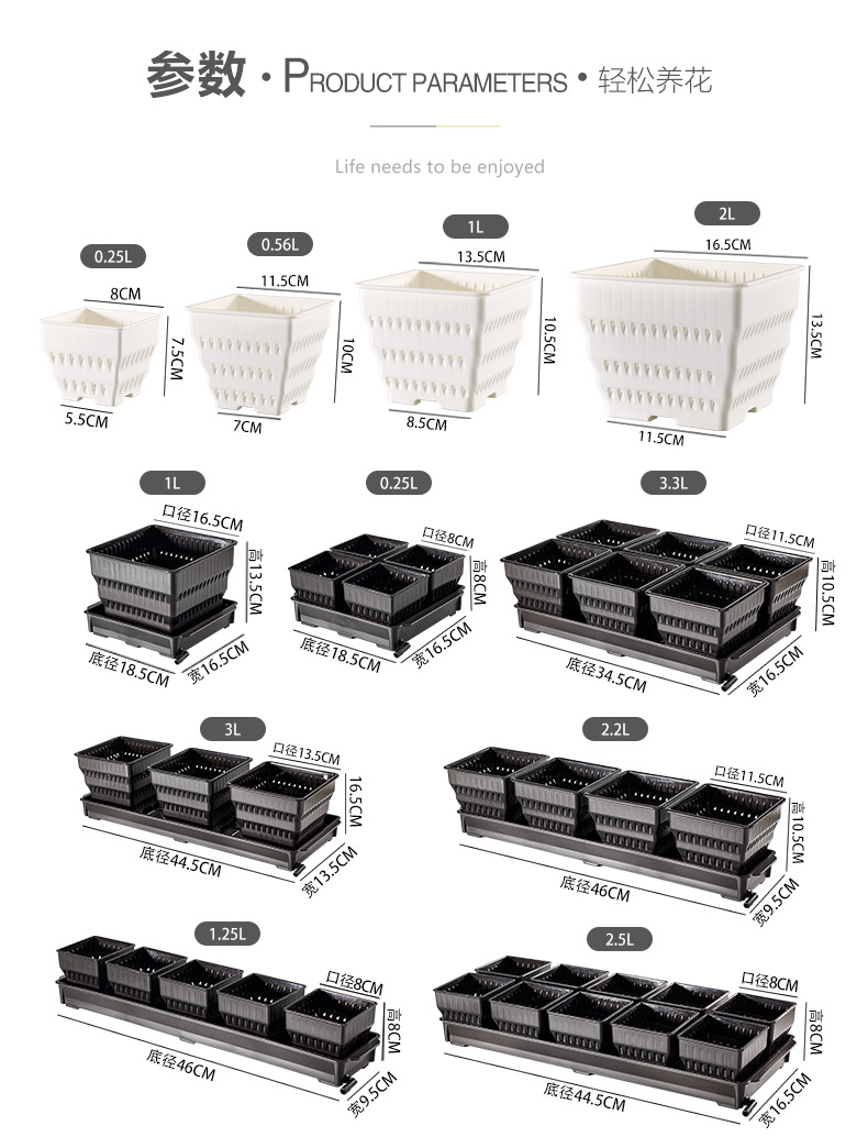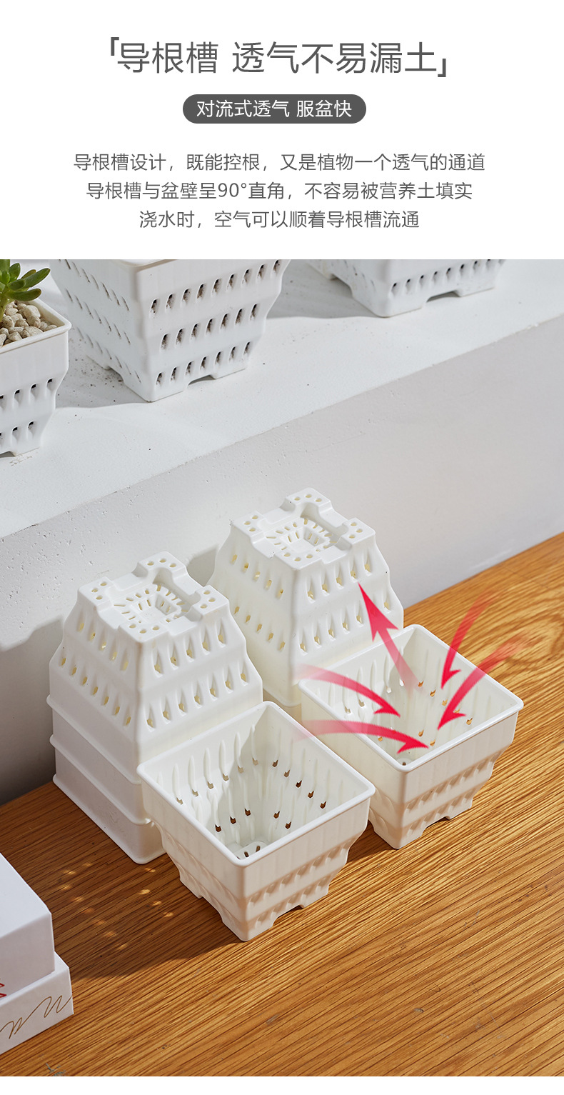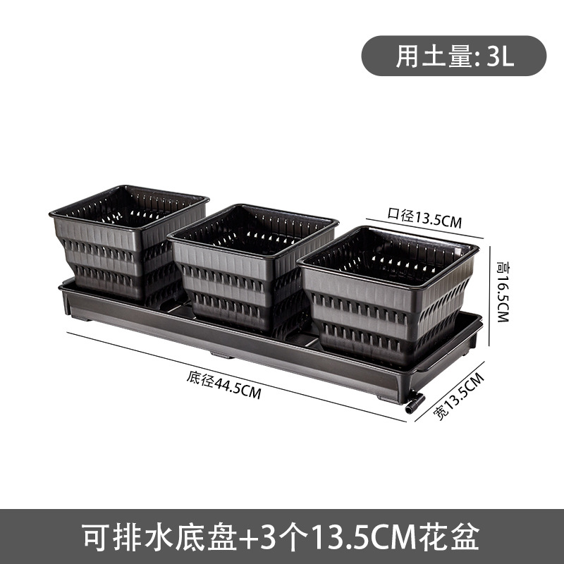 博馨园艺塑业加厚12 cm多肉方盆透气控根桌面小型花卉带托盘花盆