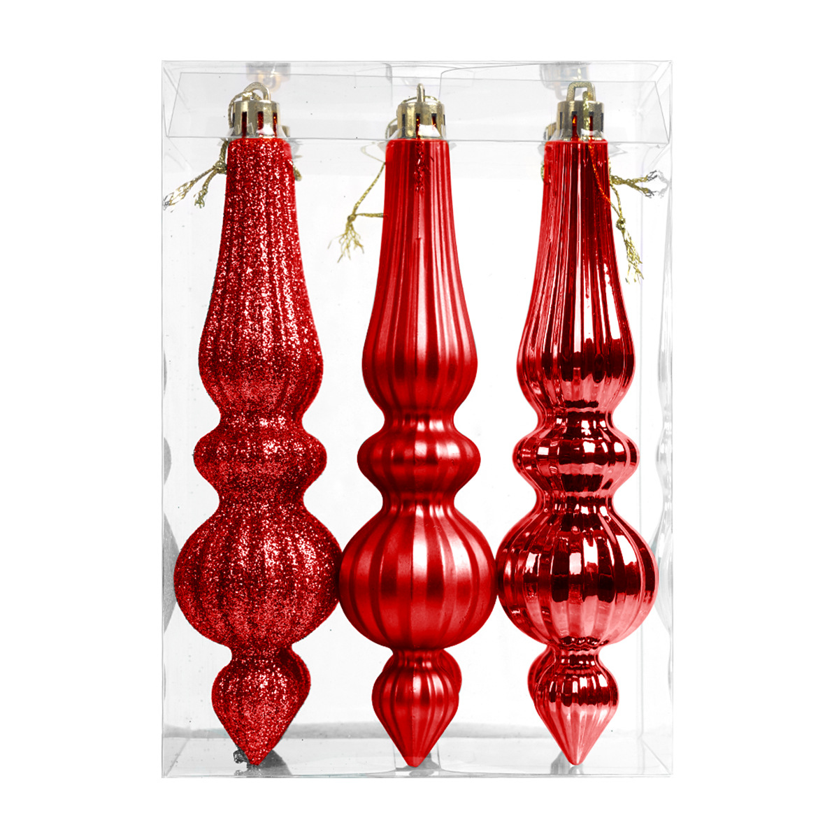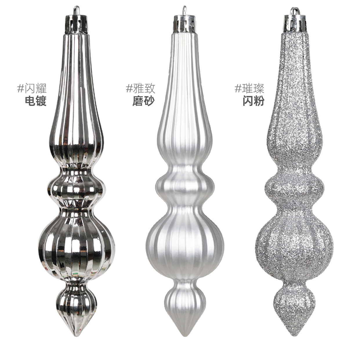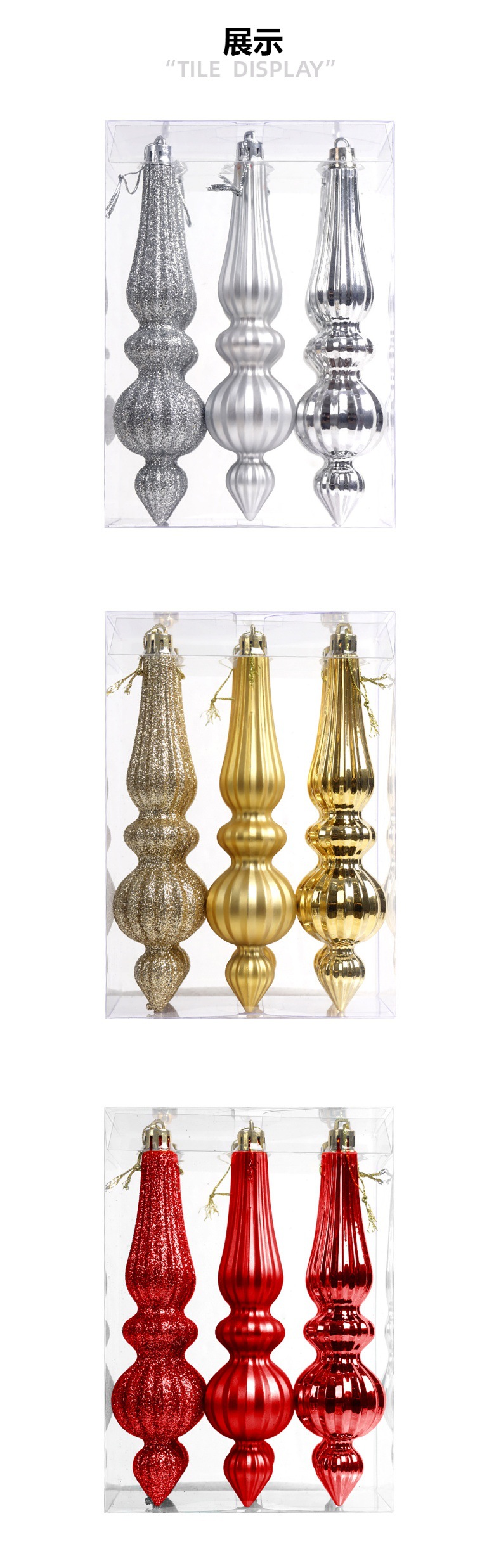跨境新款锥形圣诞球异形电镀哑光塑料球圣诞节装饰品挂件挂球套装
