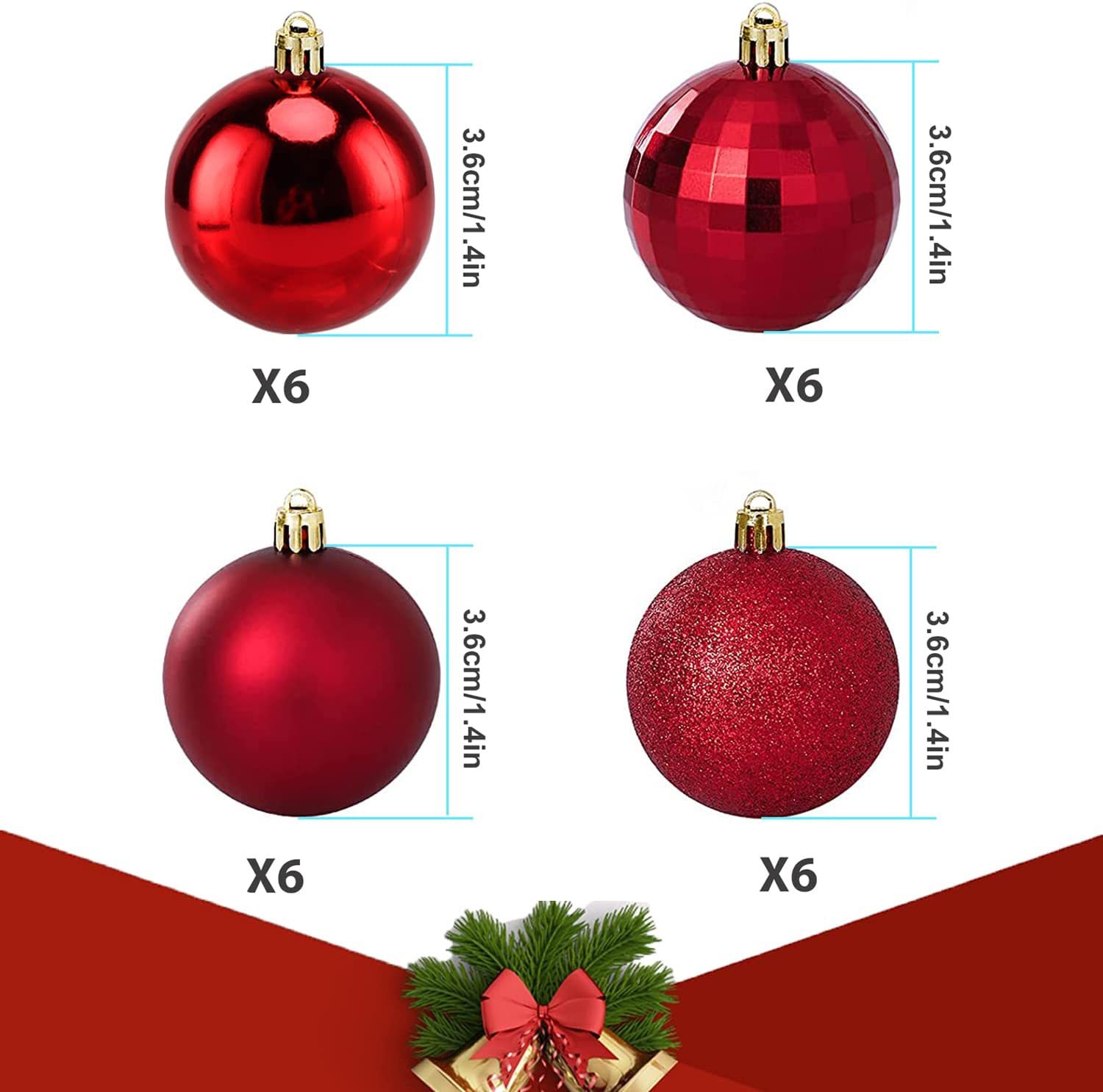 外贸爆款 24pcs 圣诞节装饰品电镀工艺 节日圣诞婚礼派对装饰挂球