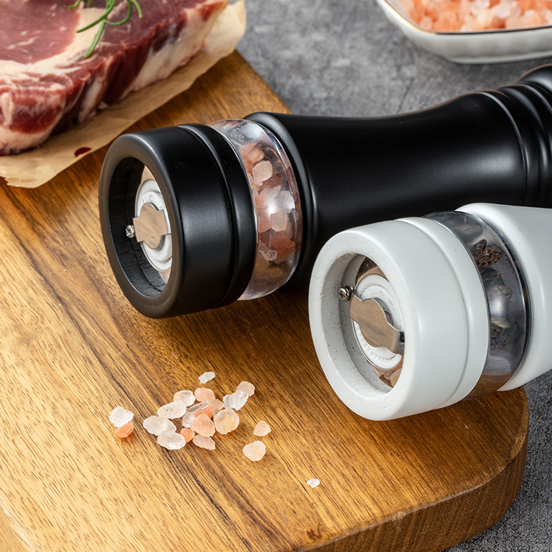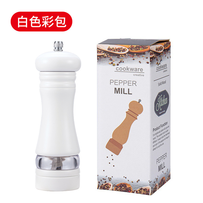 实木PU烤漆6寸胡椒研磨器可视透明胡椒磨黑胡椒海盐研磨瓶调味罐