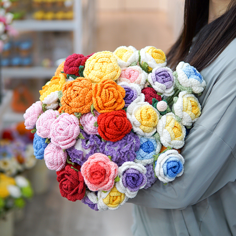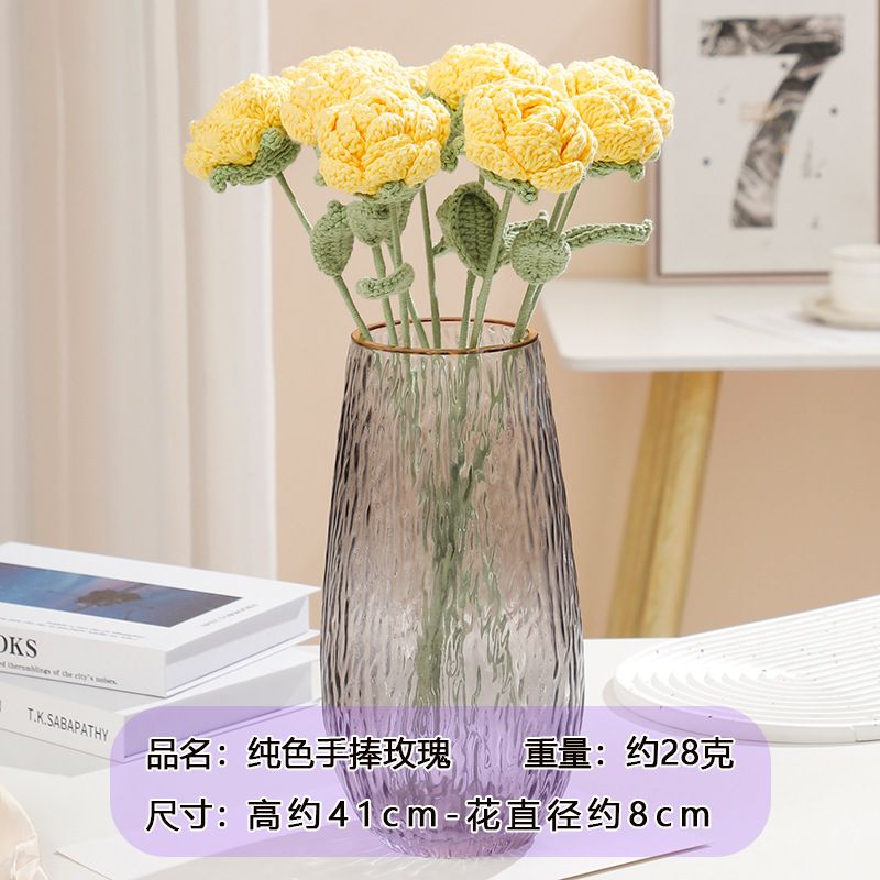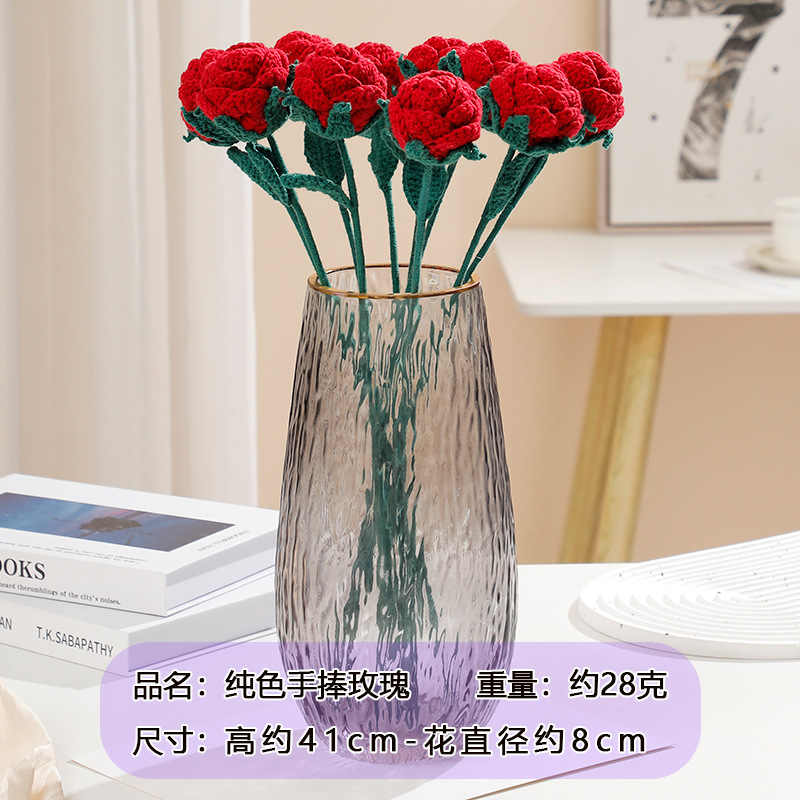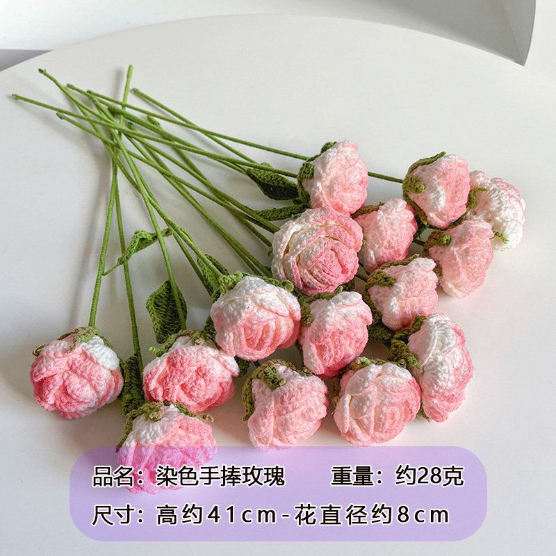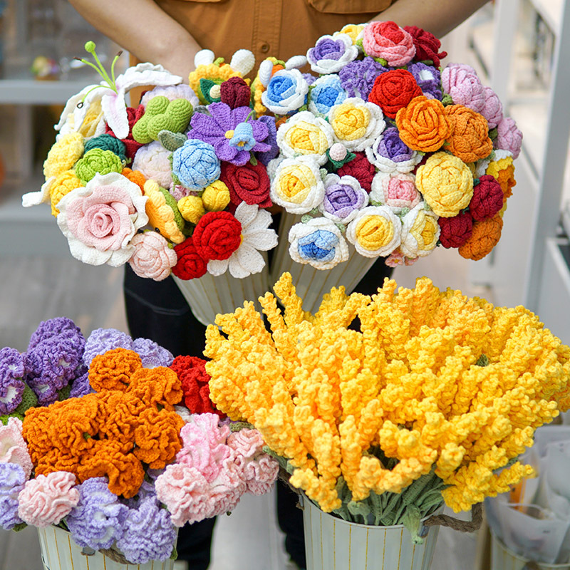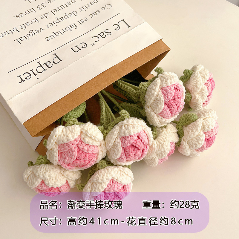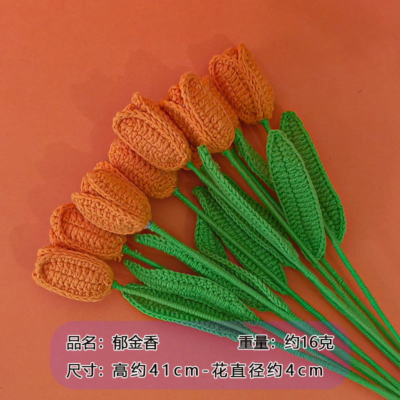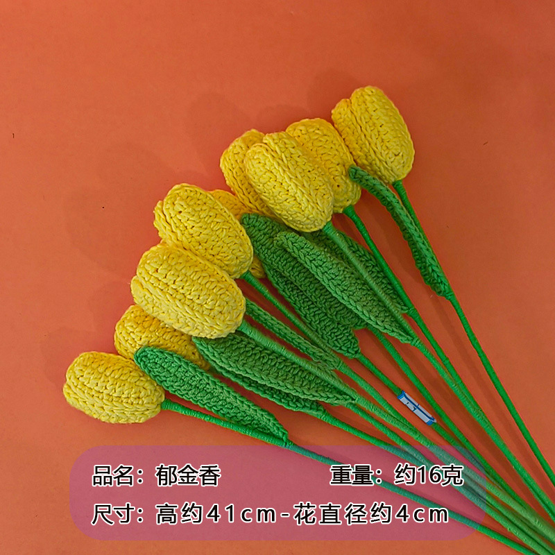 仿真花成品手工编织玫瑰花郁金香花艺装饰钩针毛线假花教师节礼物