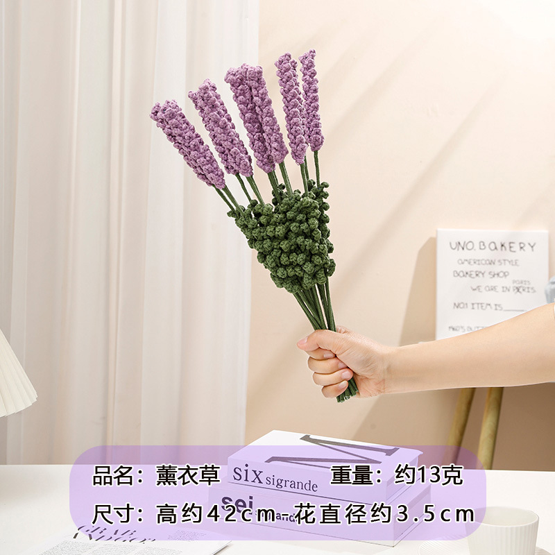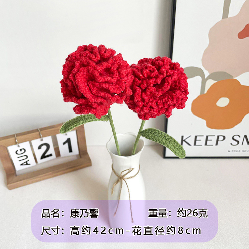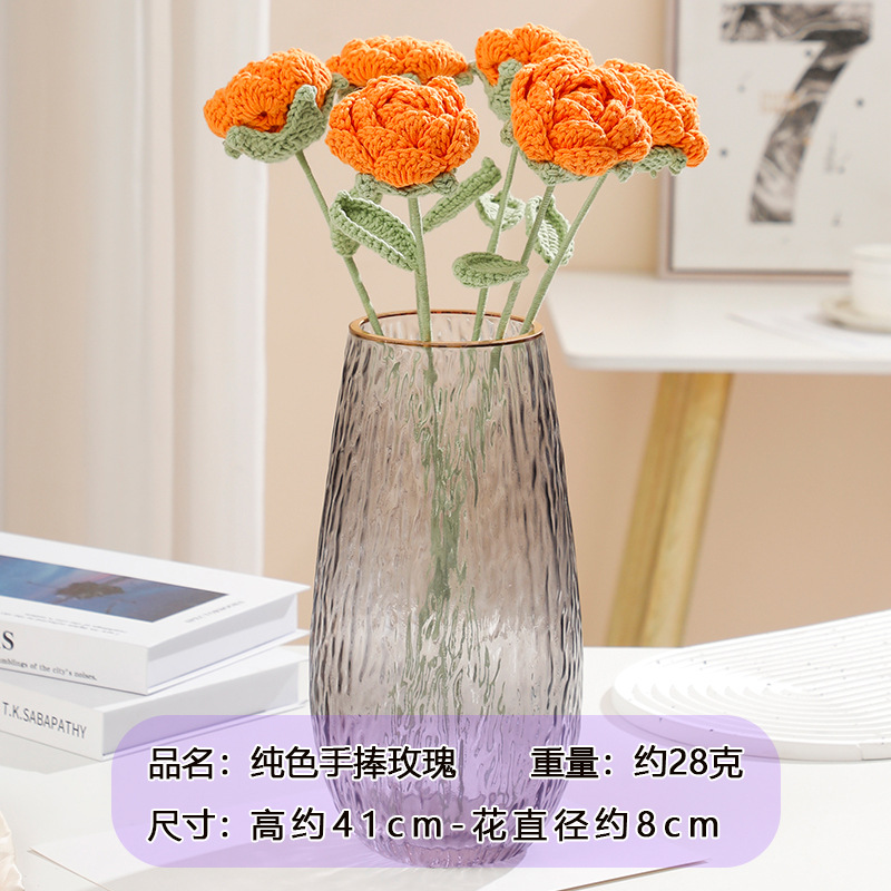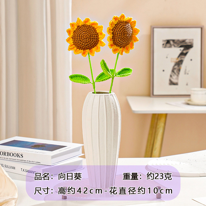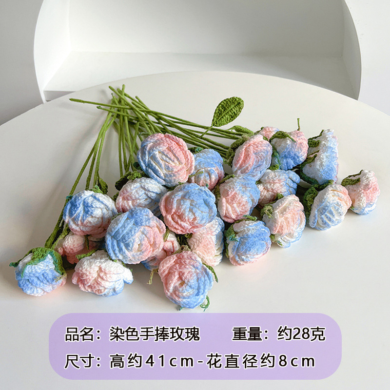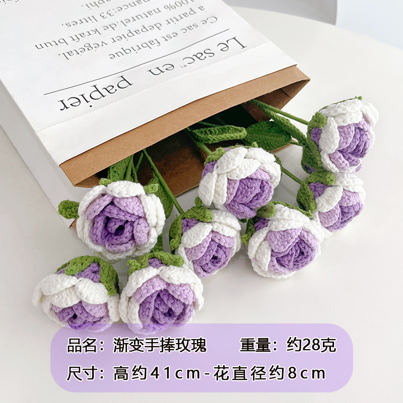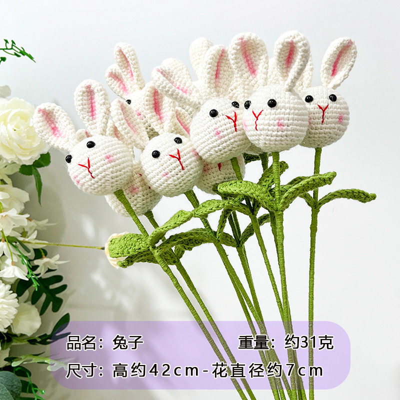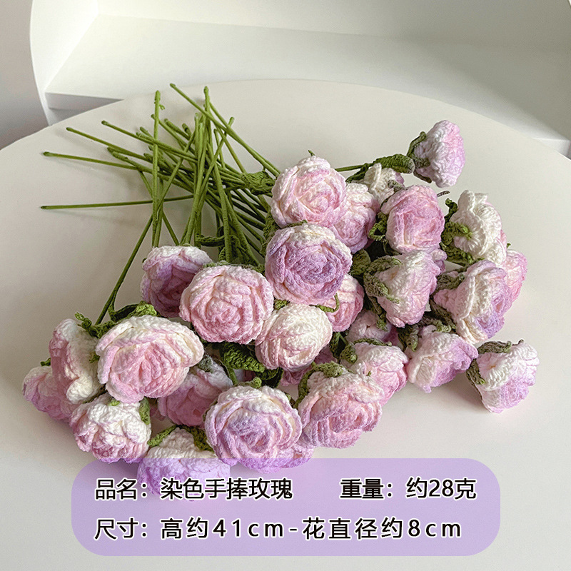 仿真花成品手工编织玫瑰花郁金香花艺装饰钩针毛线假花教师节礼物