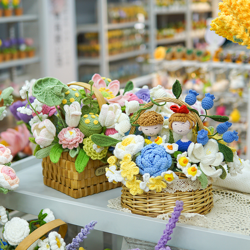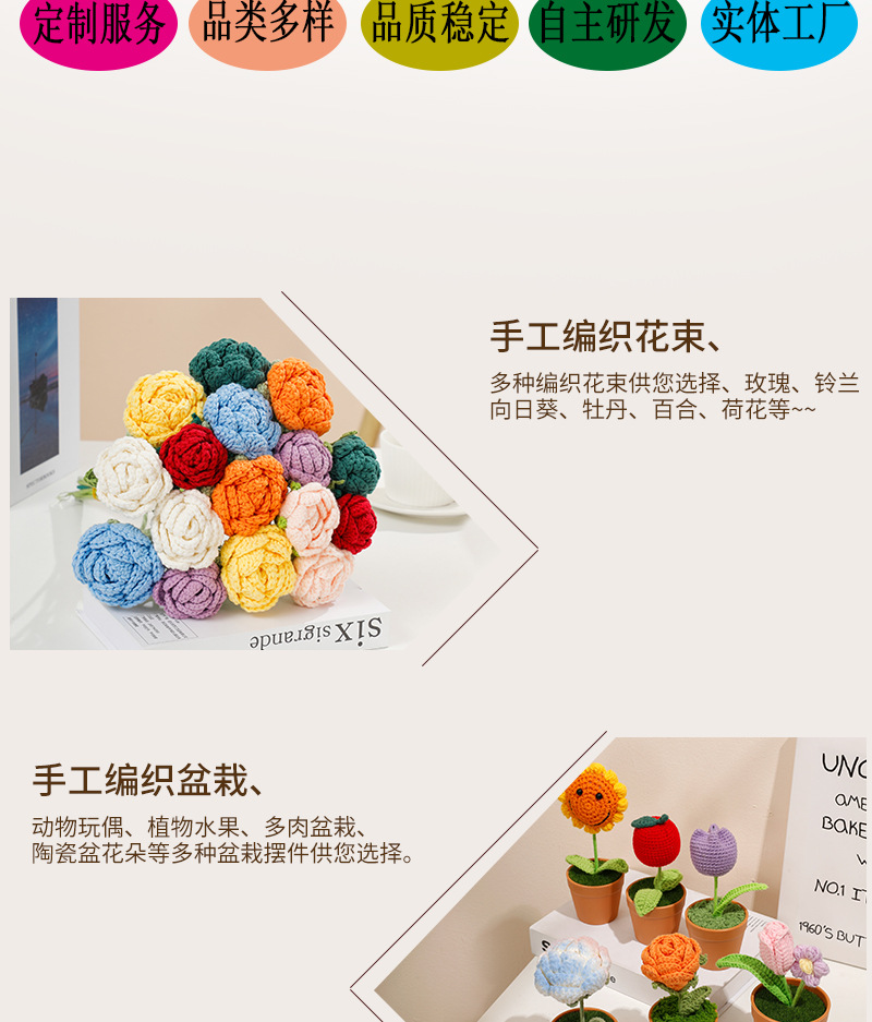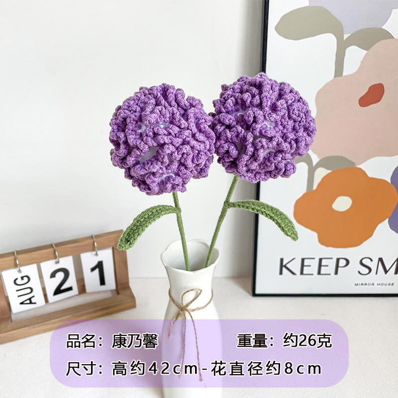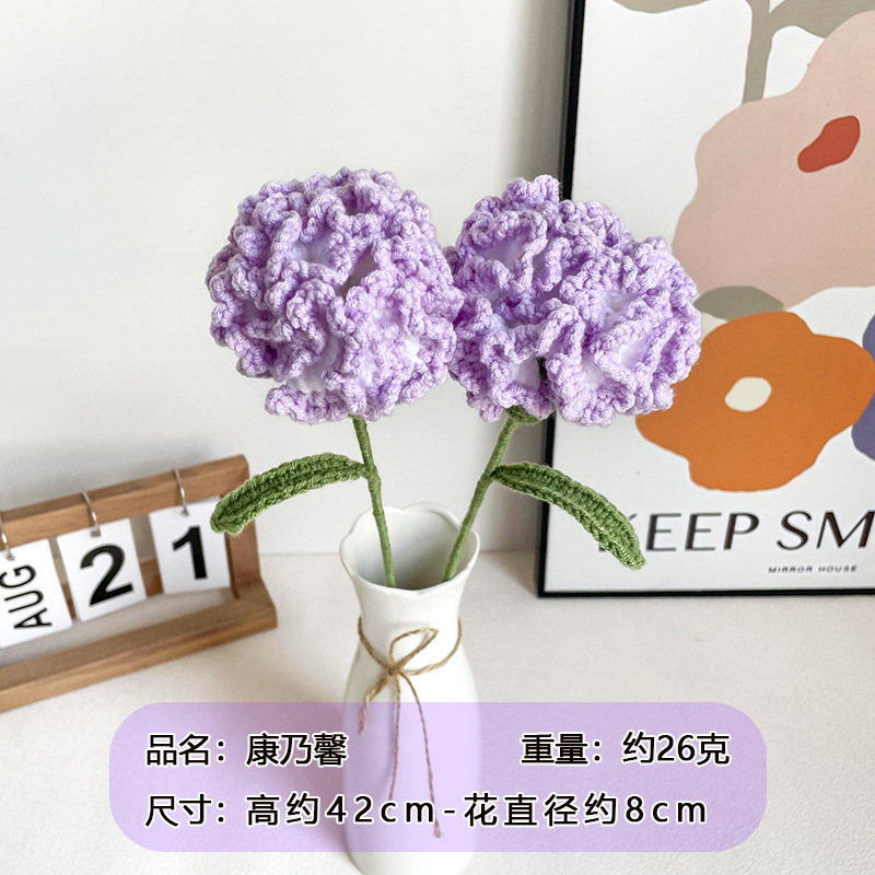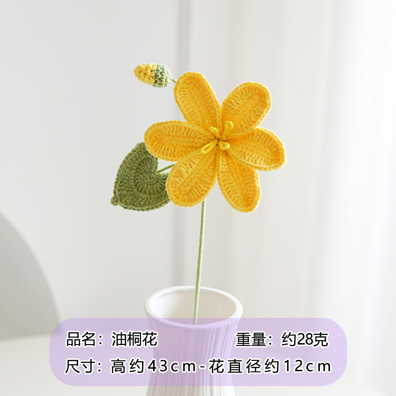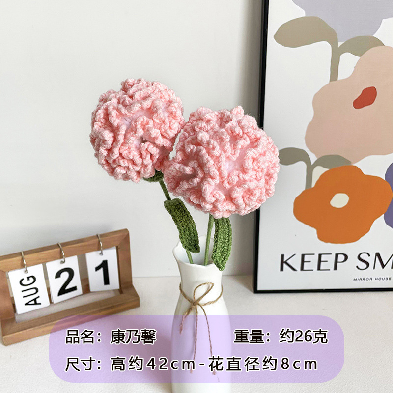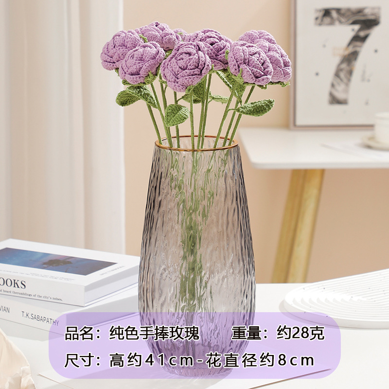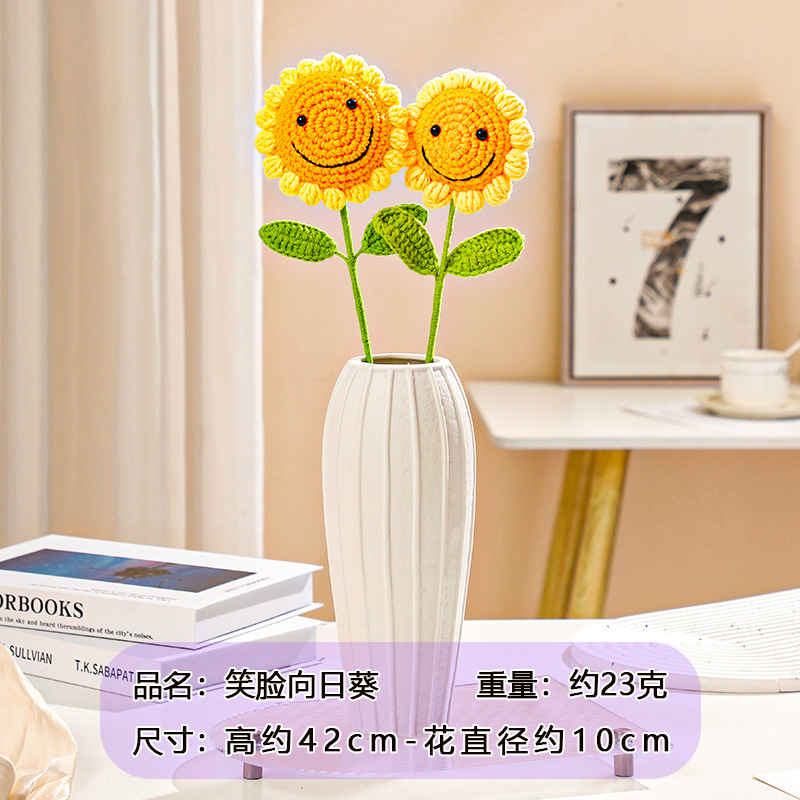 仿真花成品手工编织玫瑰花郁金香花艺装饰钩针毛线假花教师节礼物
