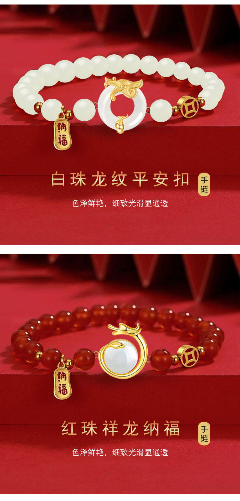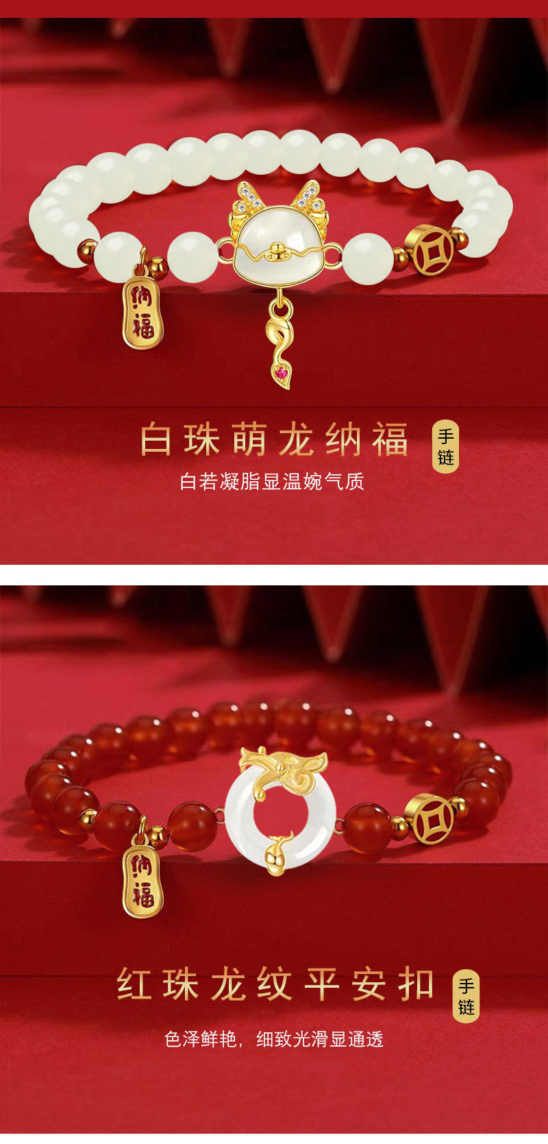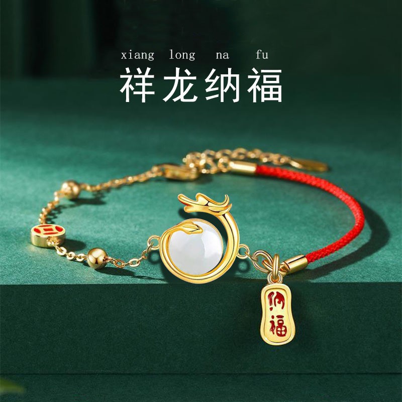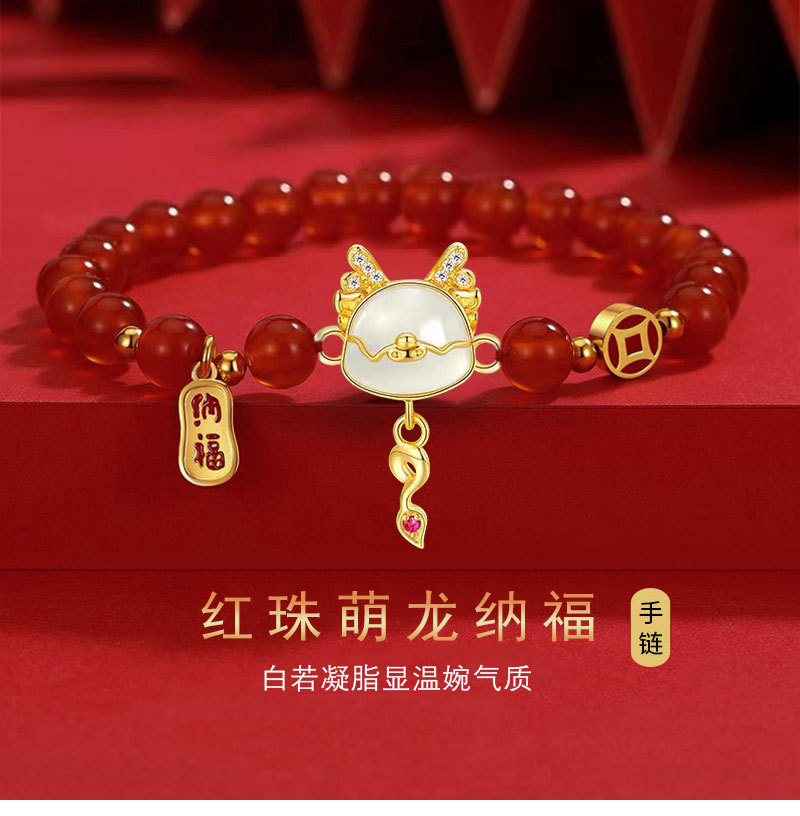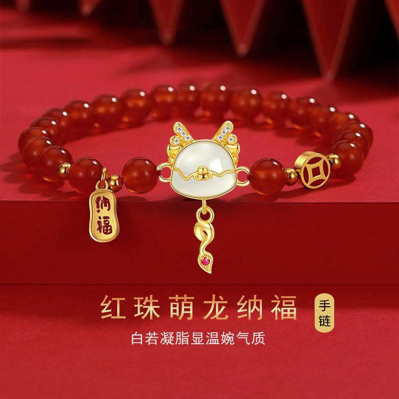 本命年龙年手链女2024年新款生肖龙仿和田玉玛瑙手串女送新年礼物