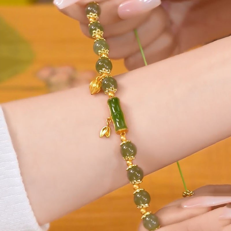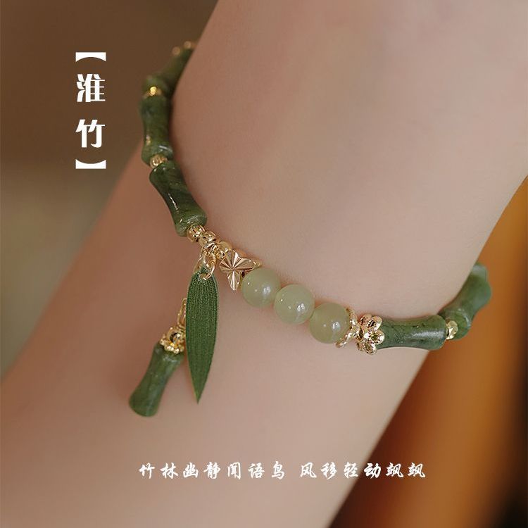 抖音同款新中式竹节手链女ins新款中国风节节高仿和田玉手串礼物