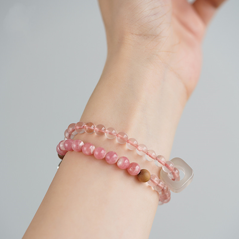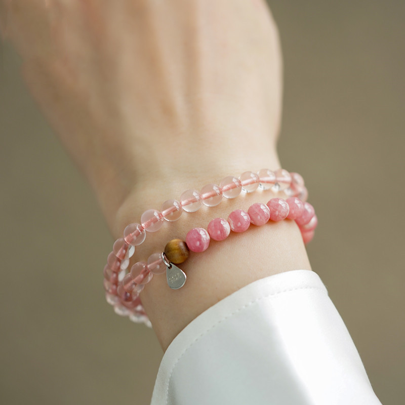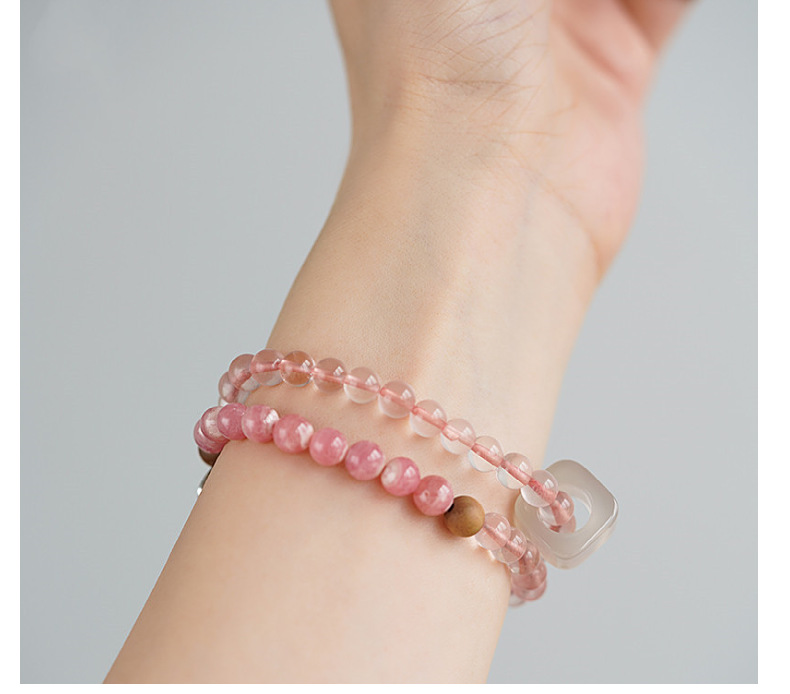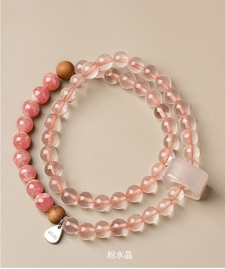 红纹石手串6MM两圈女 粉水晶手链优雅气质送礼物闺蜜一件批发