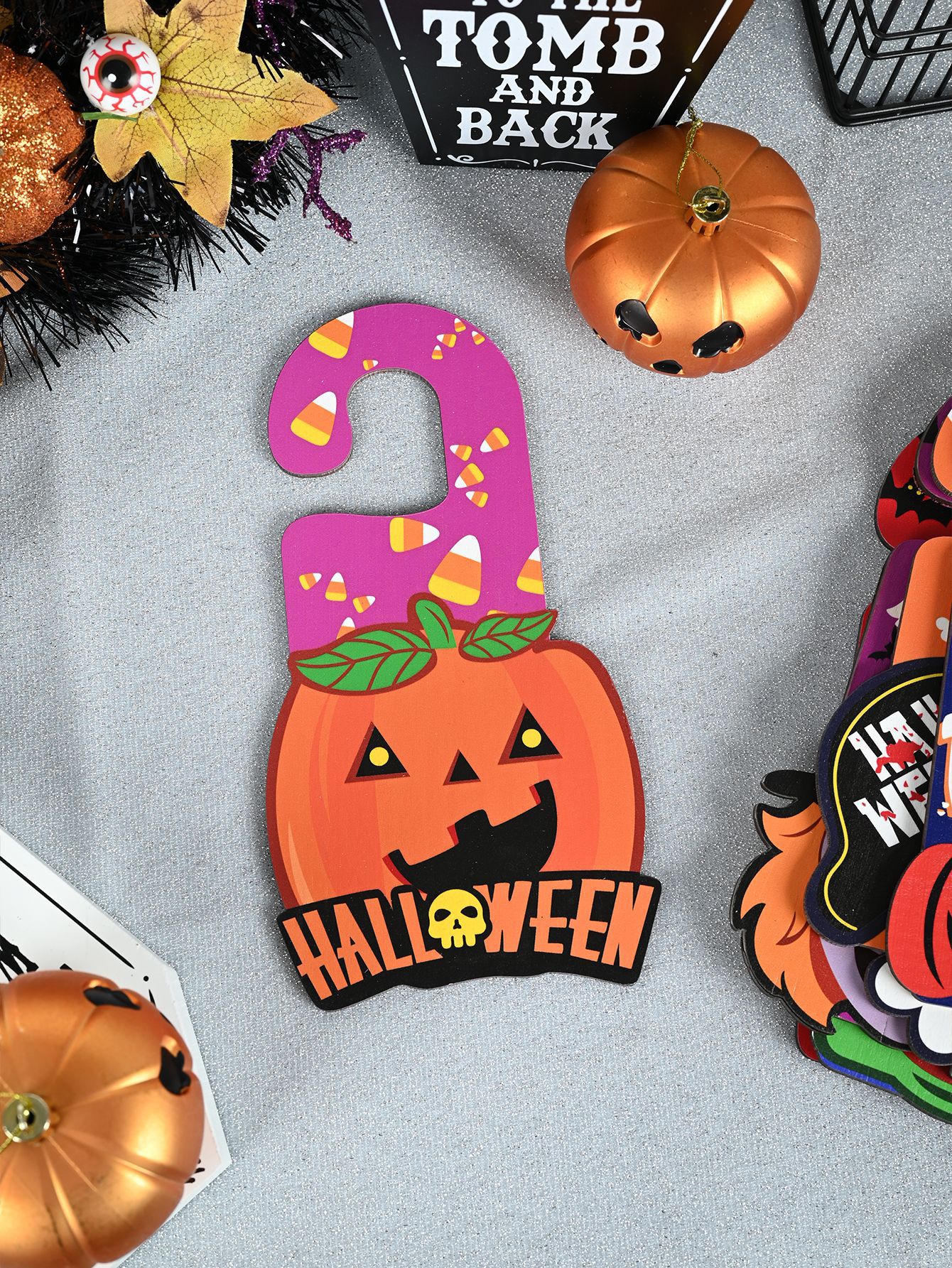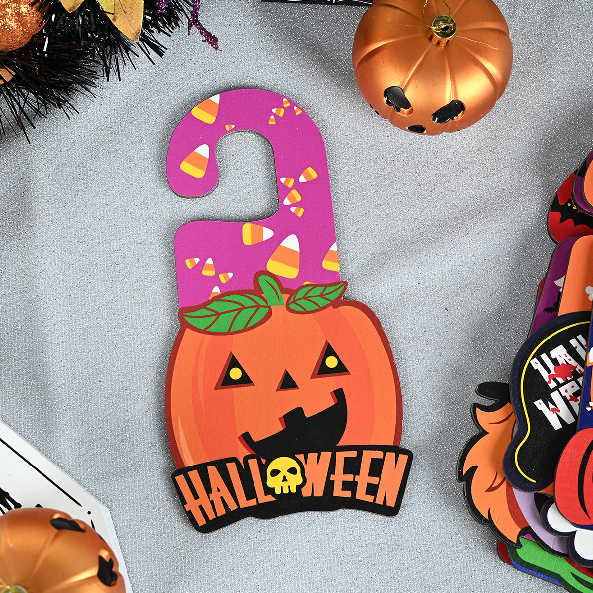 万圣节装饰品门把手挂牌万圣节派对布置用品鬼节南瓜女巫怪物木牌