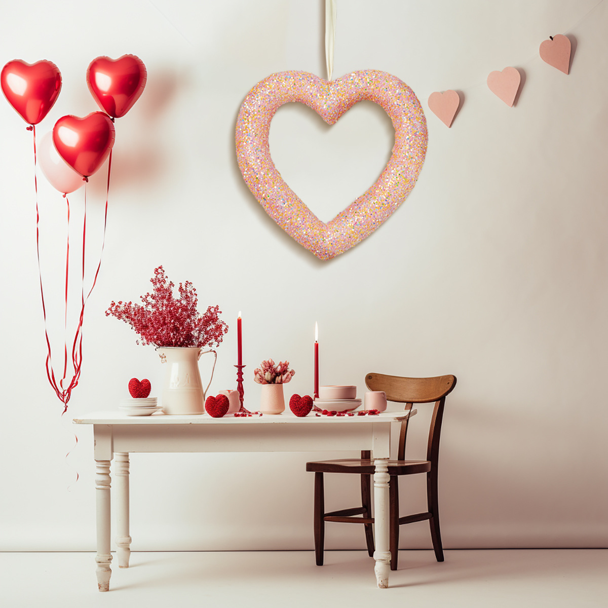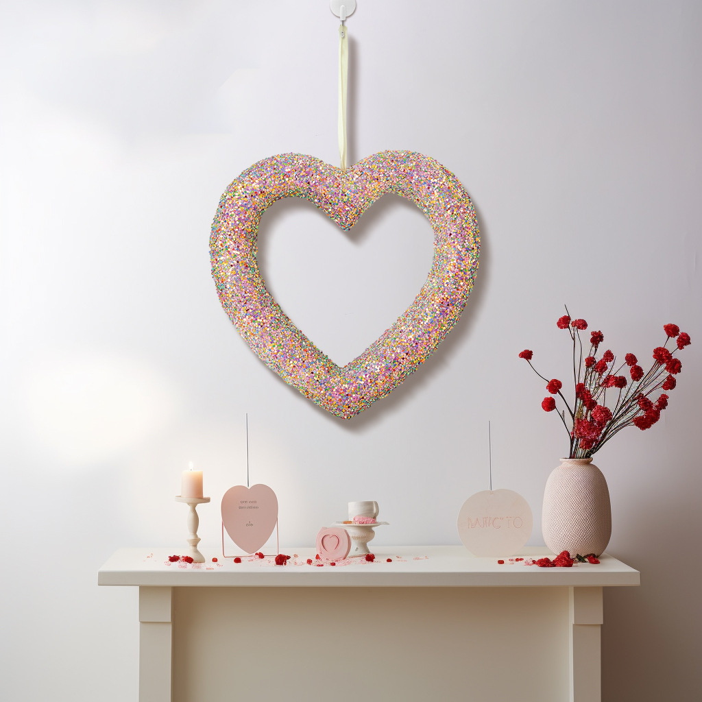 情人节爱心花环门挂情人节派对用品装饰挂饰七夕求婚结婚装饰跨境