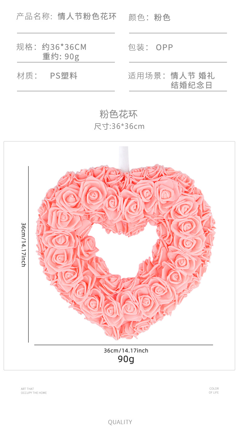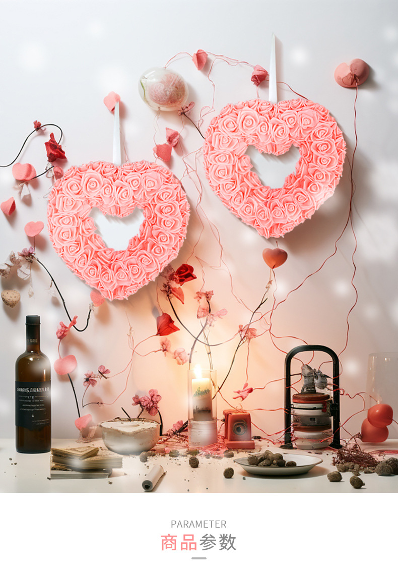 情人节爱心花环门挂婚礼求婚派对场景装饰布置情人节心形花环跨境