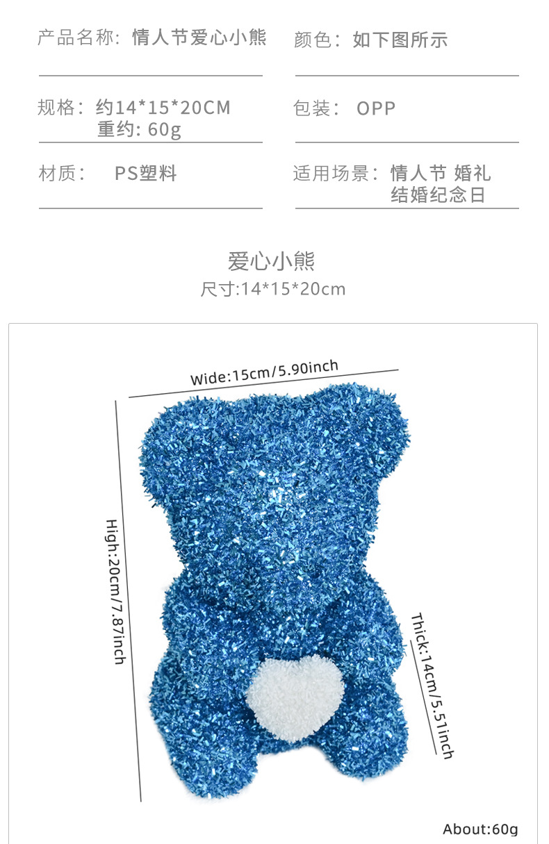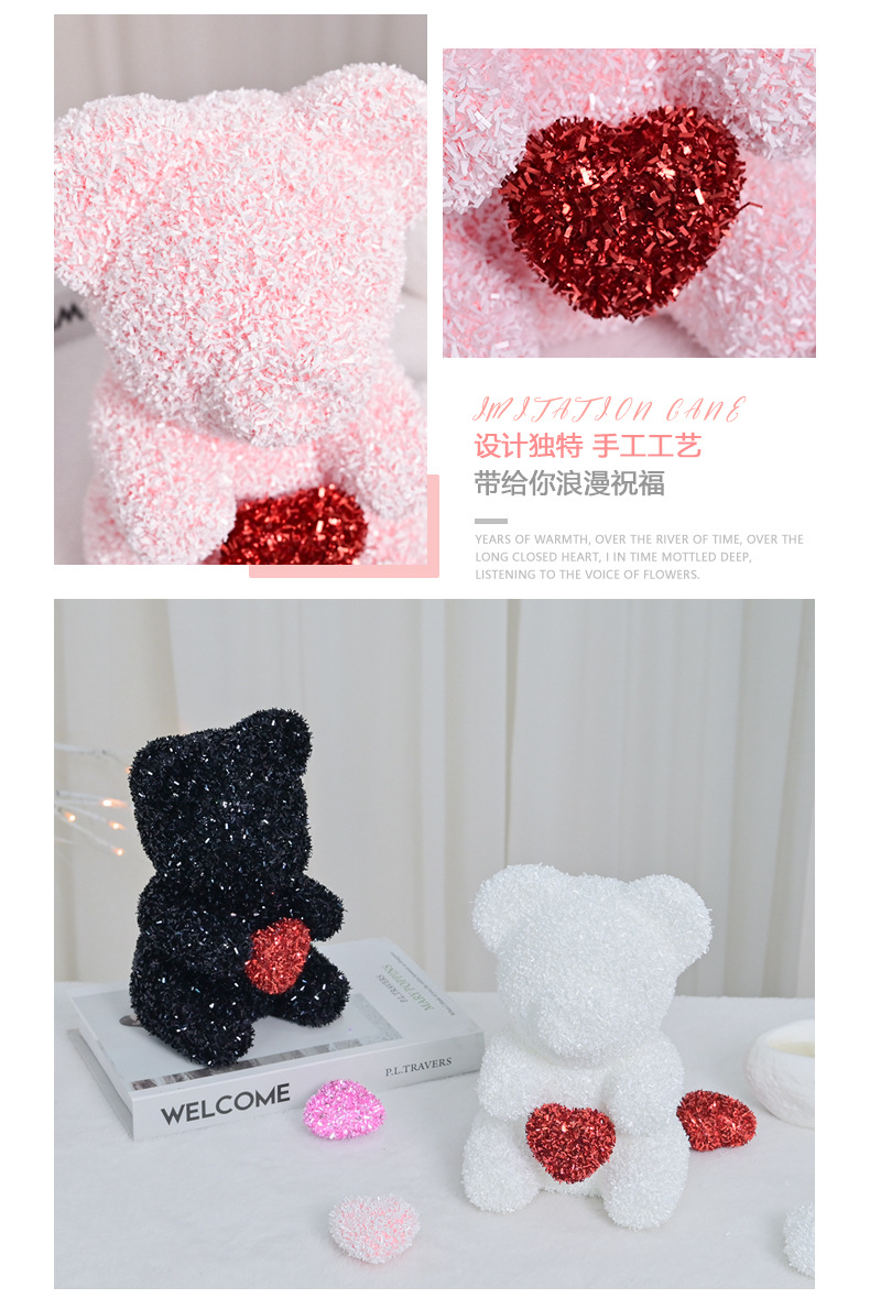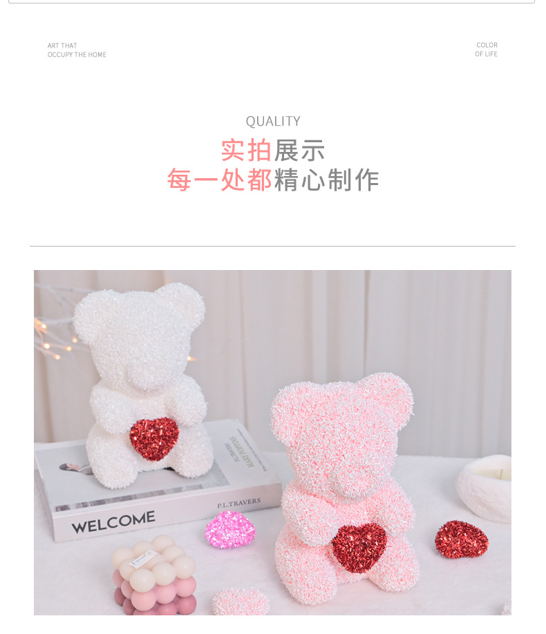 新款七夕情人节礼品抱抱熊泡沫花20cm泡沫玫瑰熊闪粉小熊公仔