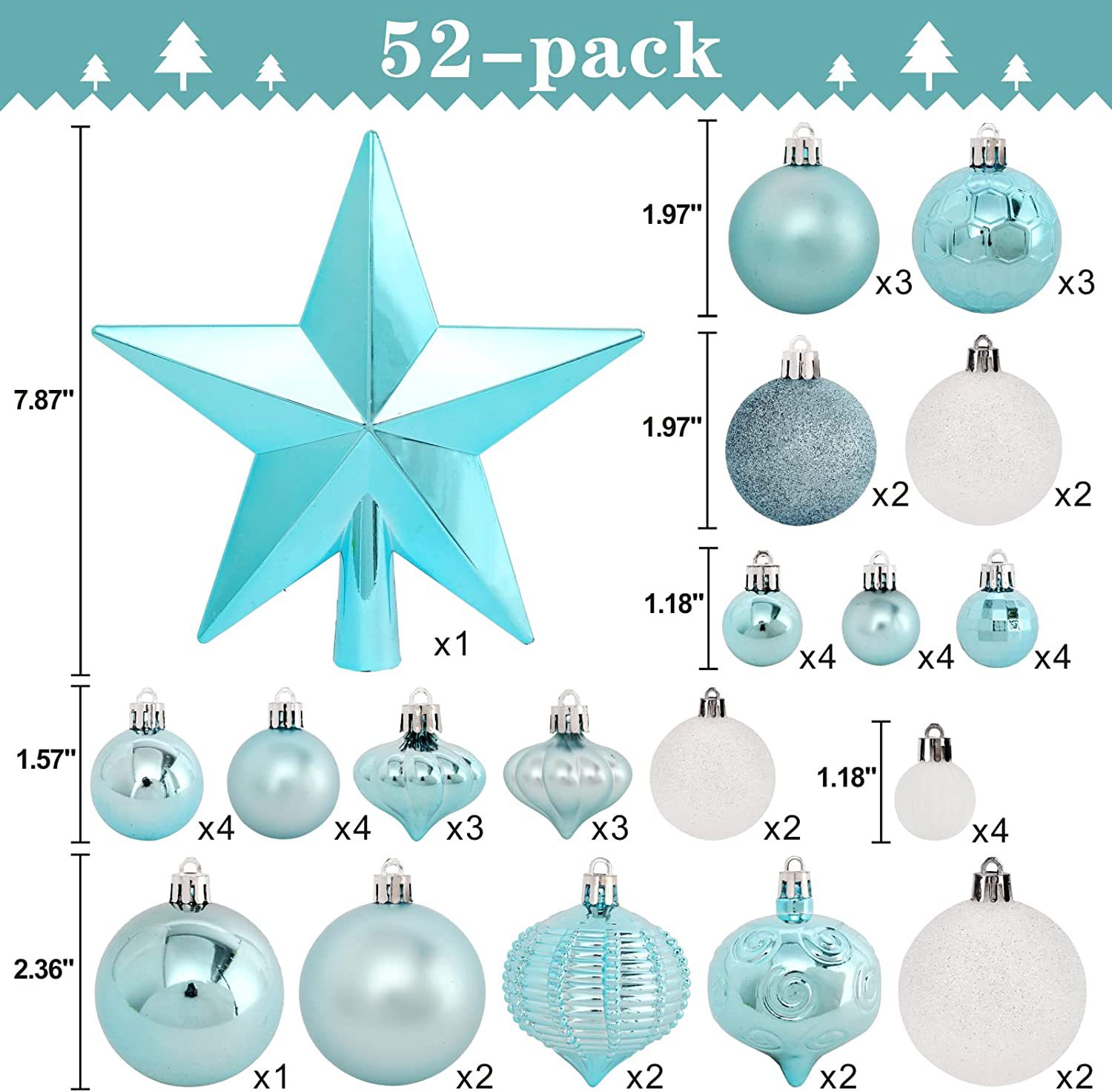 亚马逊爆款圣诞球套装52pcs圣诞树挂件 圣诞球装饰品电镀工艺批发