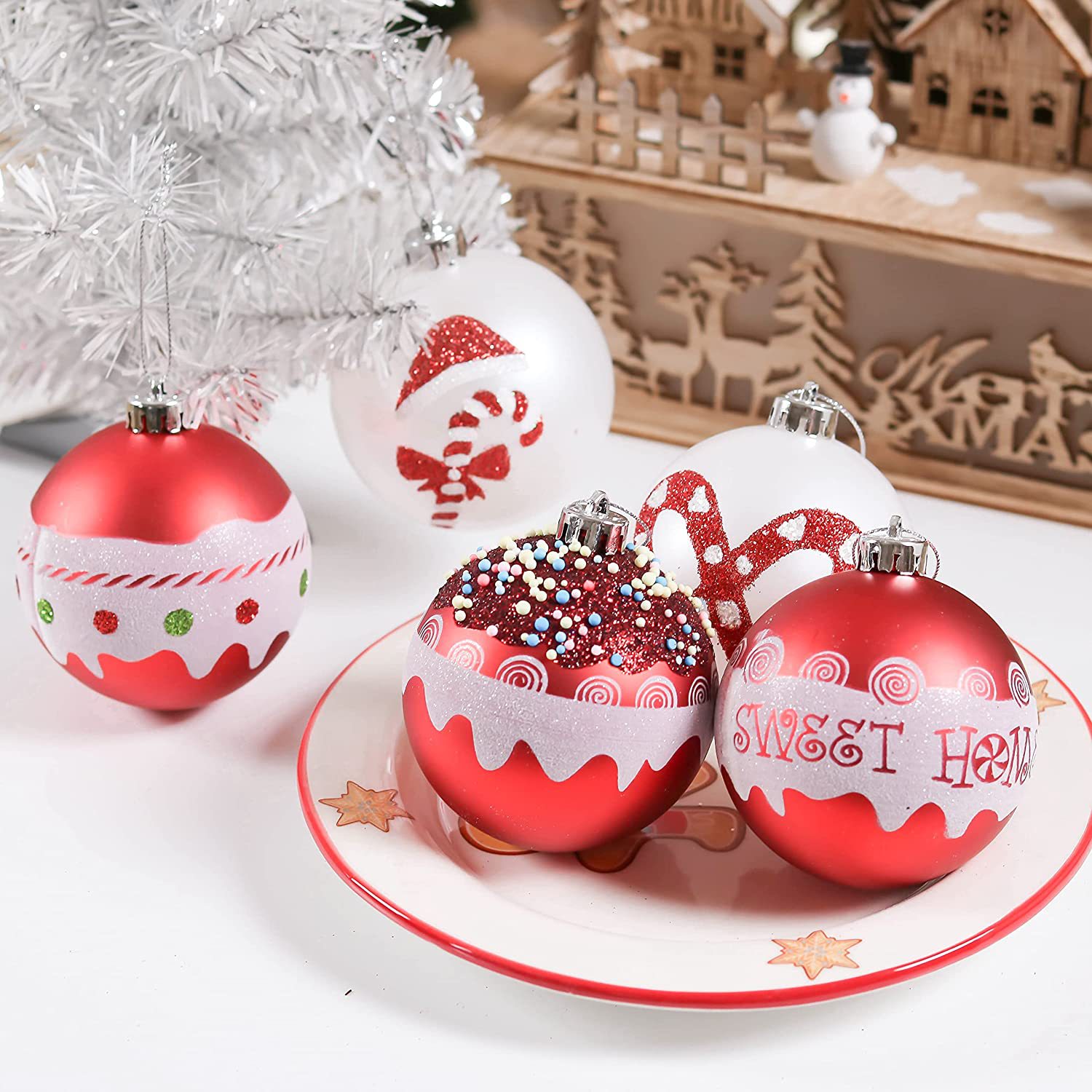 外贸爆款圣诞球挂球 圣诞树挂件圣诞节装饰品 电镀彩绘哑光装饰球