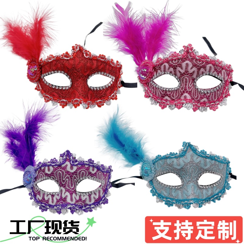 工厂现货节日舞会面具 皮革格力特贴布带毛帽子儿童成人款面具