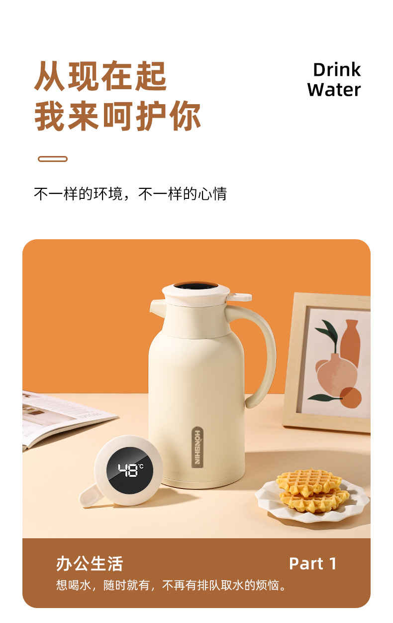 高颜值大容量智能显温保温水壶学生宿舍热水瓶便携户外暖水壶家用