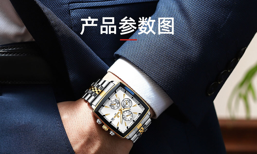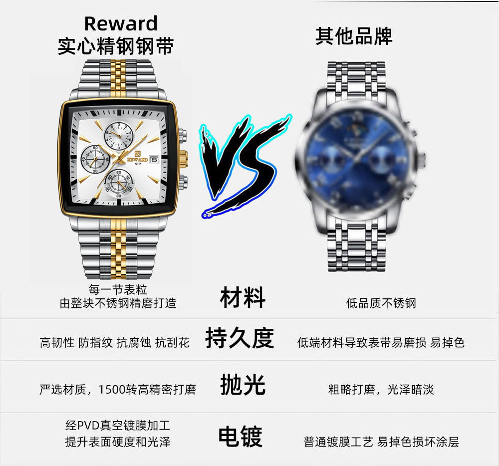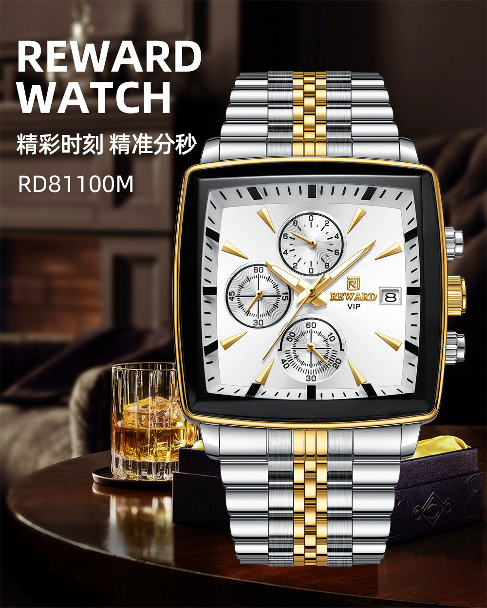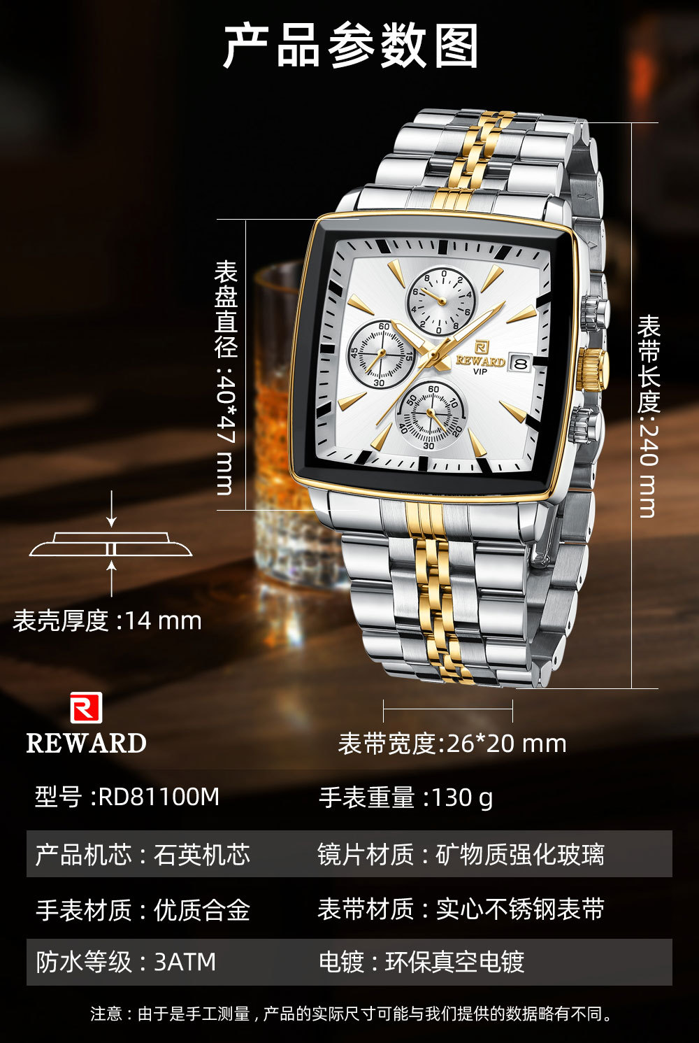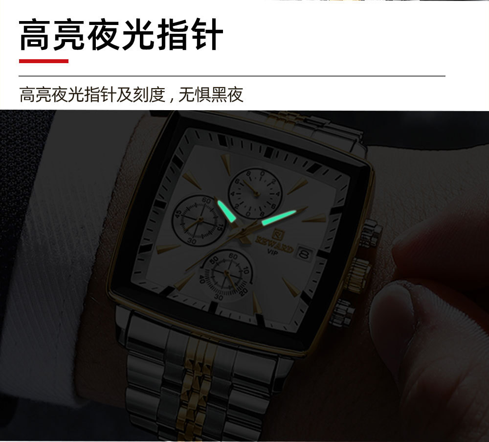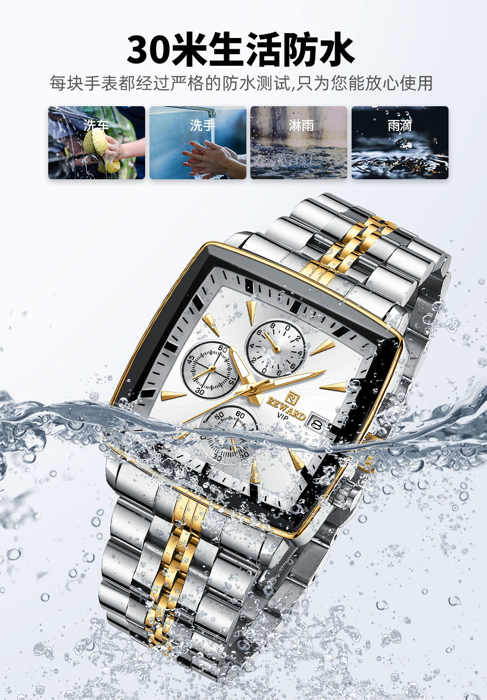 Reward高档智能男士手表多功计时能商务男表防水夜光日历实心钢带