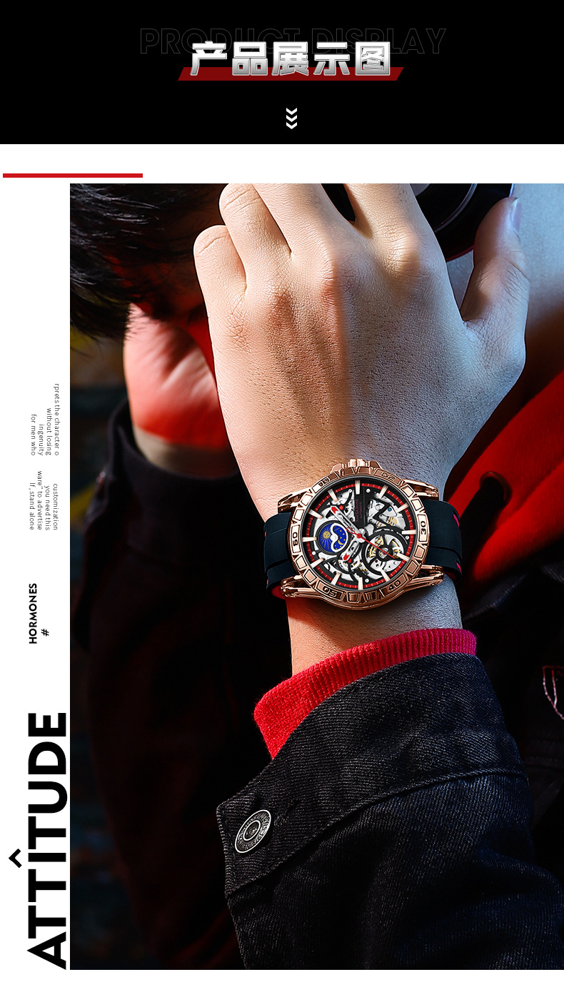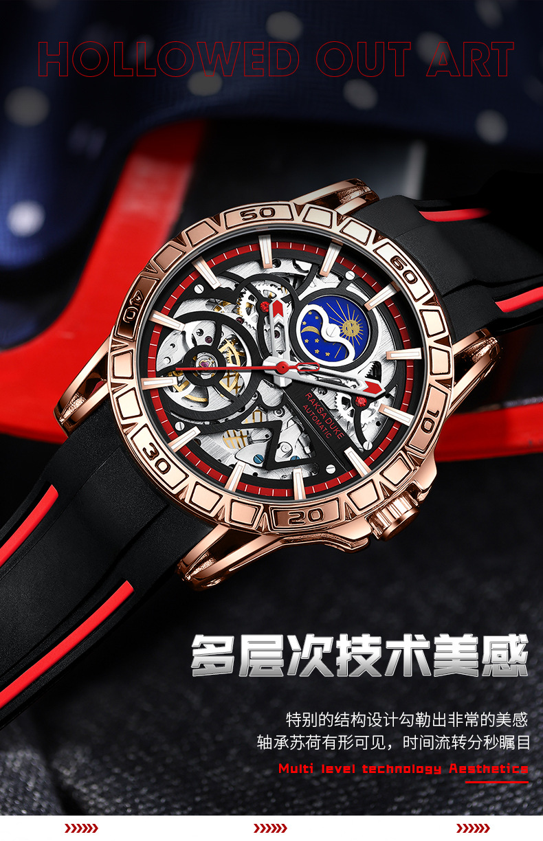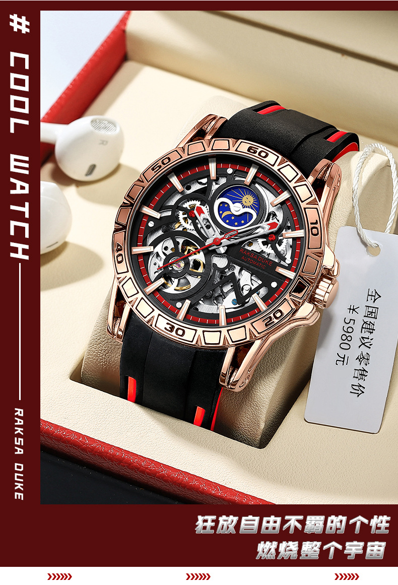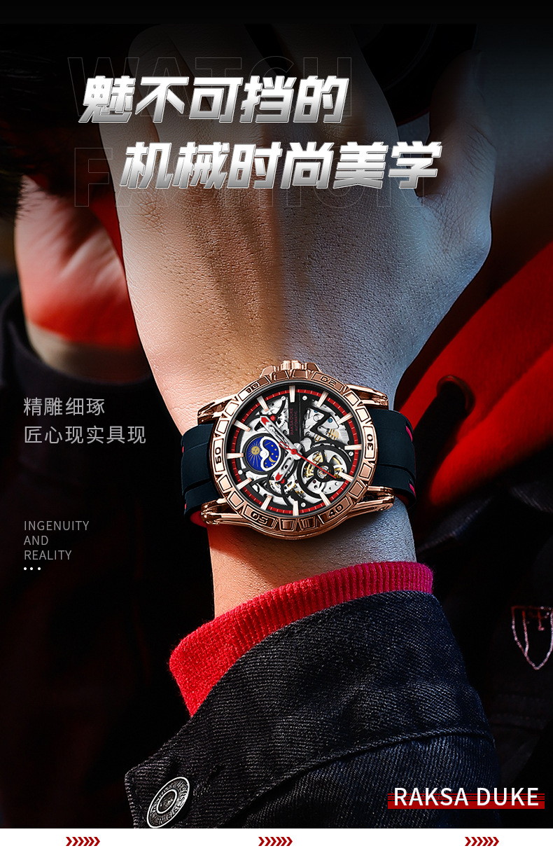 罗萨公爵机械表手表男士直播机械表高档真皮全自动机械表手表代发
