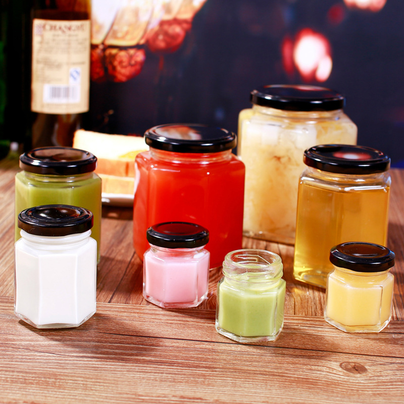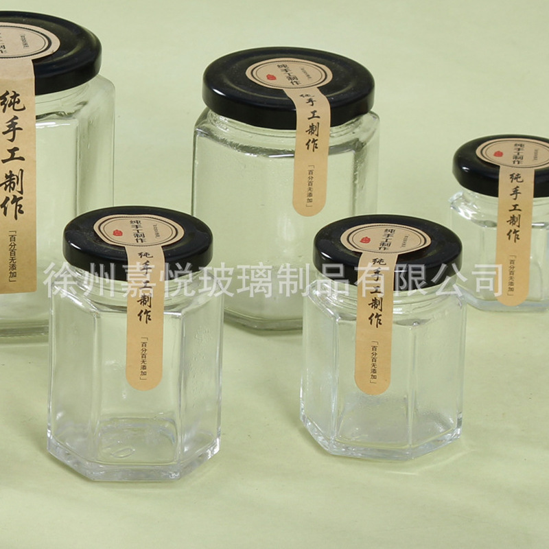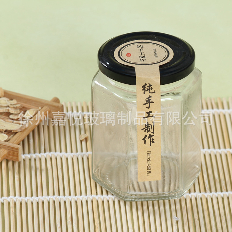 六棱蜂蜜瓶马口铁储物罐厂家直发密封罐头瓶玻璃酱菜瓶制作