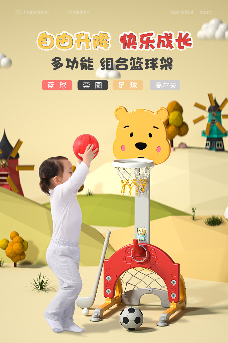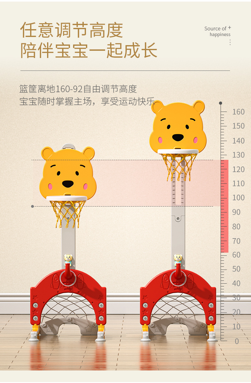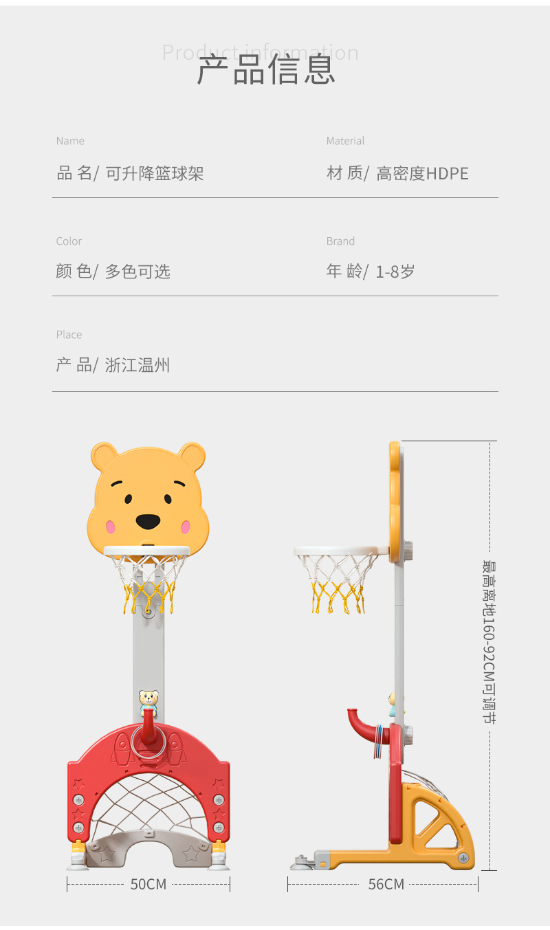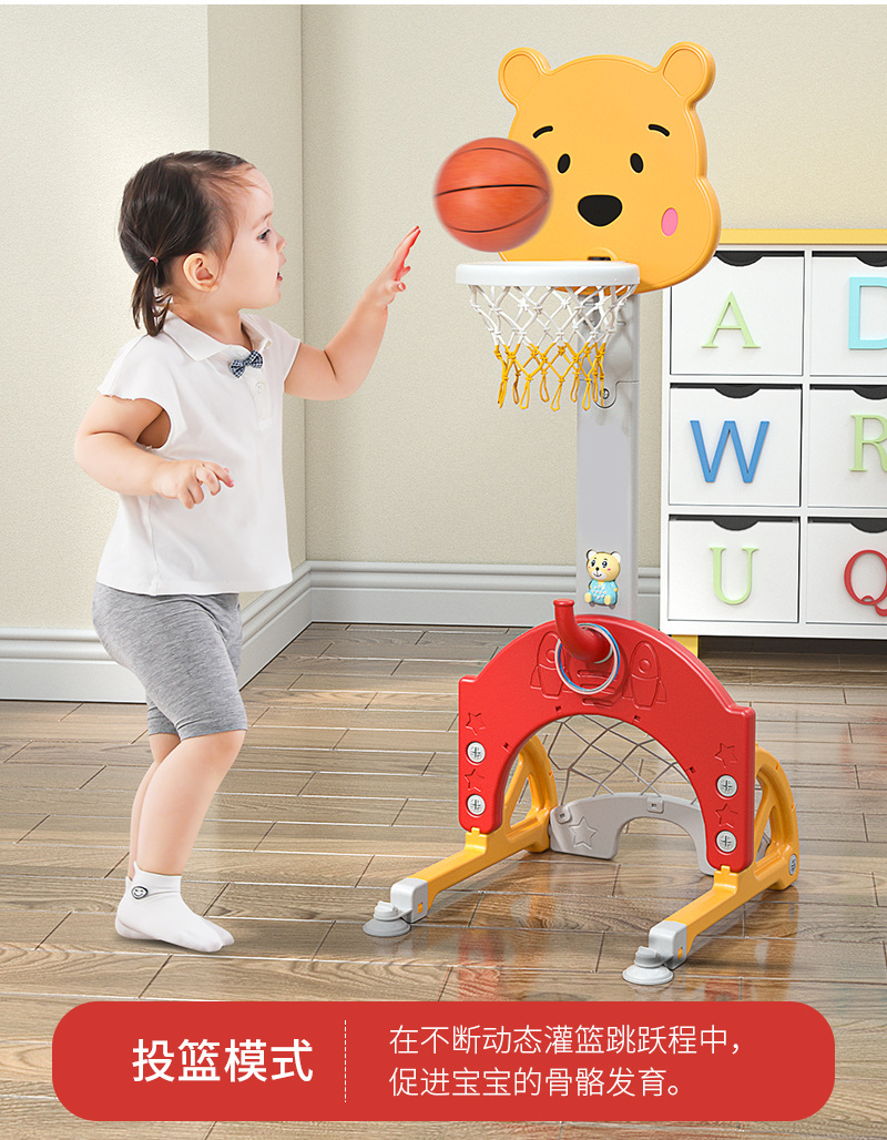 卡通熊篮球筐可升降篮球架小孩室内玩具家用投篮框架家用加固底座