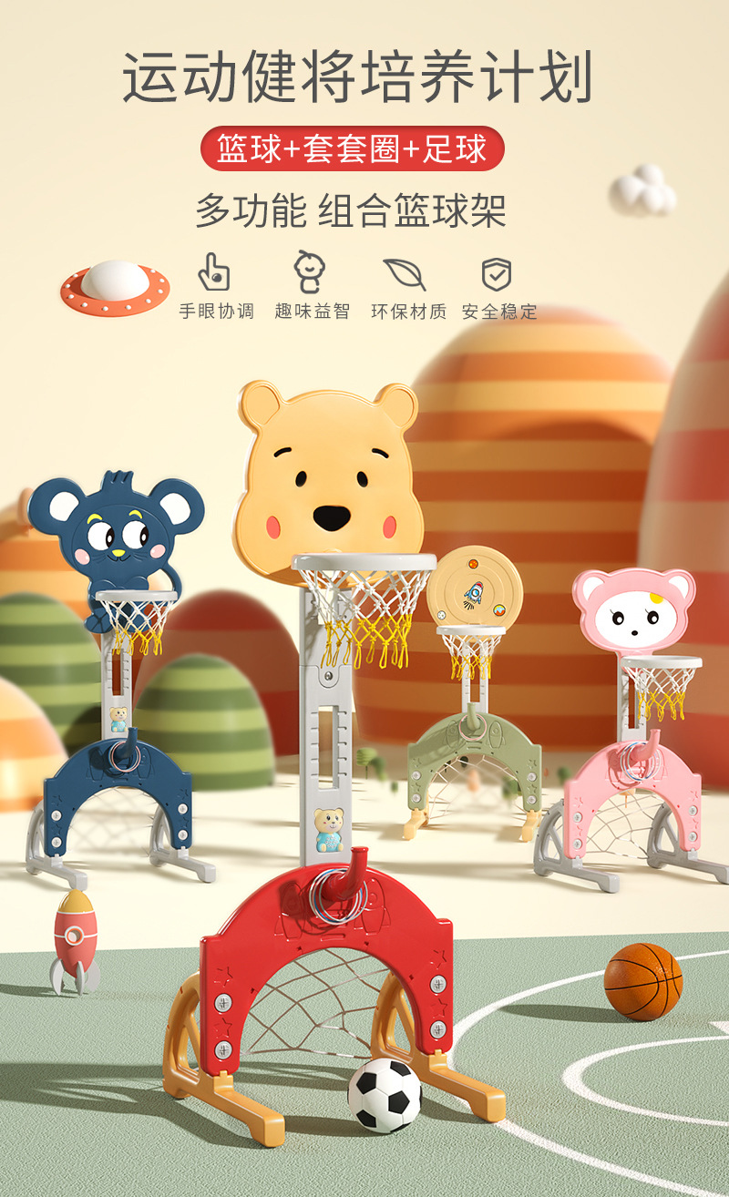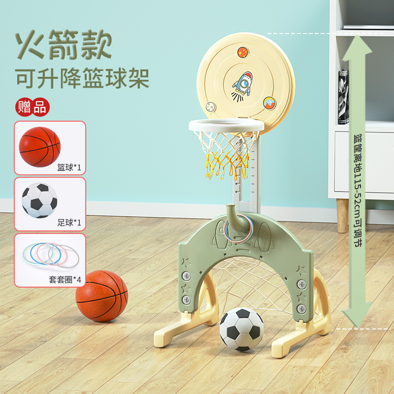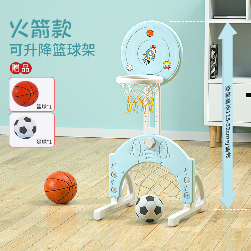 卡通火箭篮球架儿童篮球框玩具室内投篮足球二合一小型家用娱乐