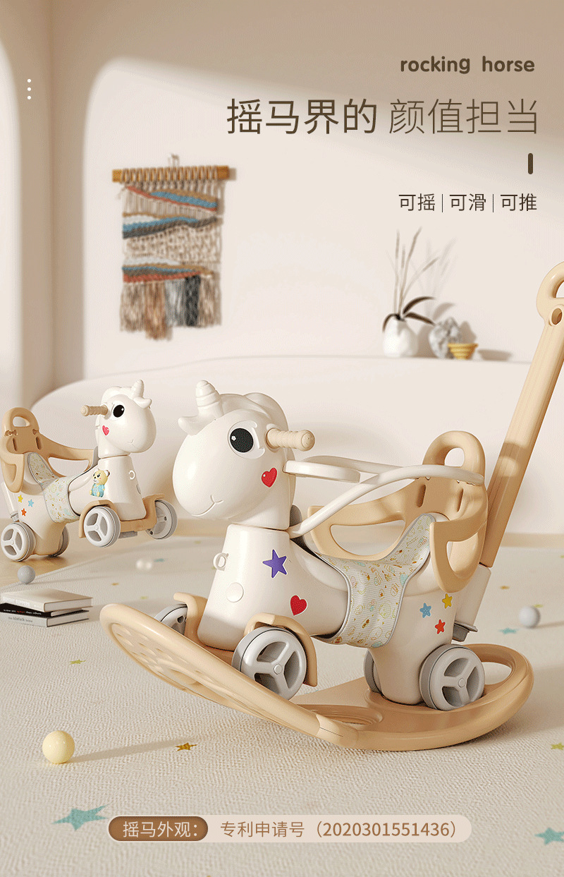 天马儿童摇摇马儿童木马玩具宝宝溜溜车多功能二合一可转向小摇椅